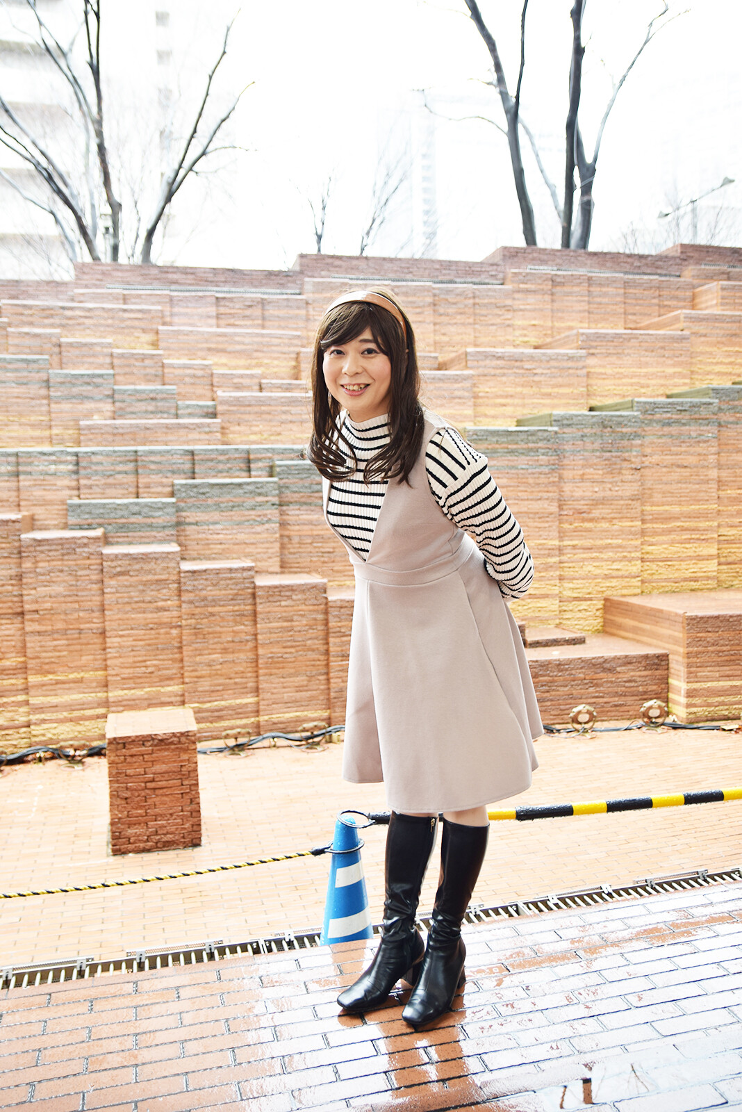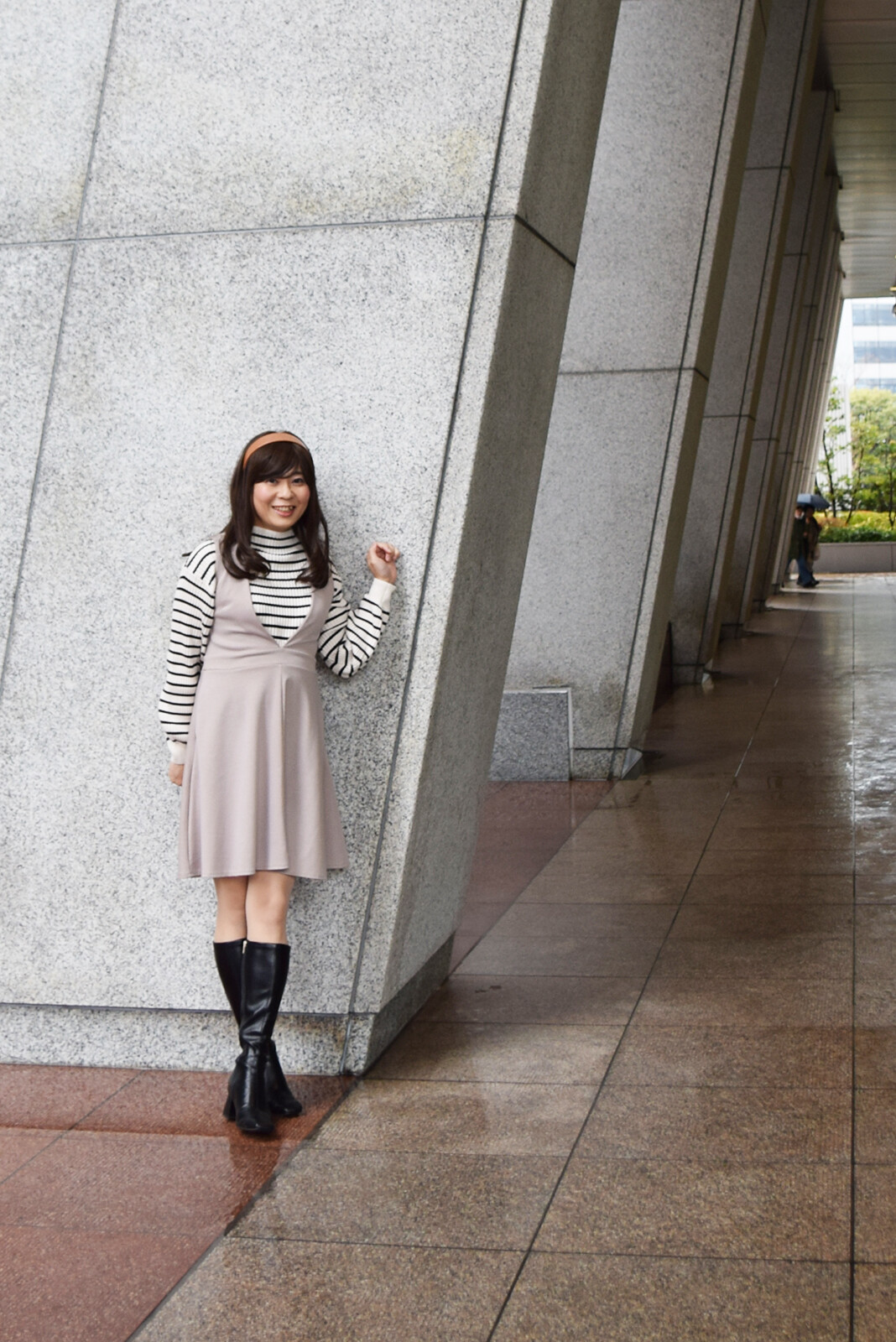 ビルの構造物を利用して、雨に当たらない場所で撮影しました。
