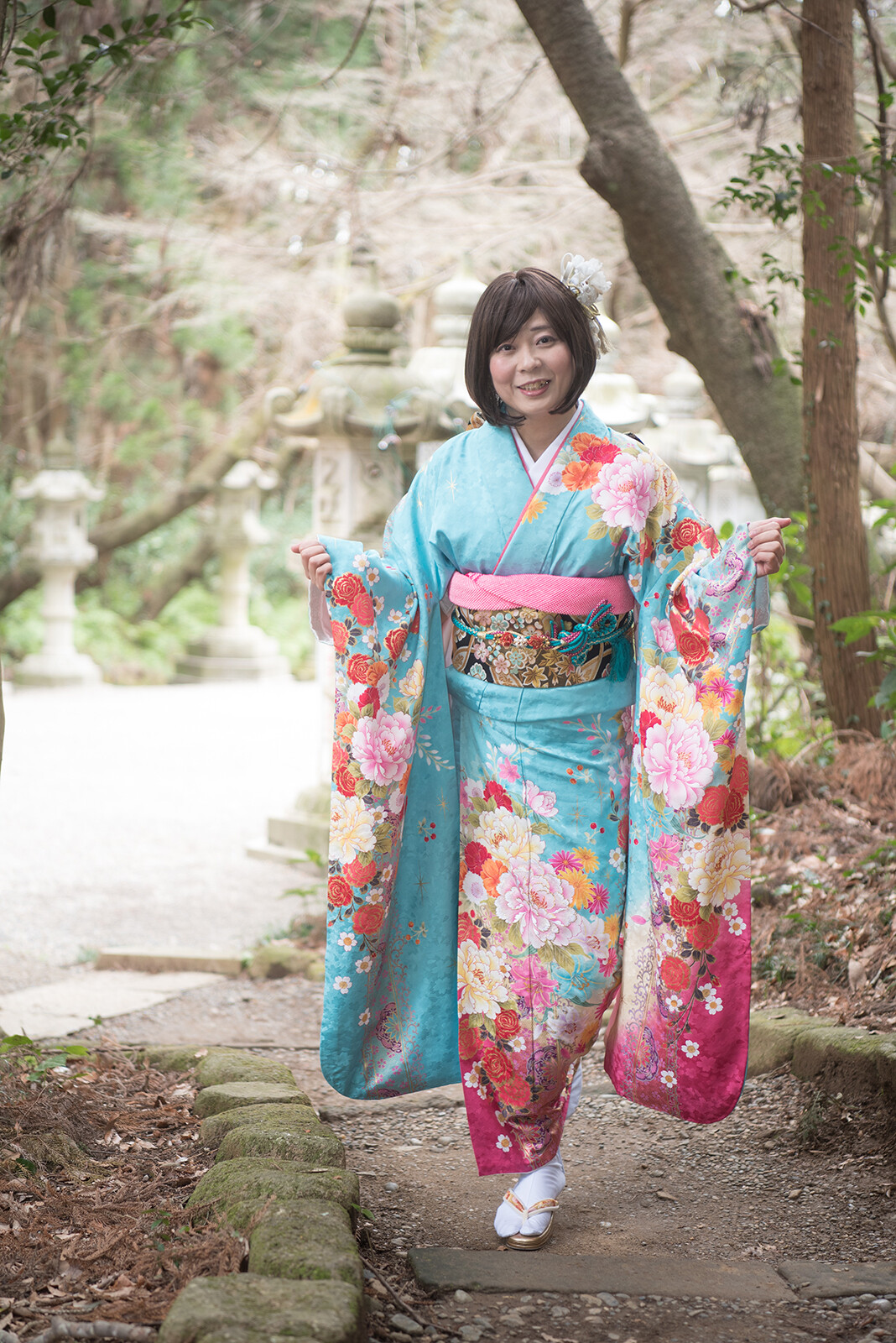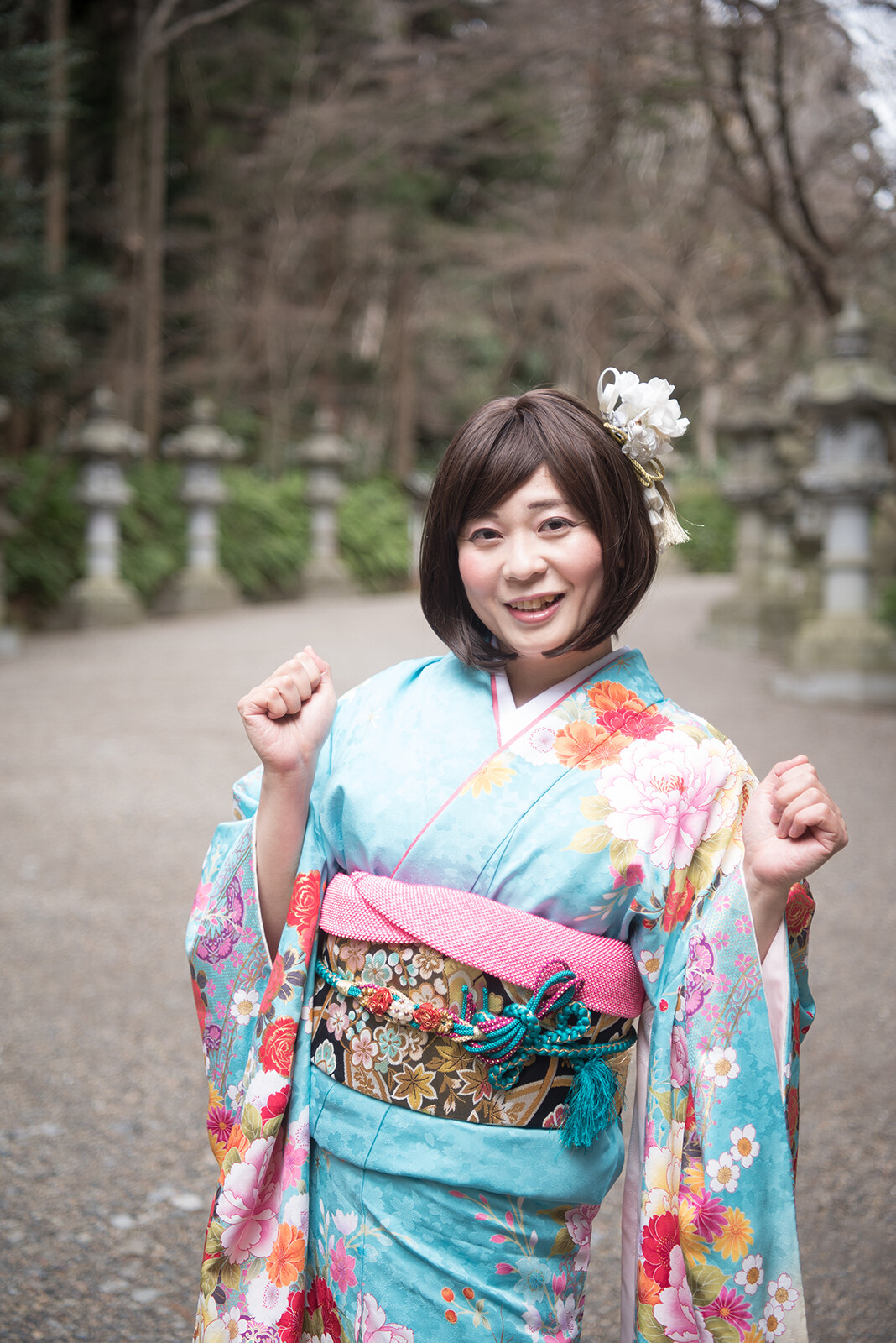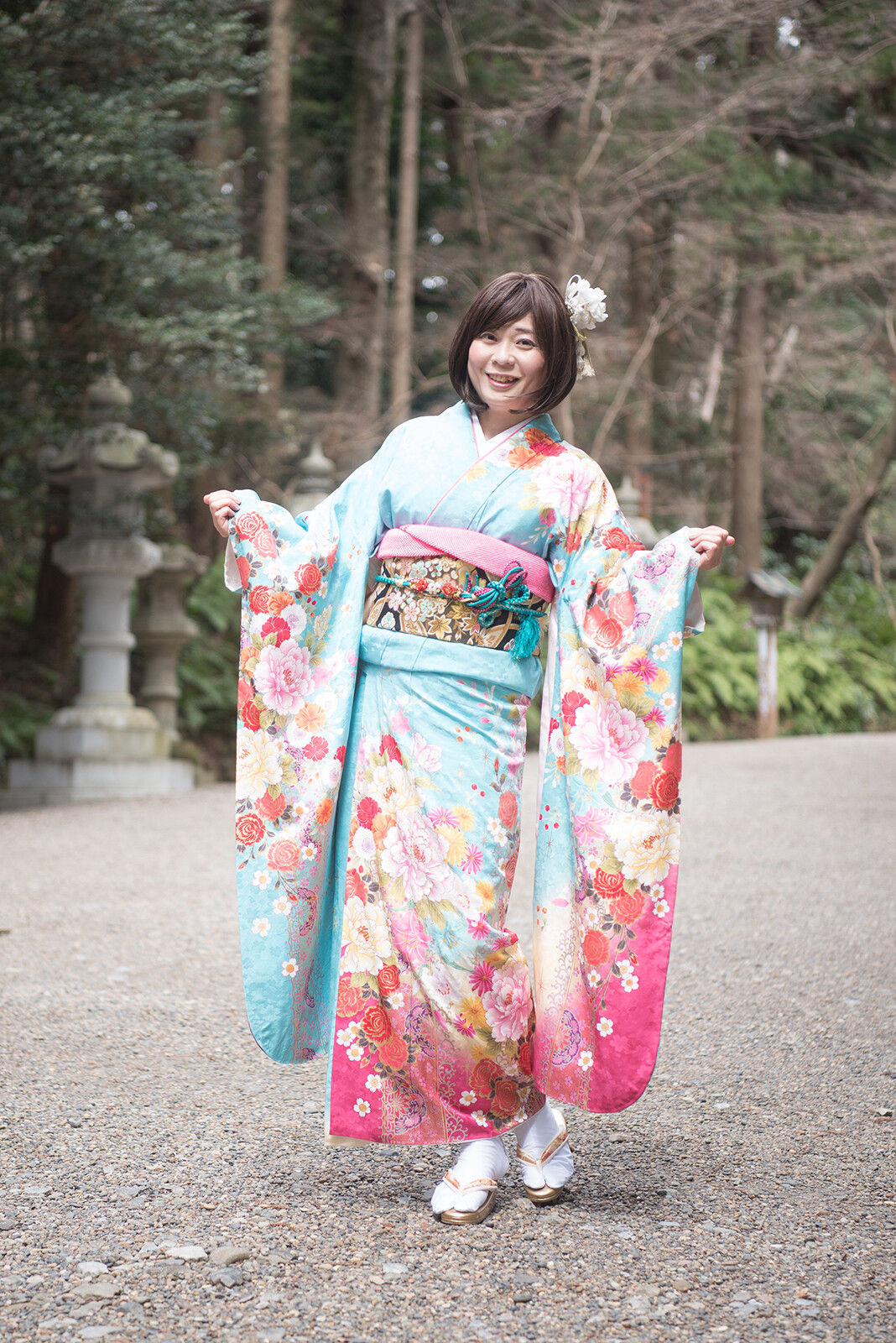 今年は水色の振袖です。