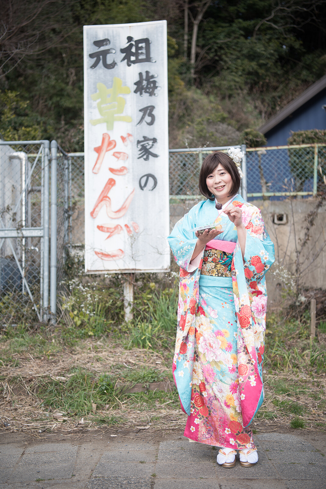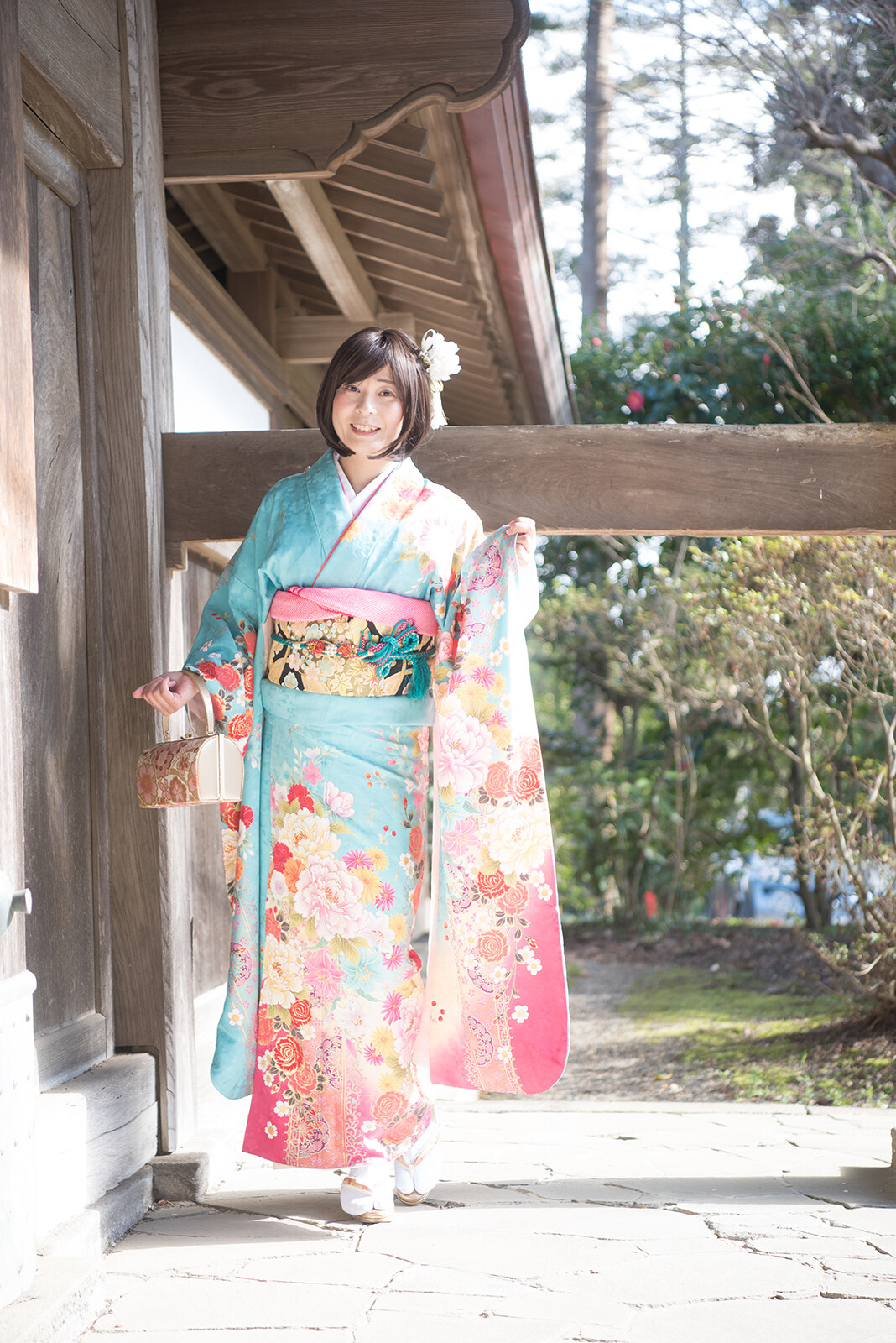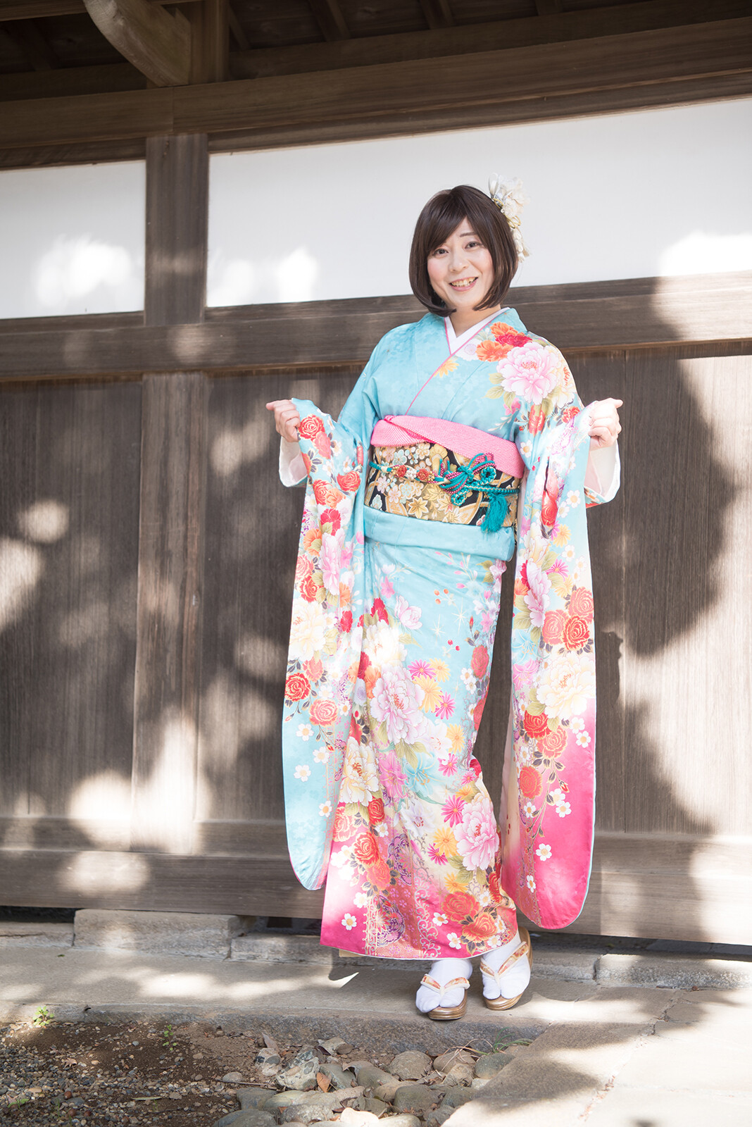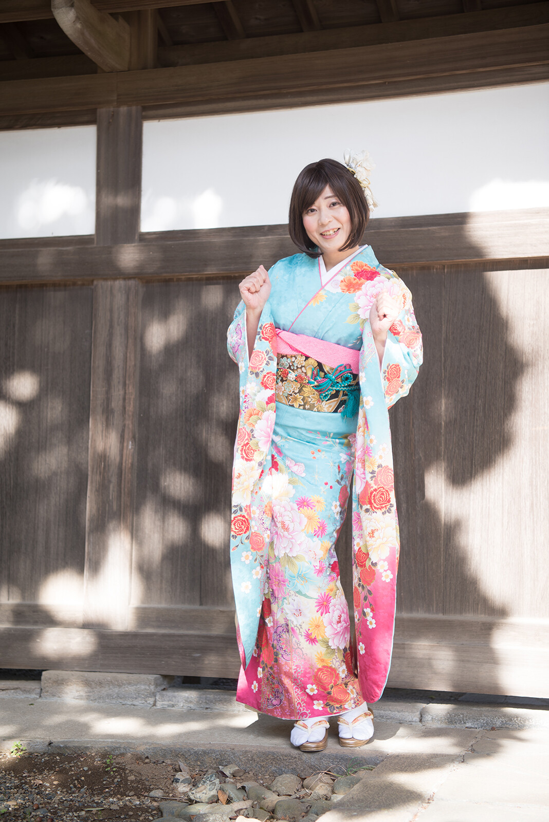 後ろ姿を撮った後は振り向きポーズ