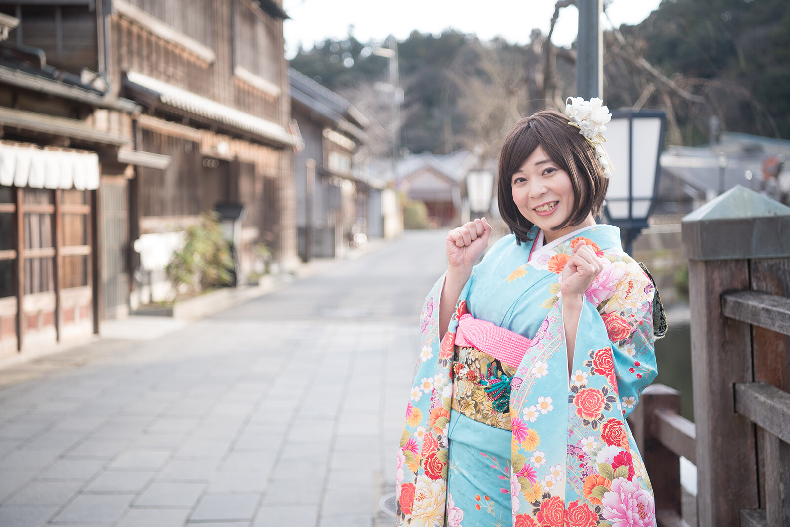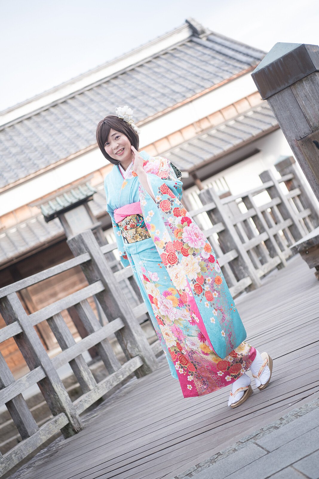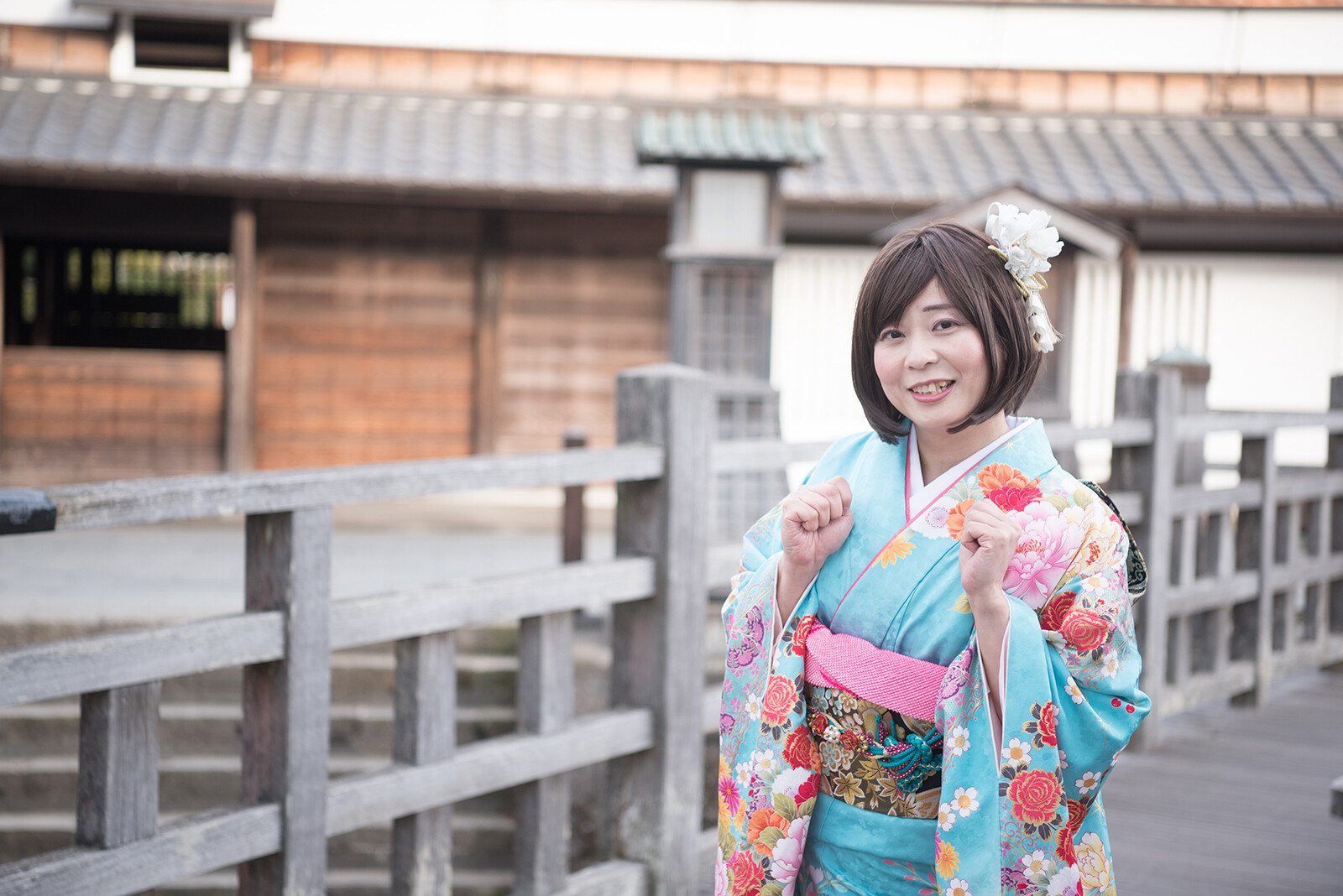 元気ポーズをやった瞬間に風が吹いて、良い感じに袖がなびいていますね。