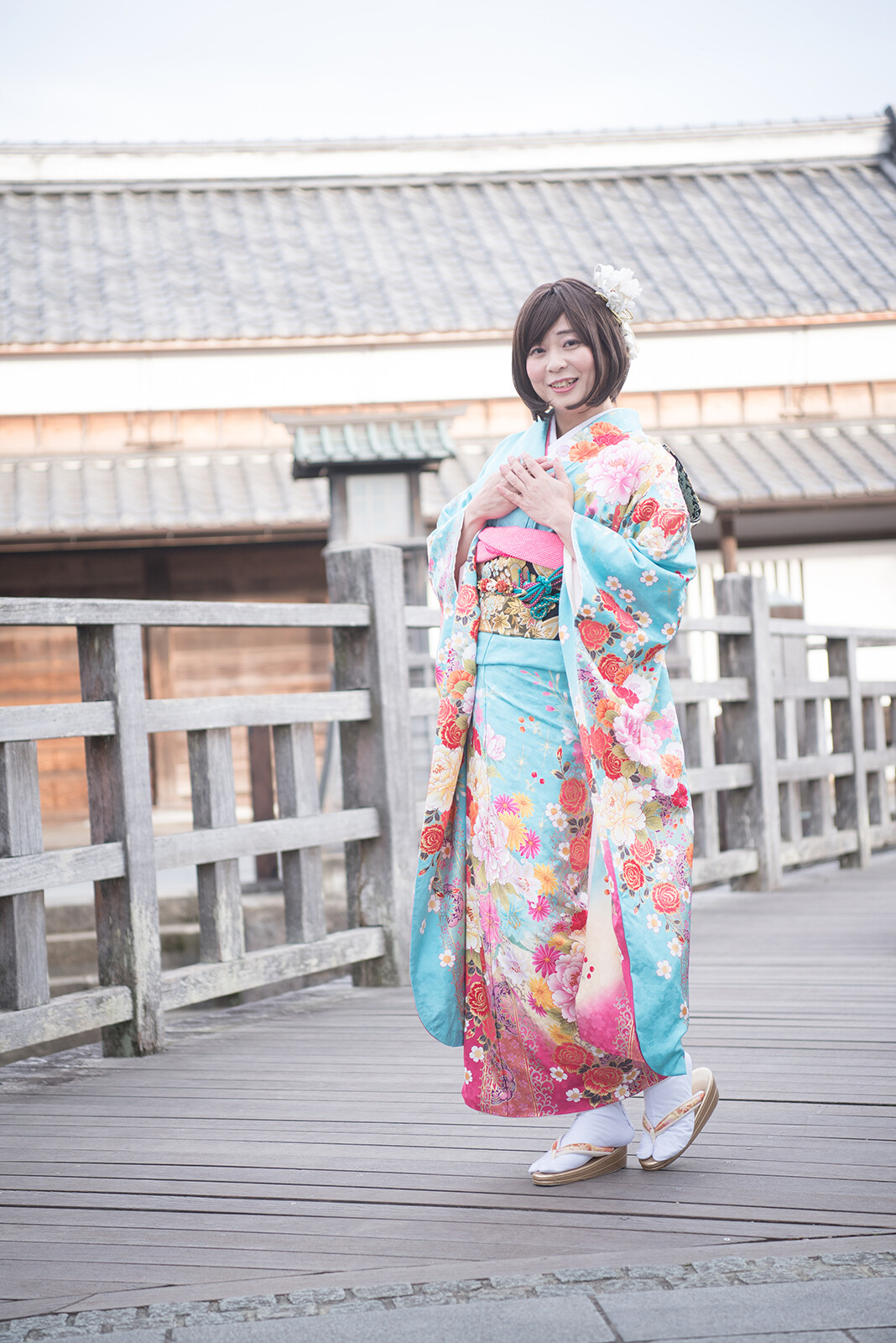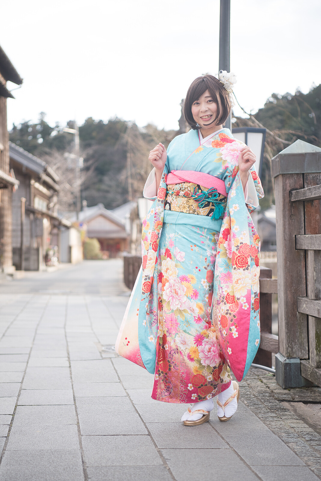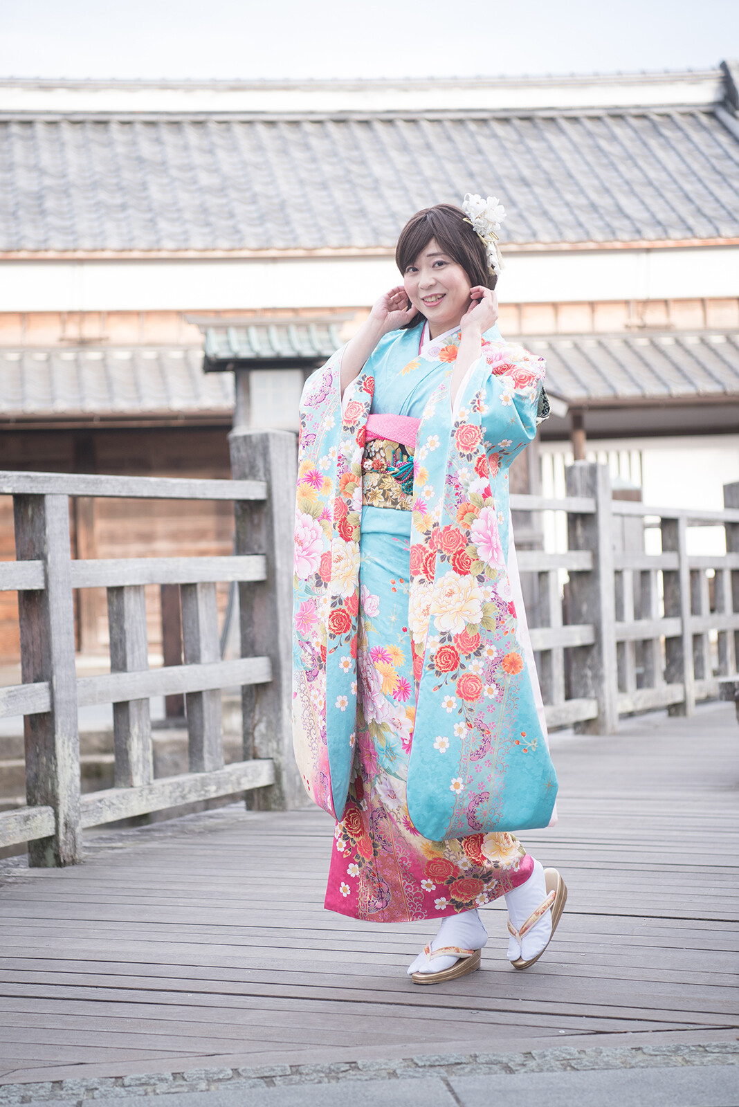 元気ポーズをやった瞬間に風が吹いて、良い感じに袖がなびいていますね。
