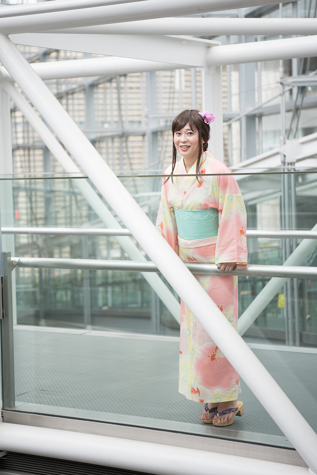 見上げると、ものすごい数の鉄骨と一面のガラス張りが綺麗ですよ