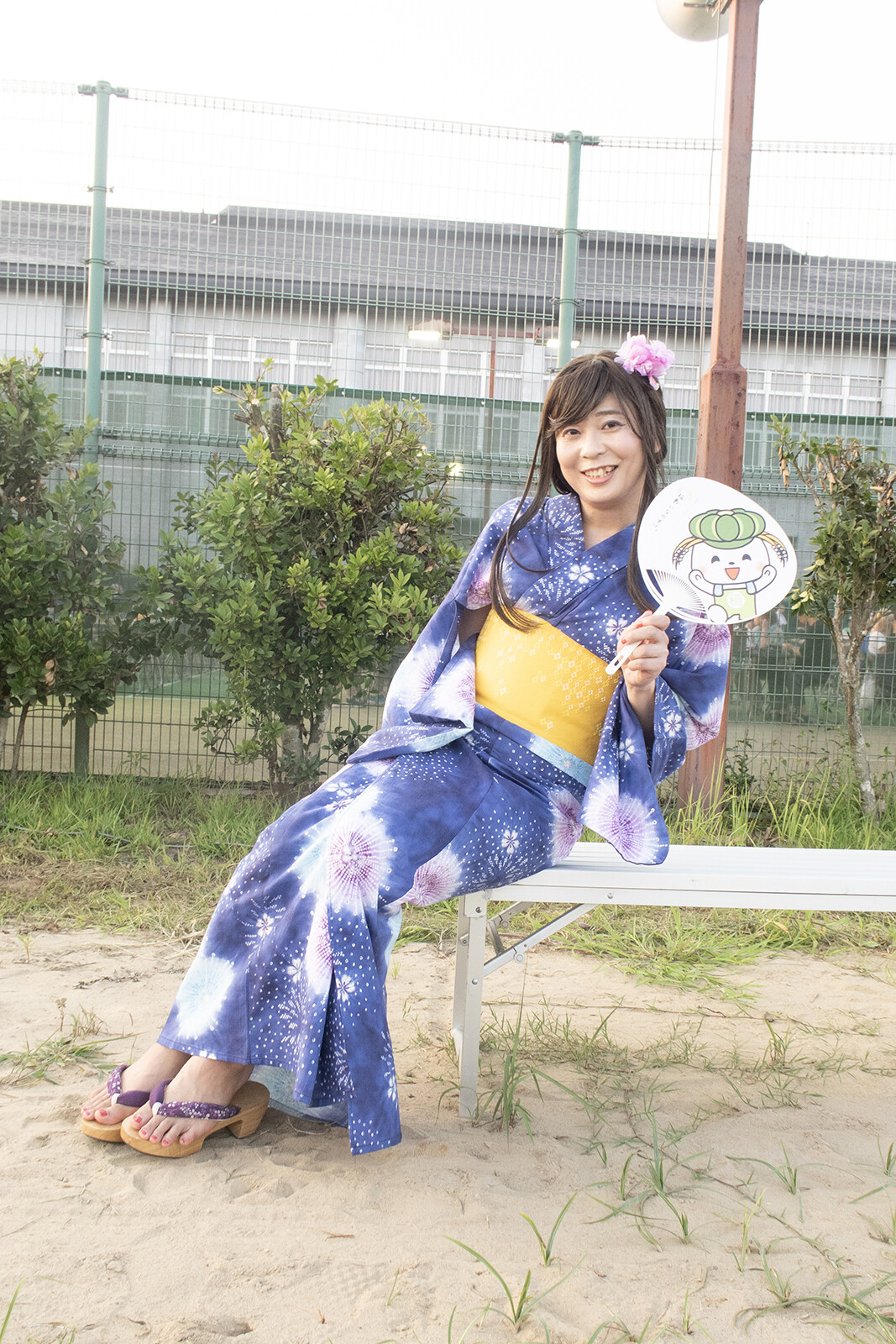 茨城県稲敷市のマスコットキャラクター「稲敷いなのすけ」のうちわをもらいました。