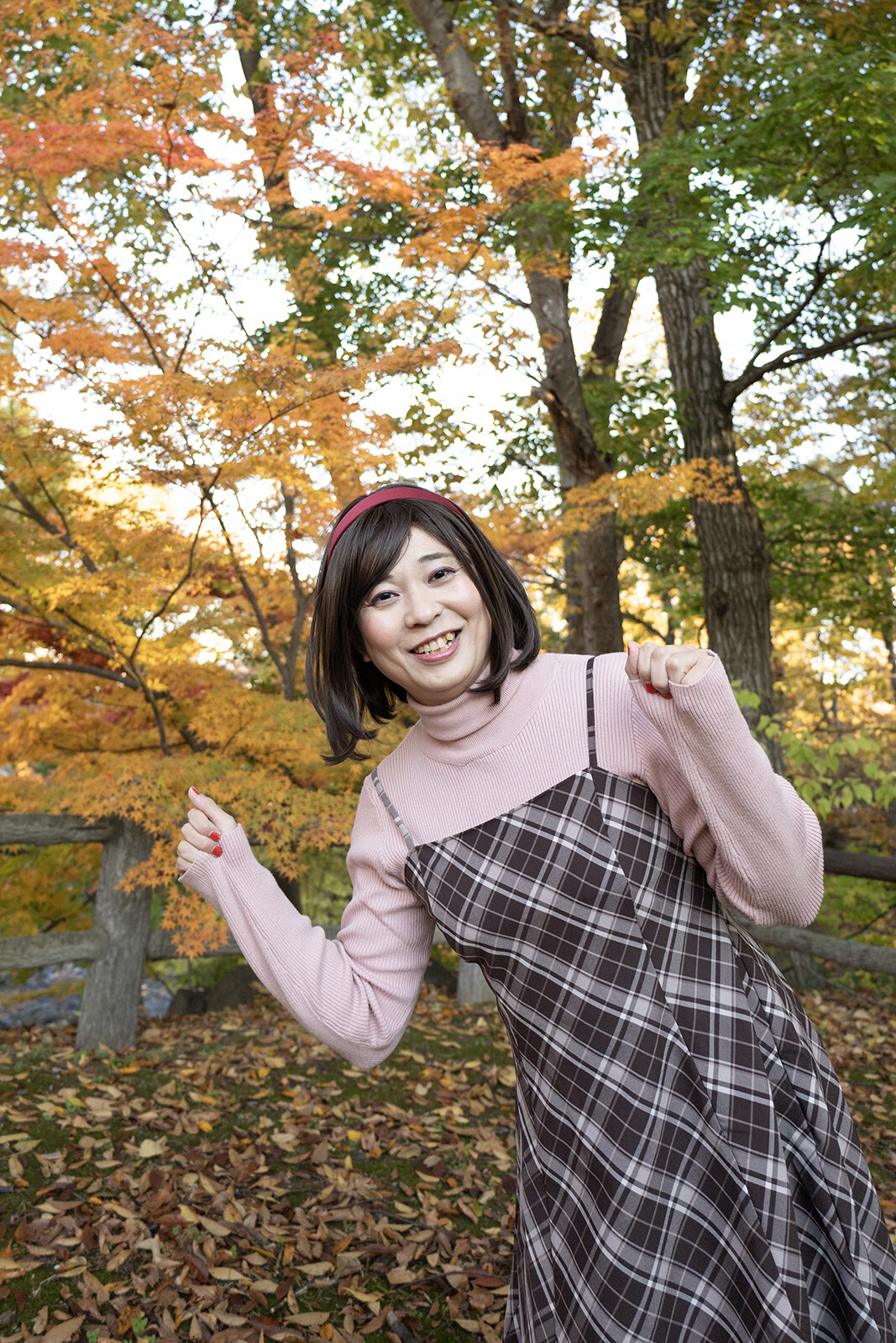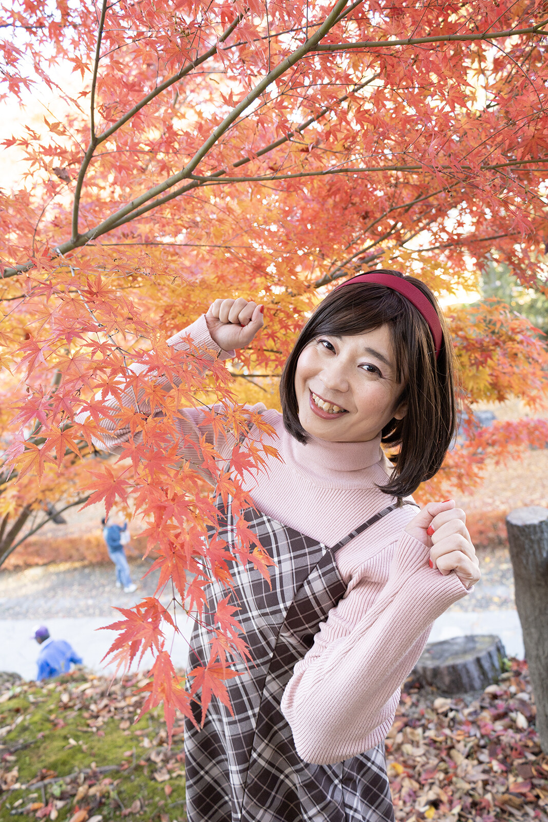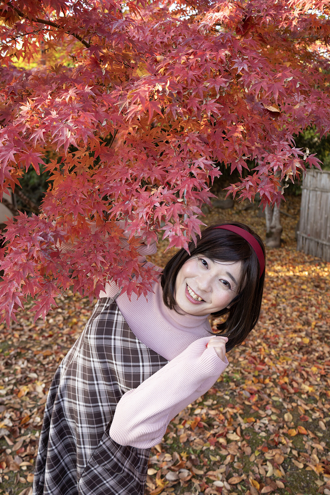 低い木があると、もみじに顔を近づけられるのが良いですね。