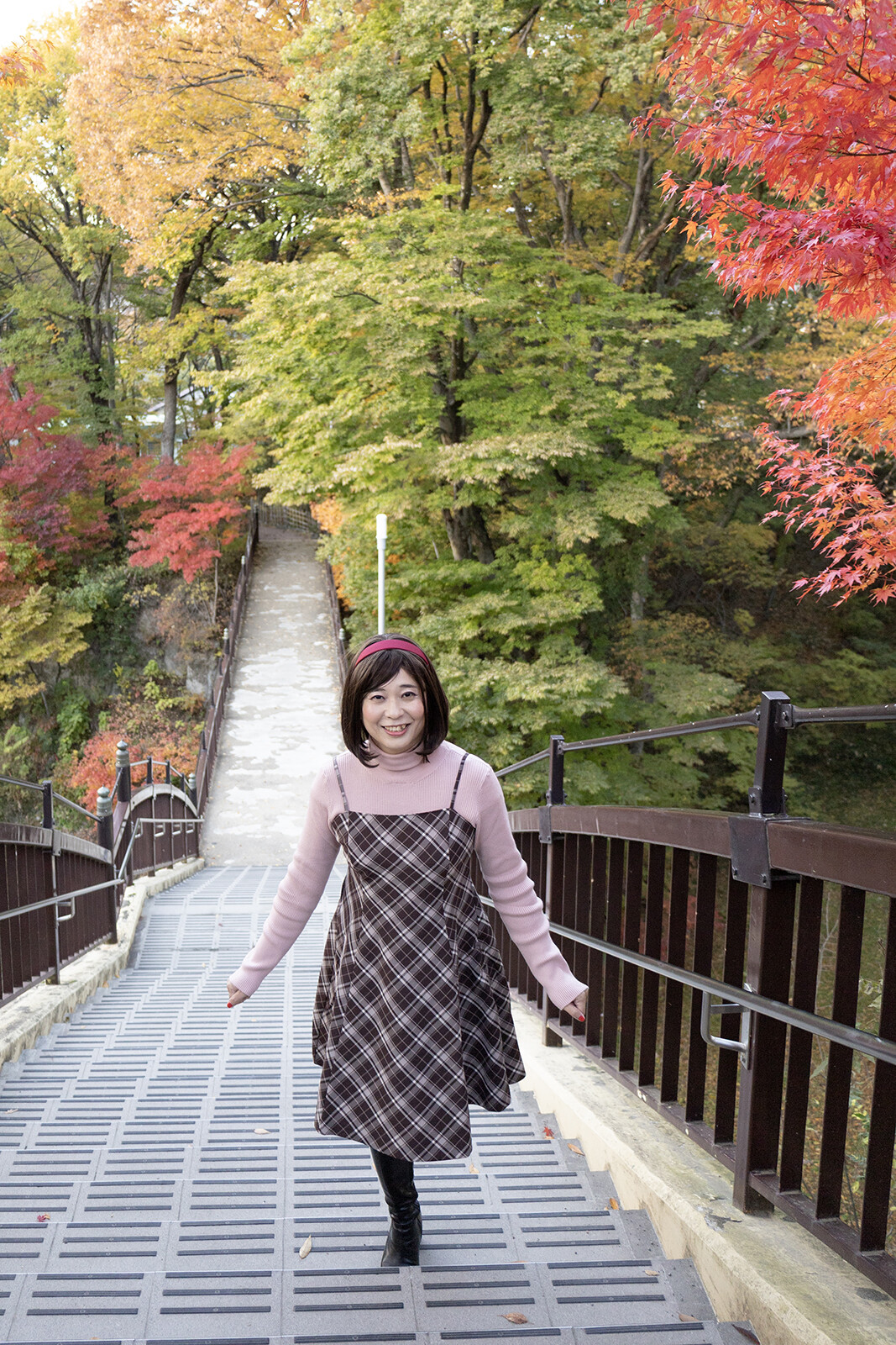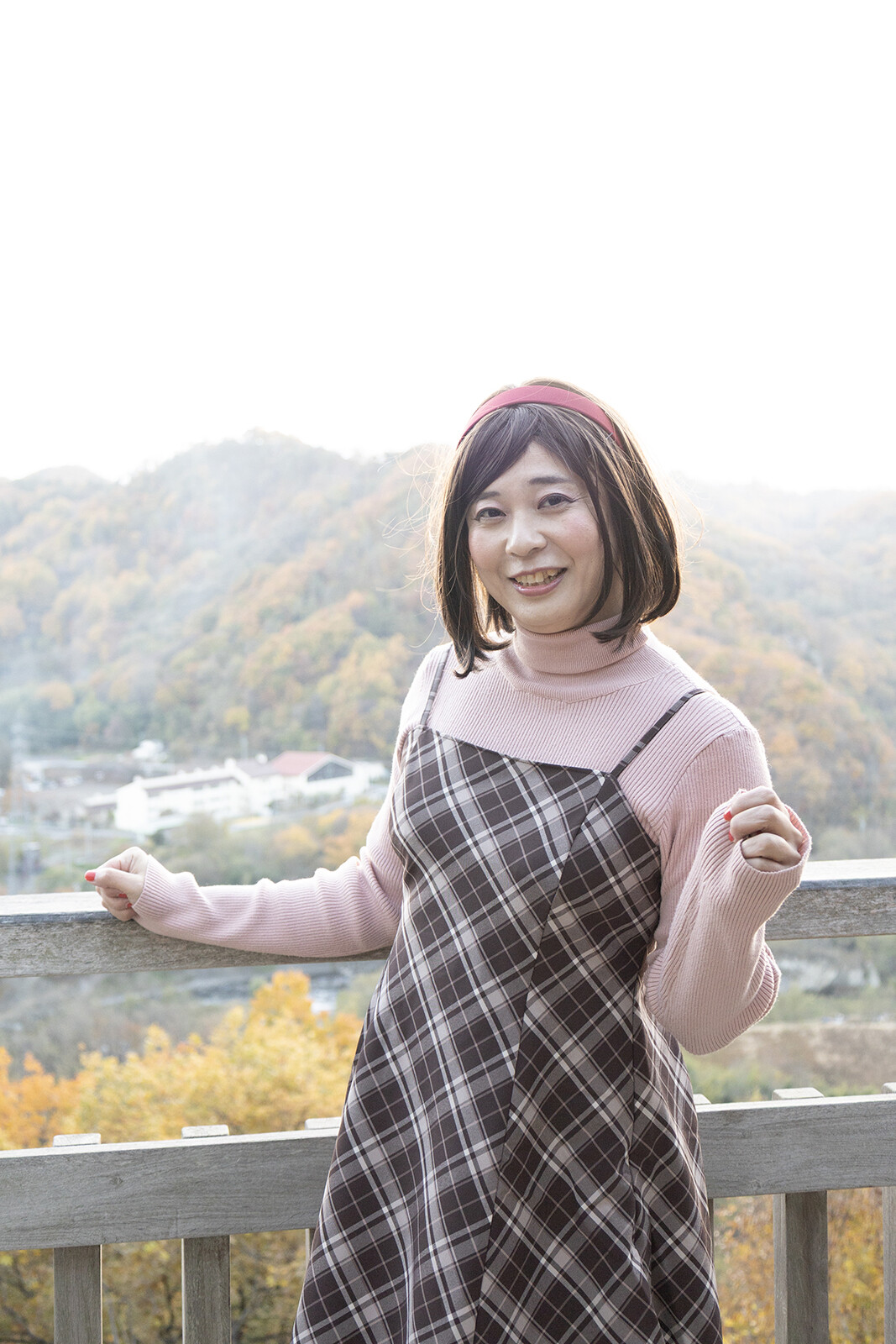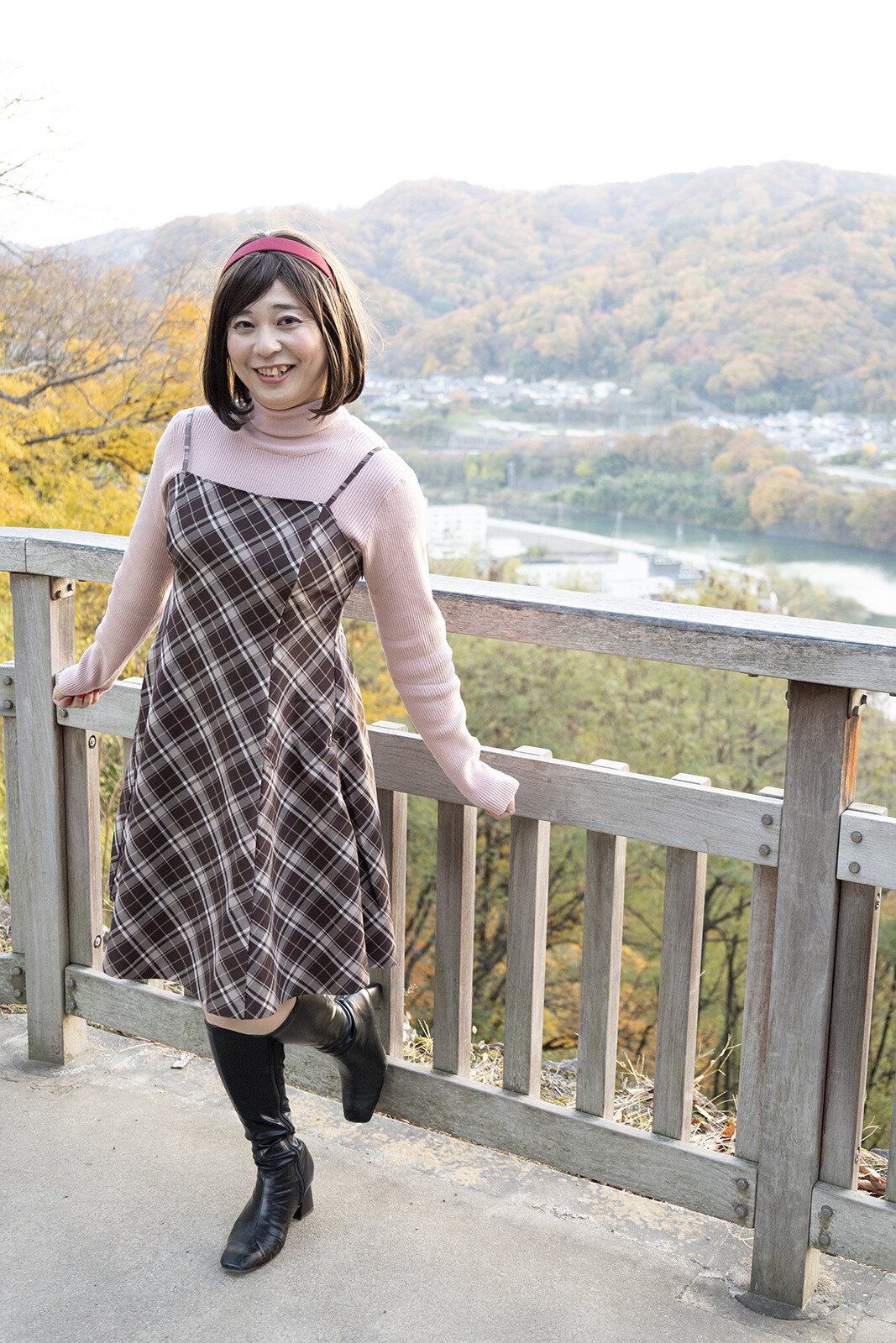 ラスト2枚は欄干に肘をつき、景色を楽しんでいる様子を撮ってみました。