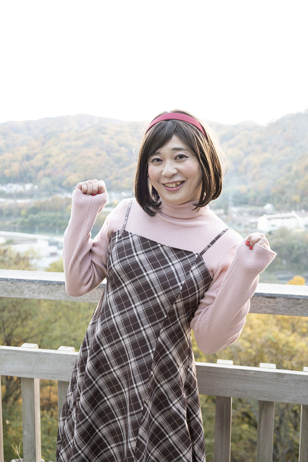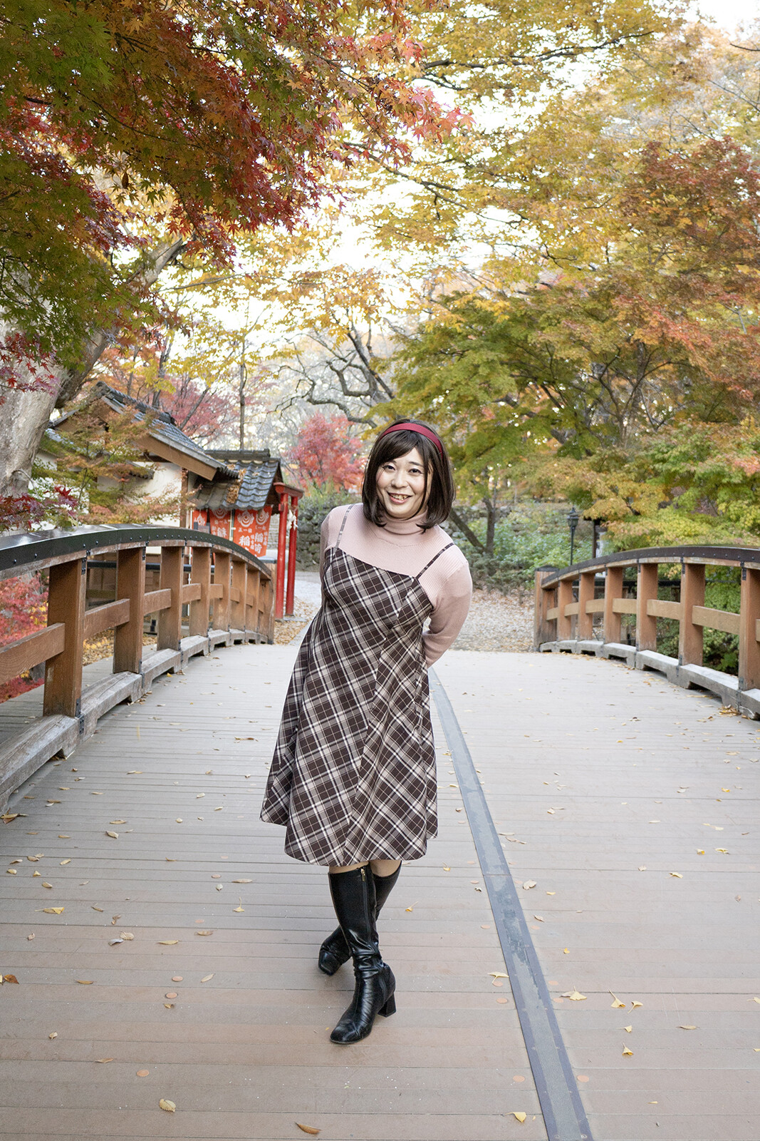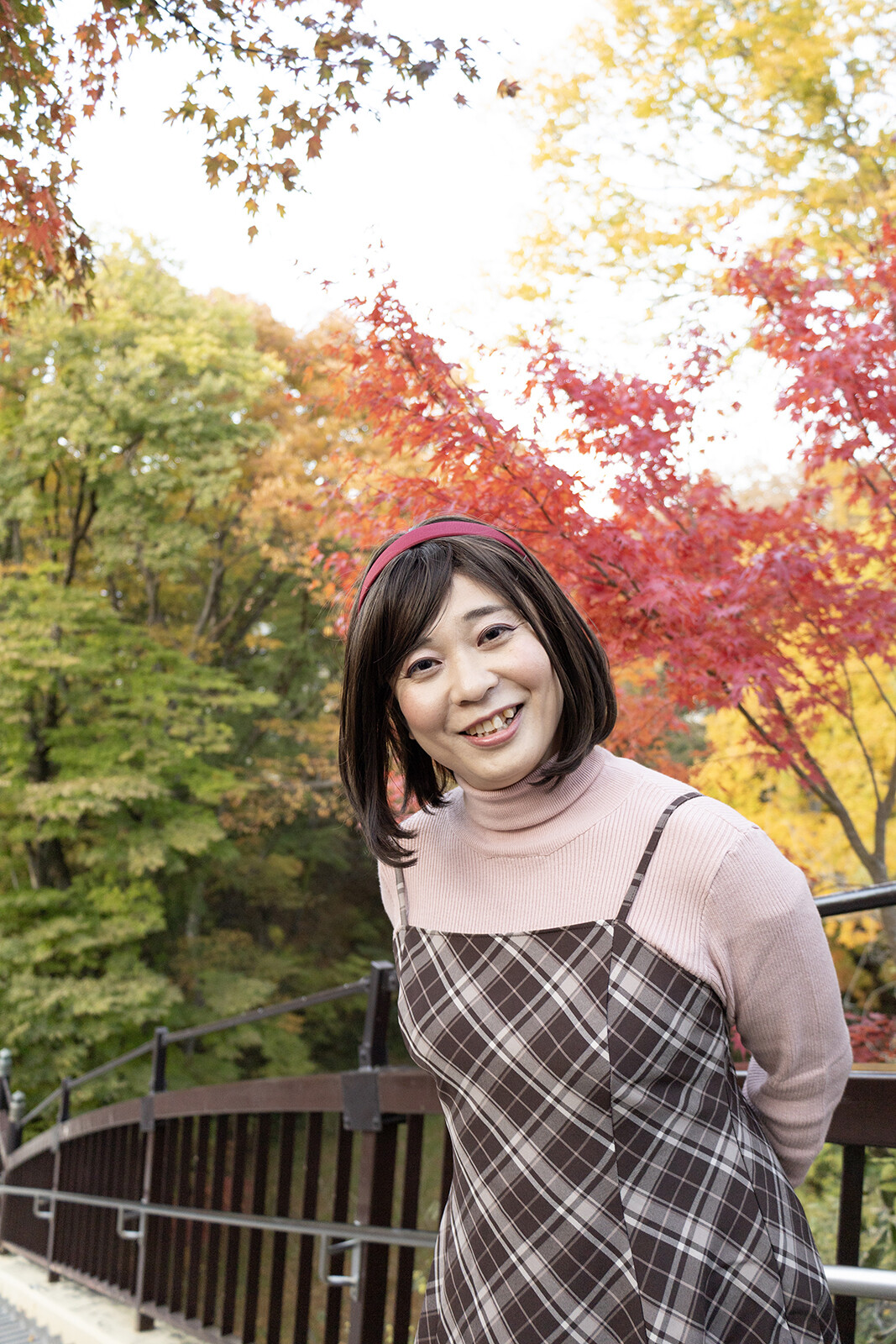 ラスト2枚は欄干に肘をつき、景色を楽しんでいる様子を撮ってみました。