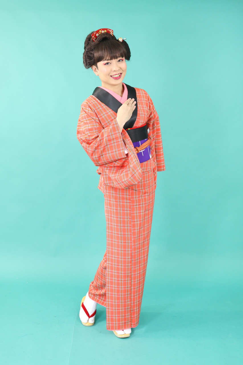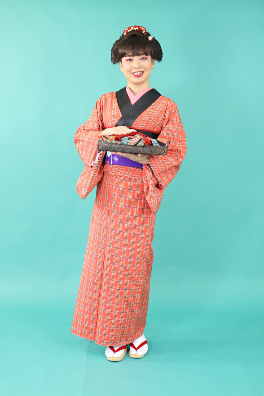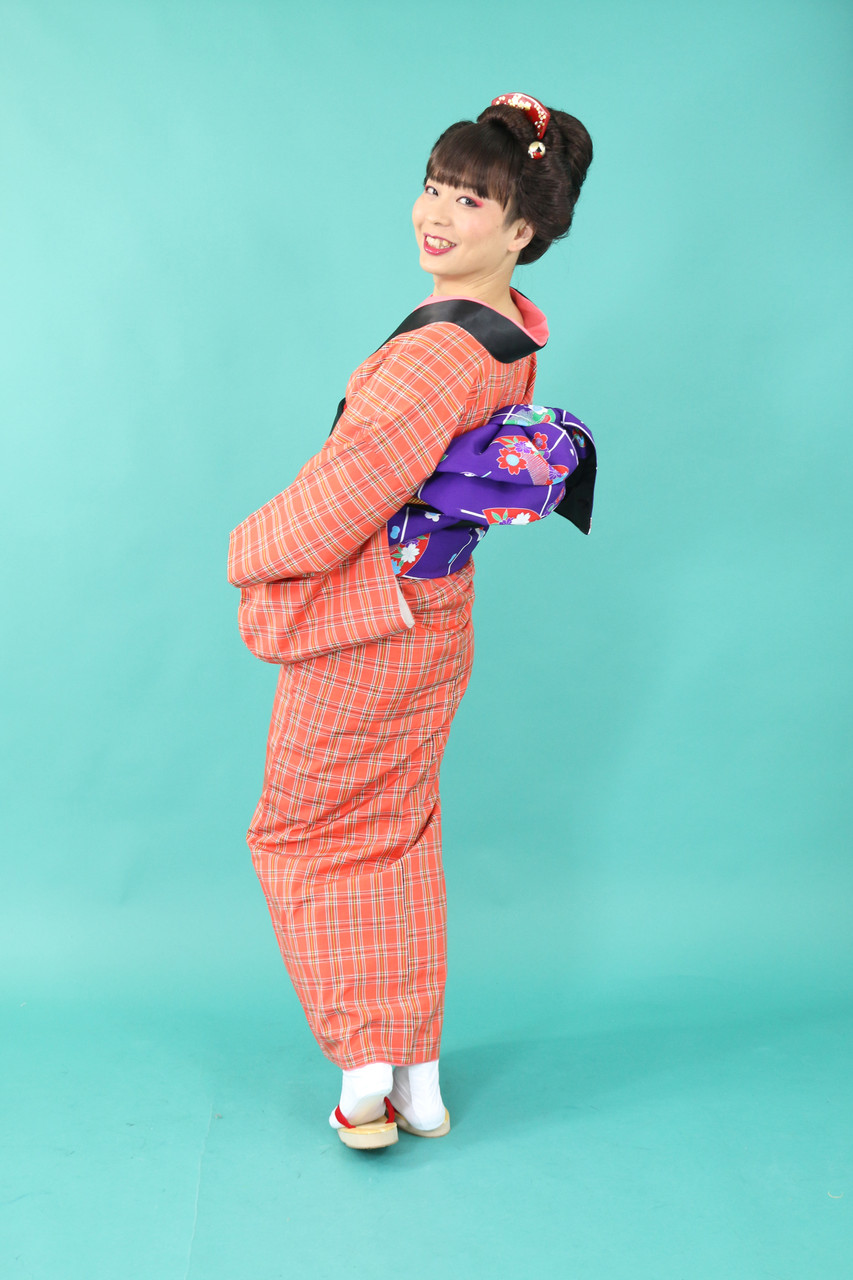 その小紋を黒の掛け襟に変えてみると、時代劇風の着物に早変わり~