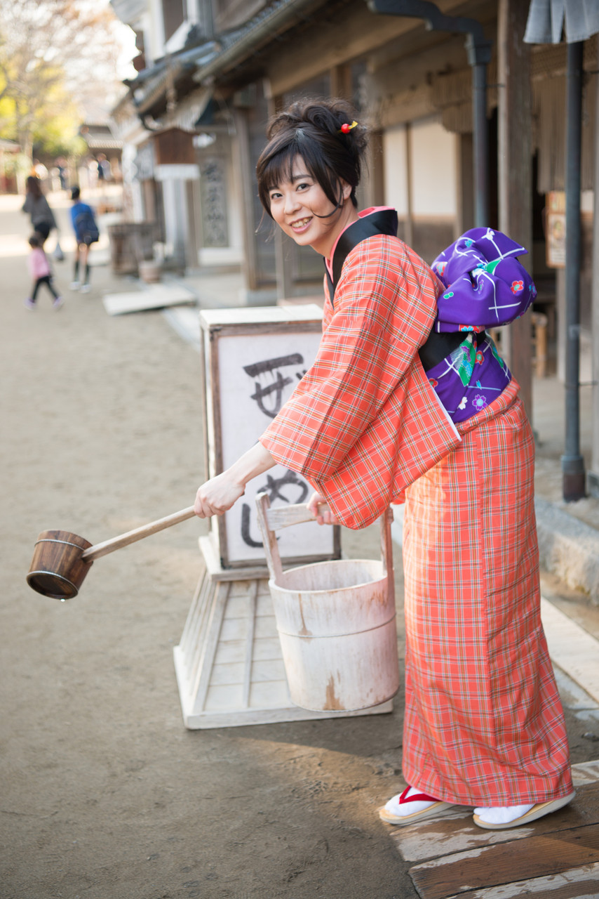 めし屋の娘になりきって、水を撒くポーズを取ってみましたよ