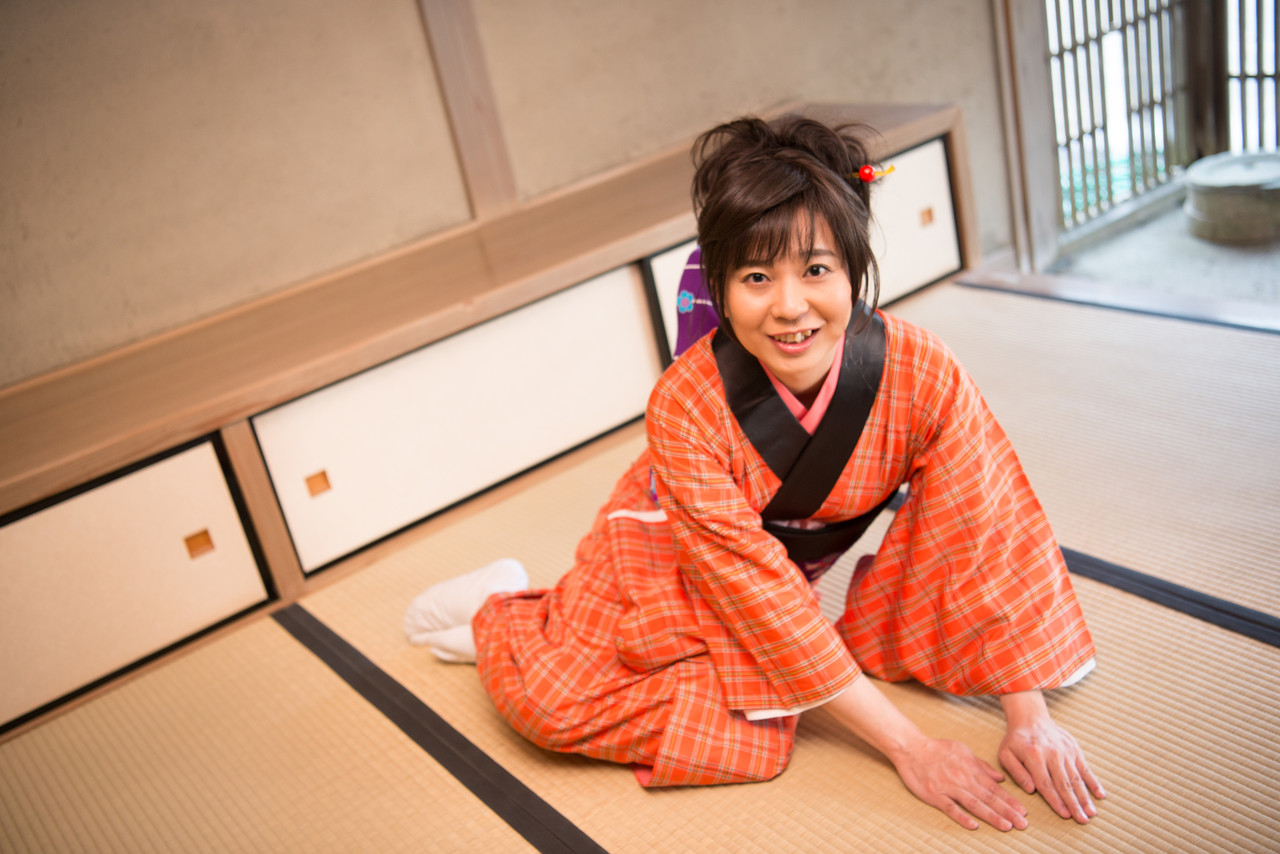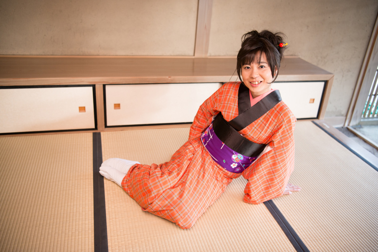 私が着ている着物と和傘は自前なので、借りられませんよ