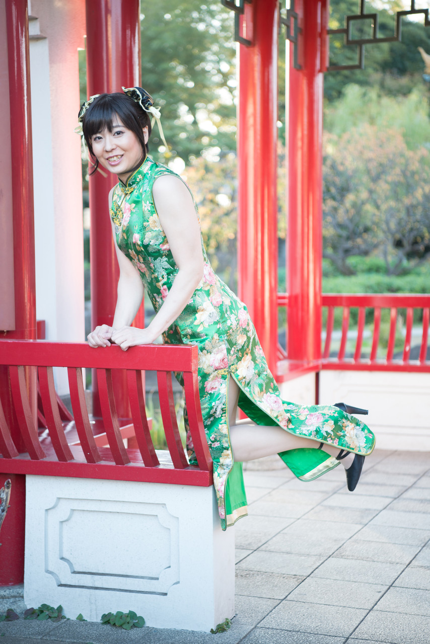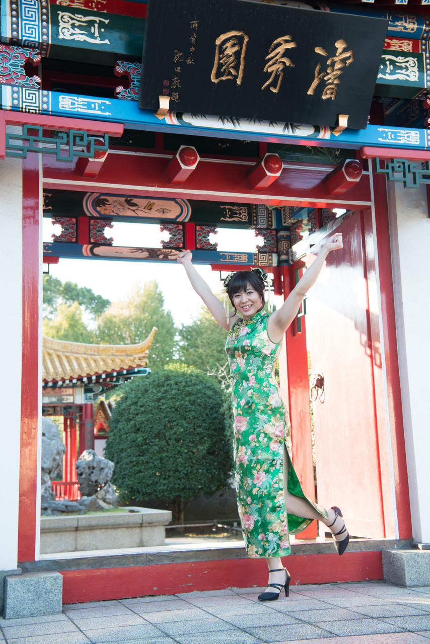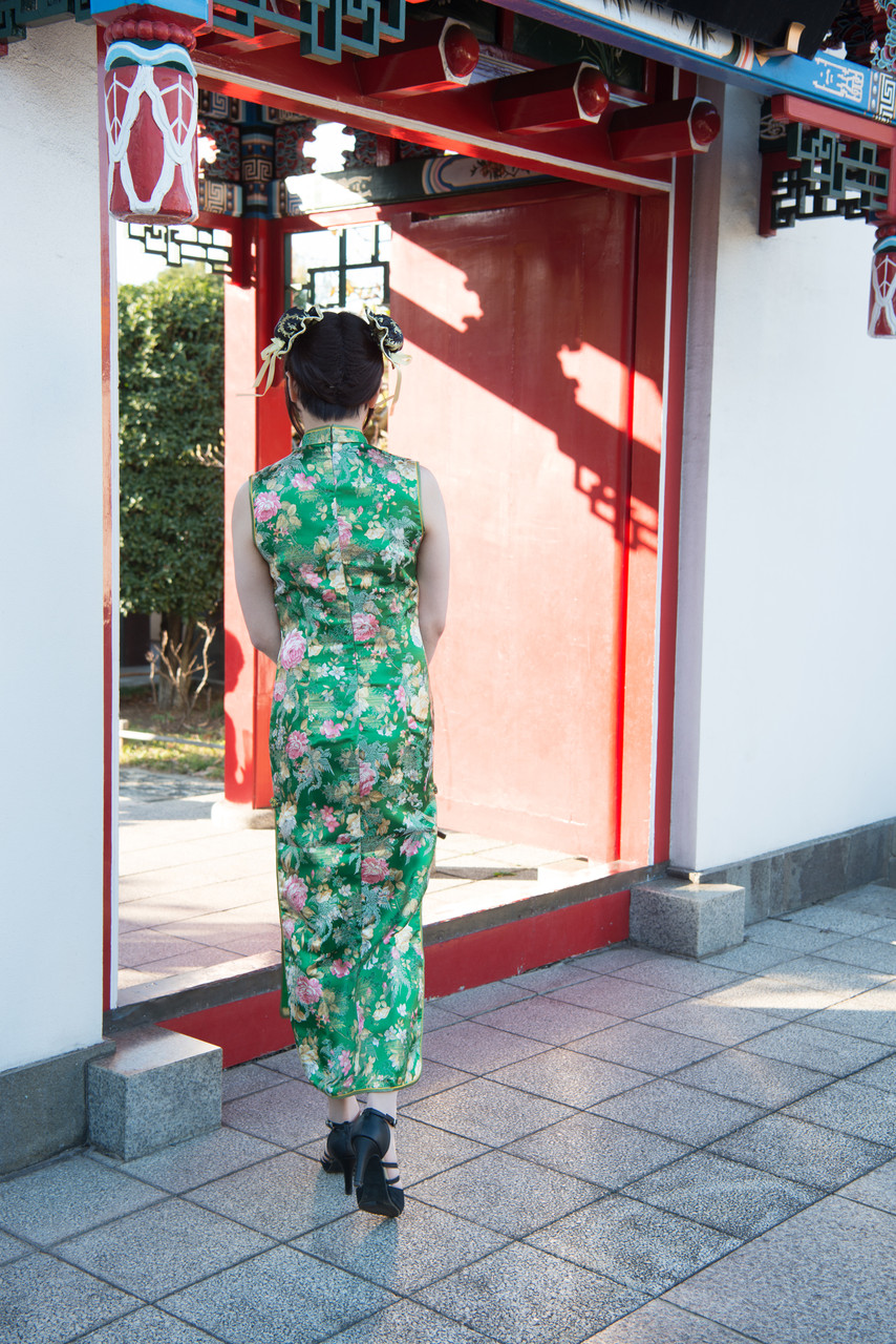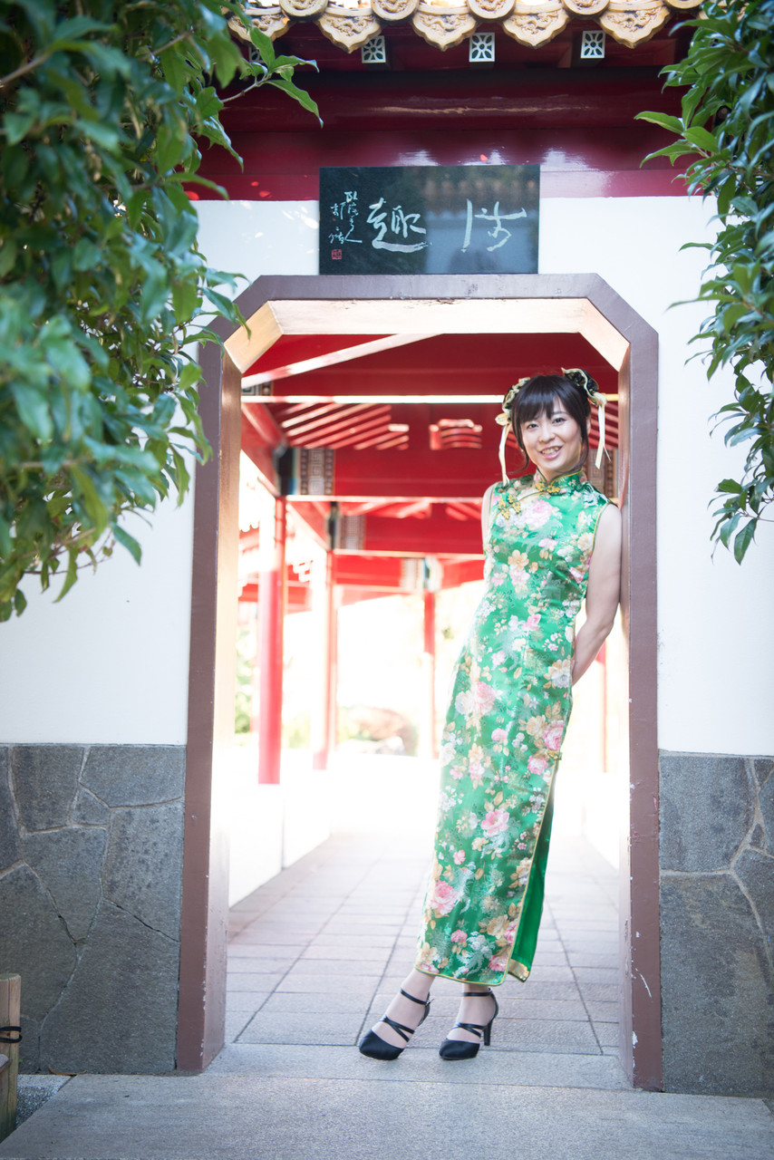 後半は、緑色のロングのチャイナドレスで散策しま~す