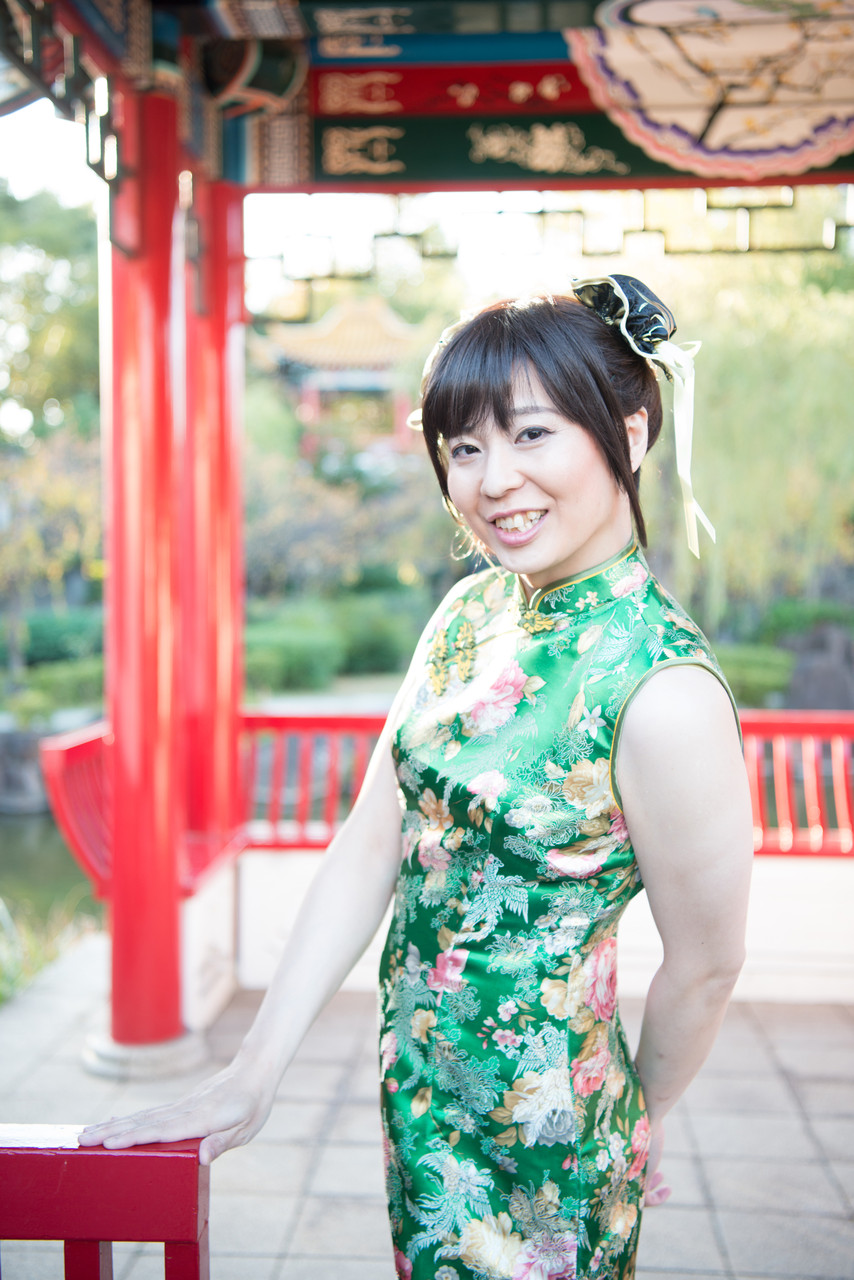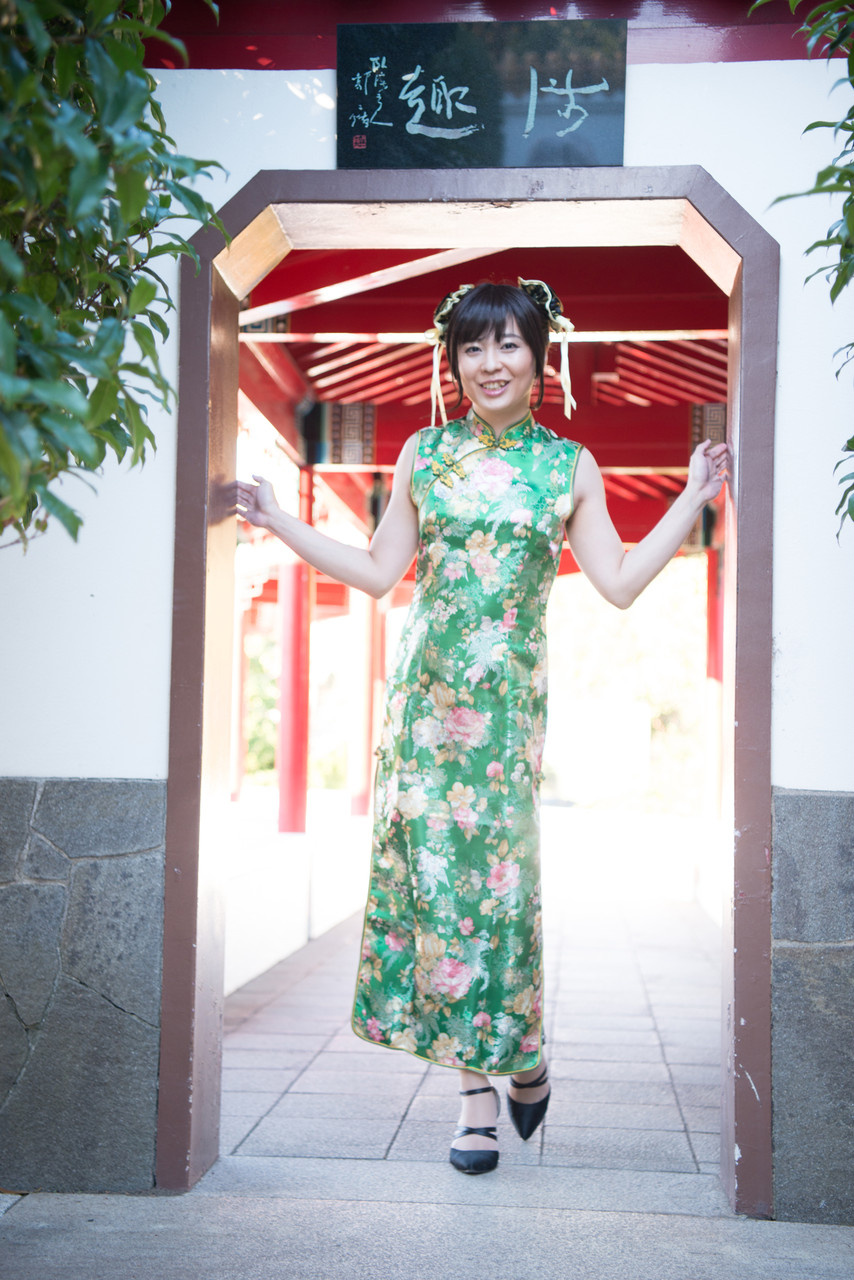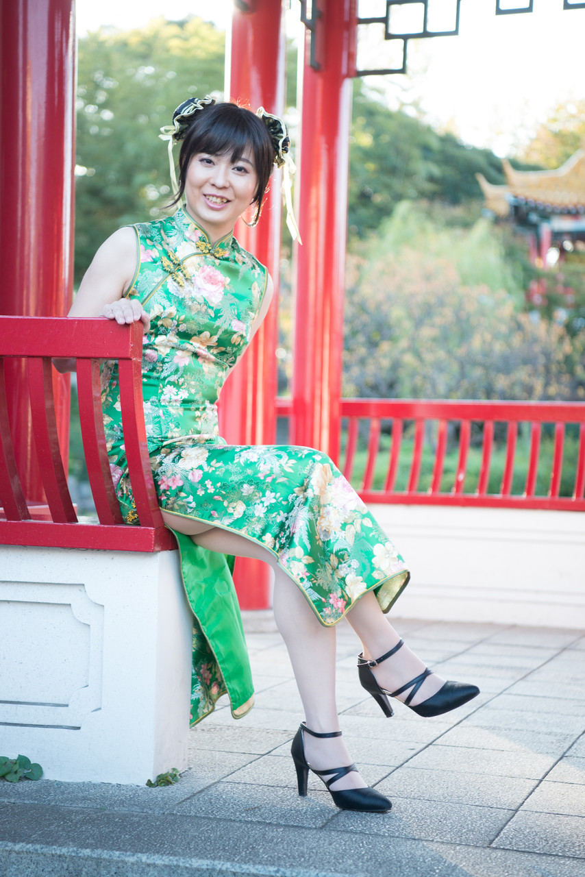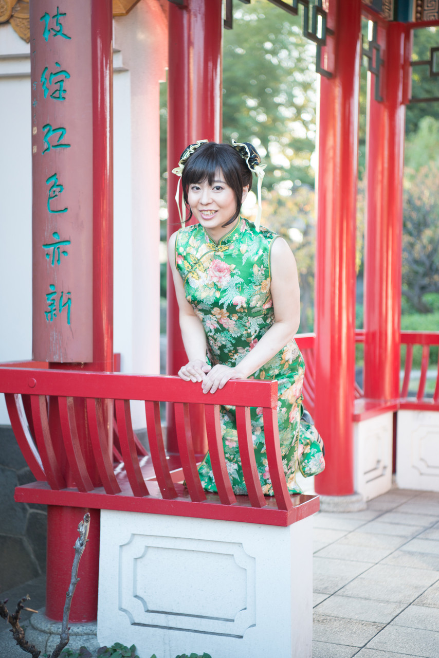 後半は、緑色のロングのチャイナドレスで散策しま~す