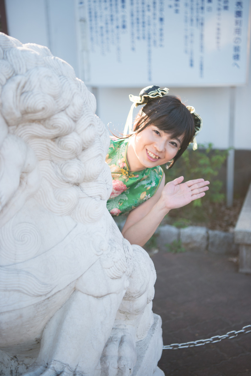前半は、青色のミニのチャイナドレスで散策しました