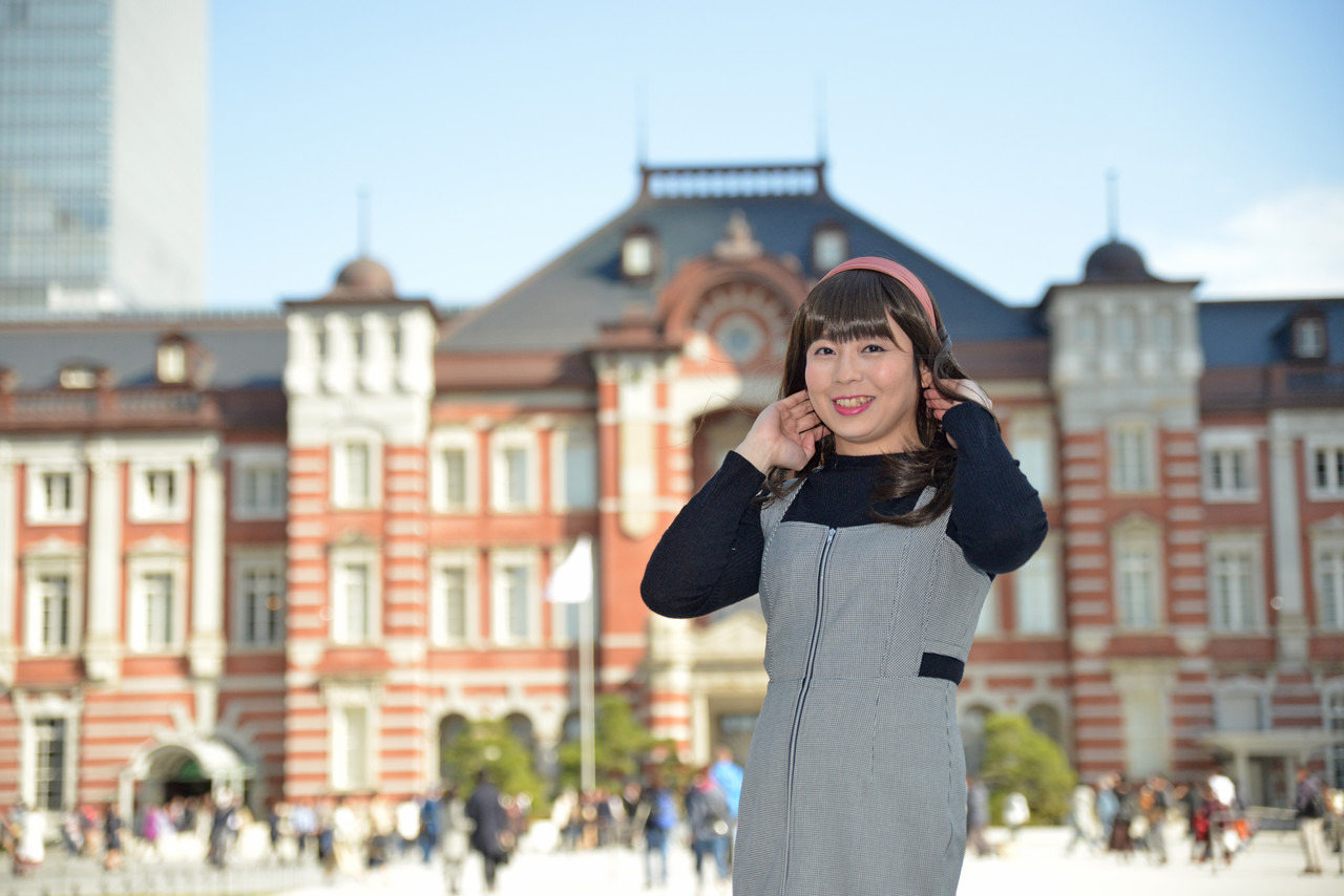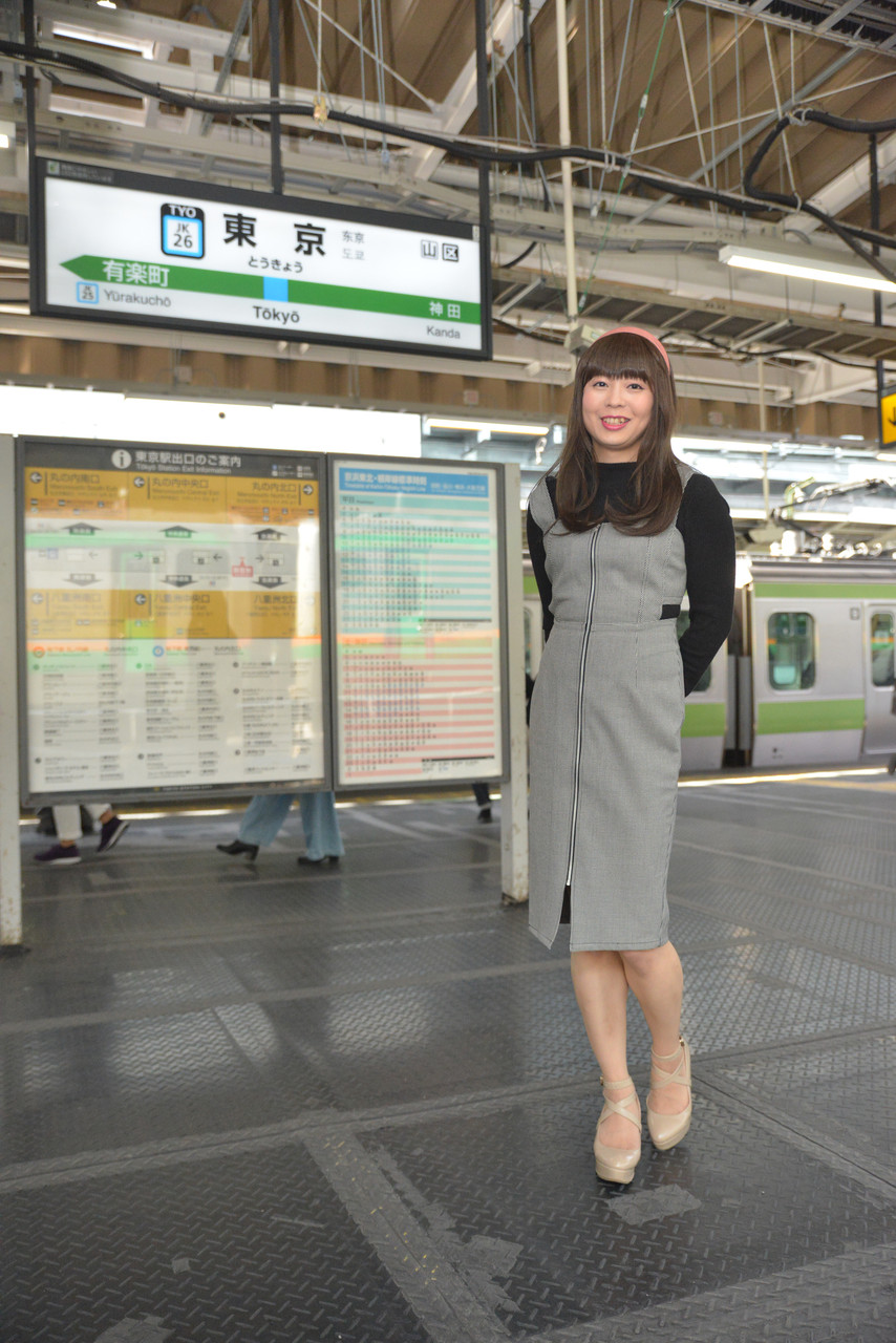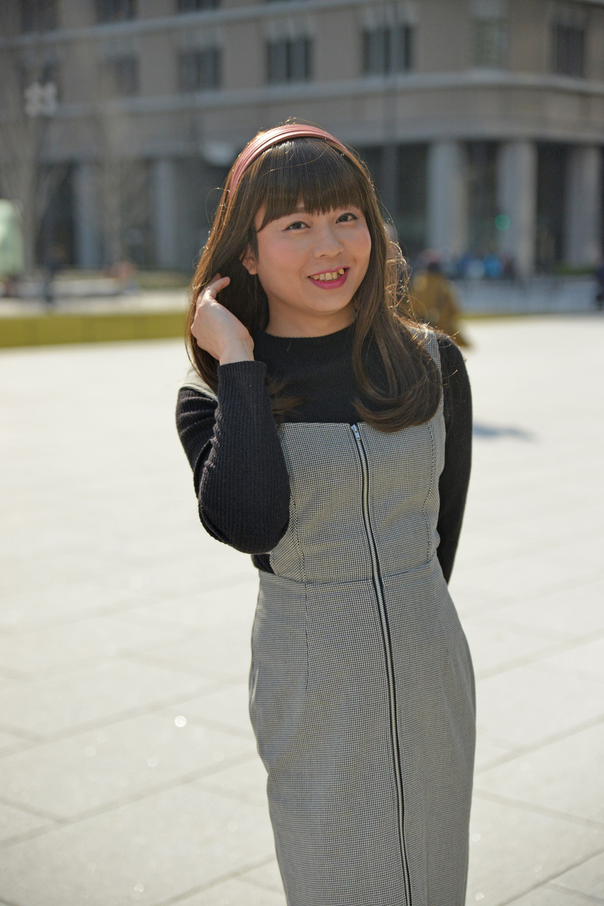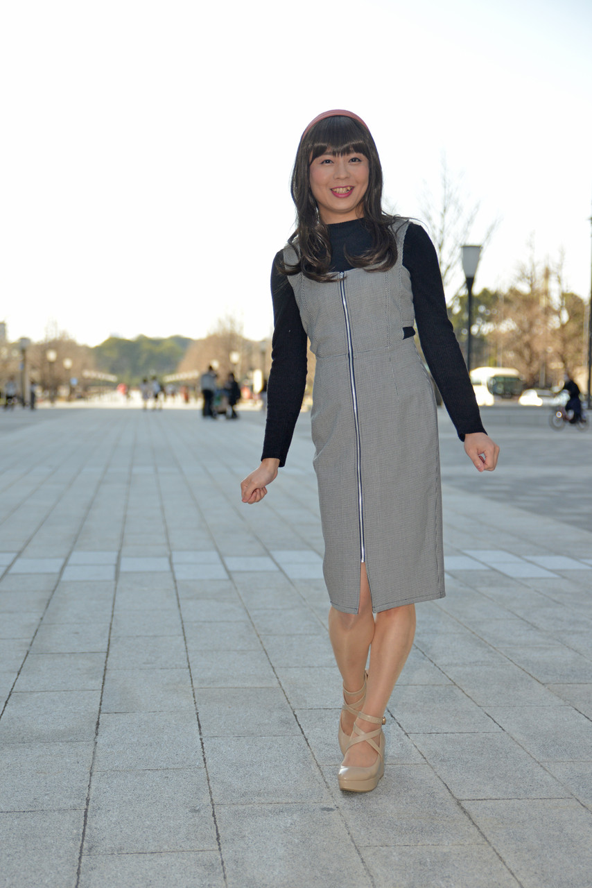 タイトなジャンパースカート着て、春の丸の内を散策します