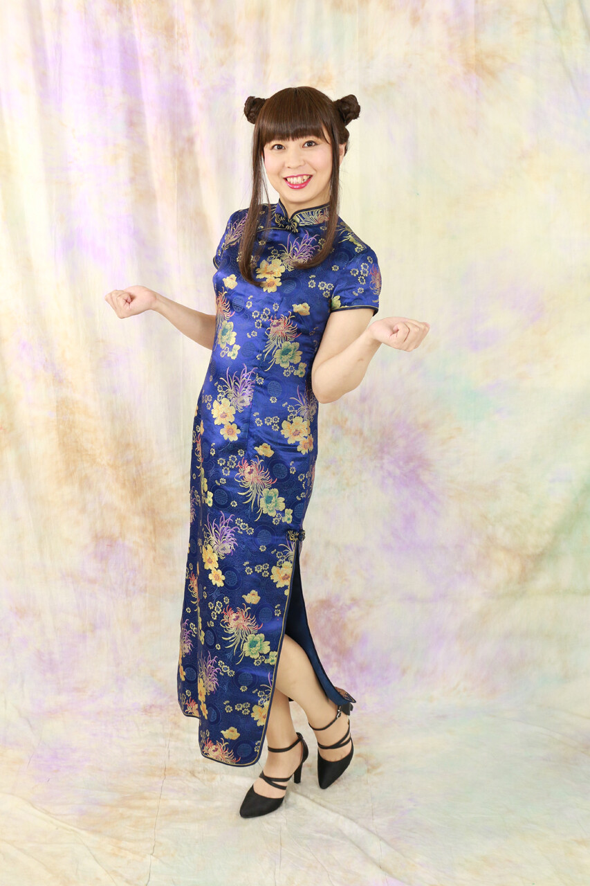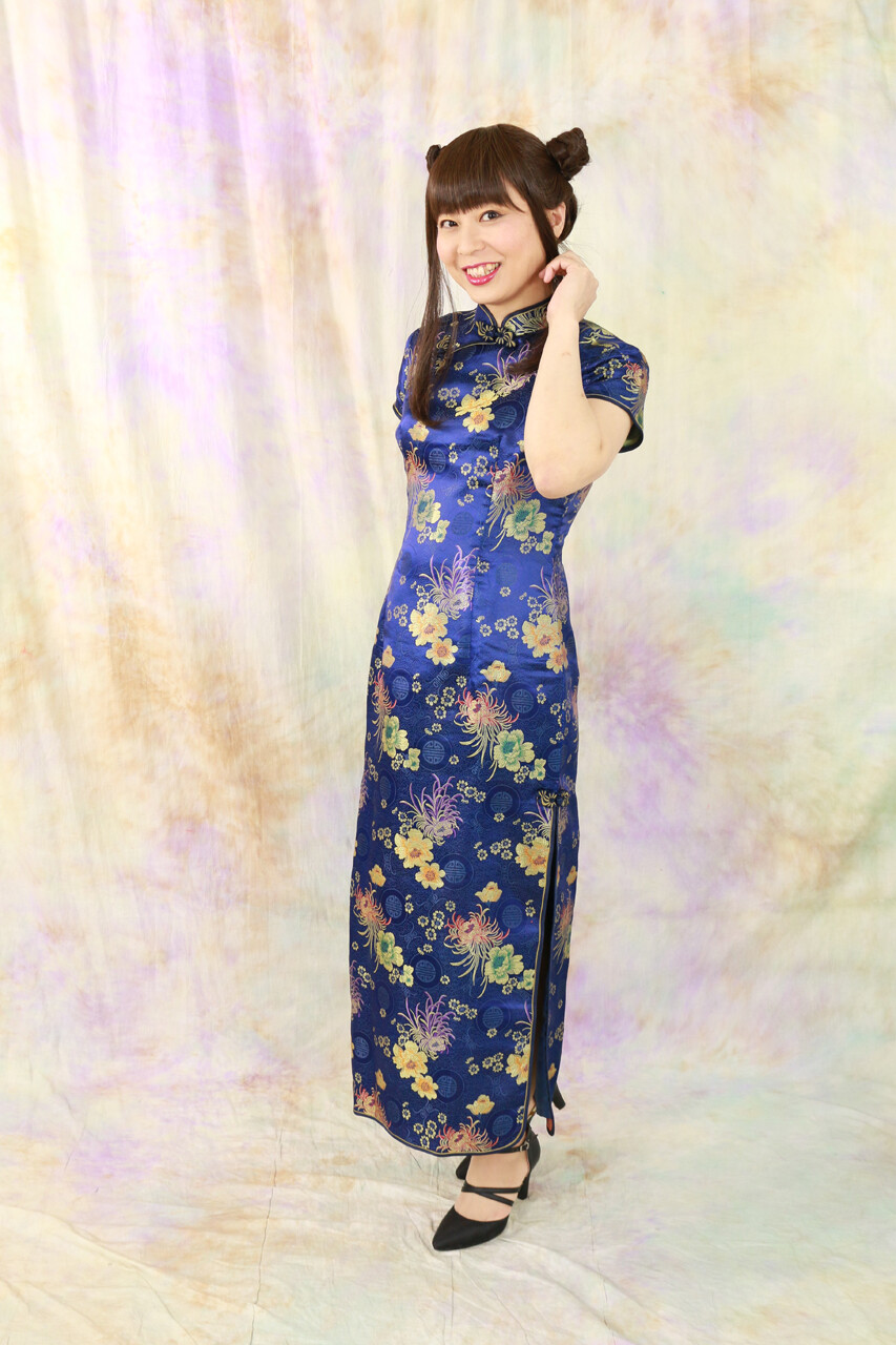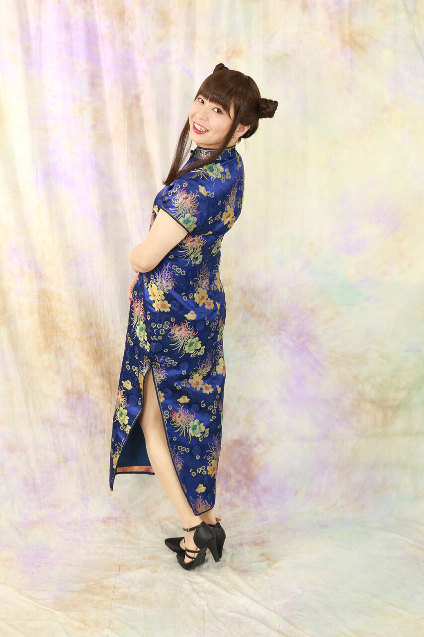 昨年”瀋秀園”で着用したチャイナドレスの一つは、青色のミニバージョンでした