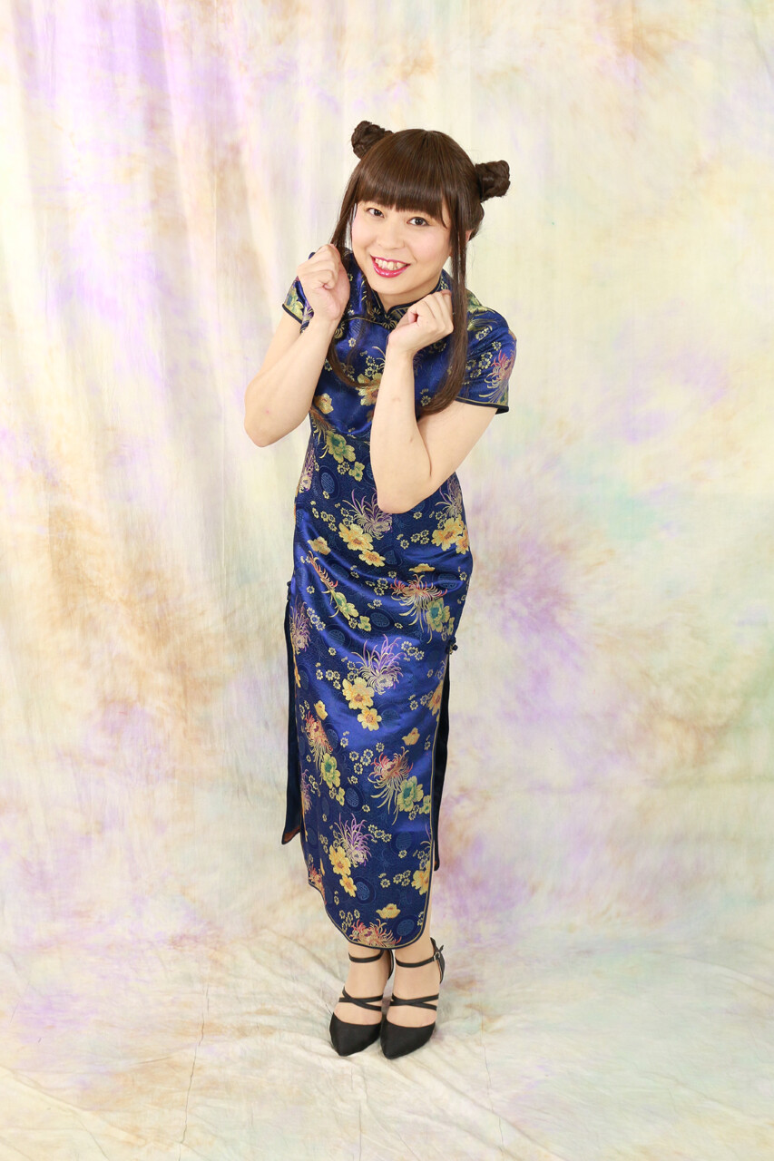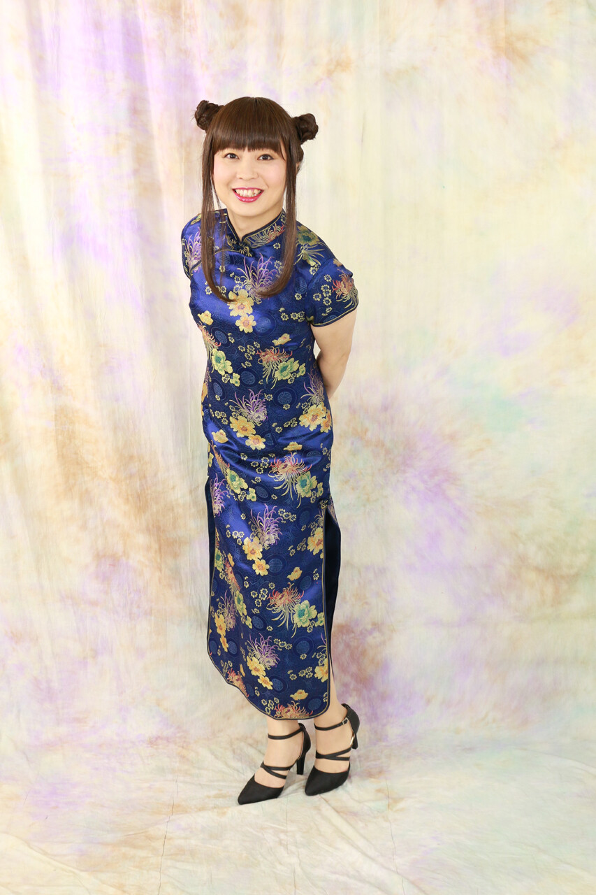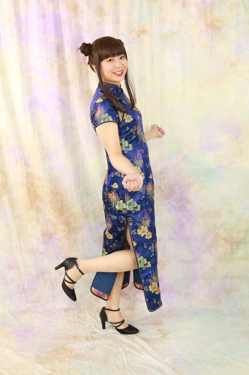 昨年”瀋秀園”で着用したチャイナドレスの一つは、青色のミニバージョンでした