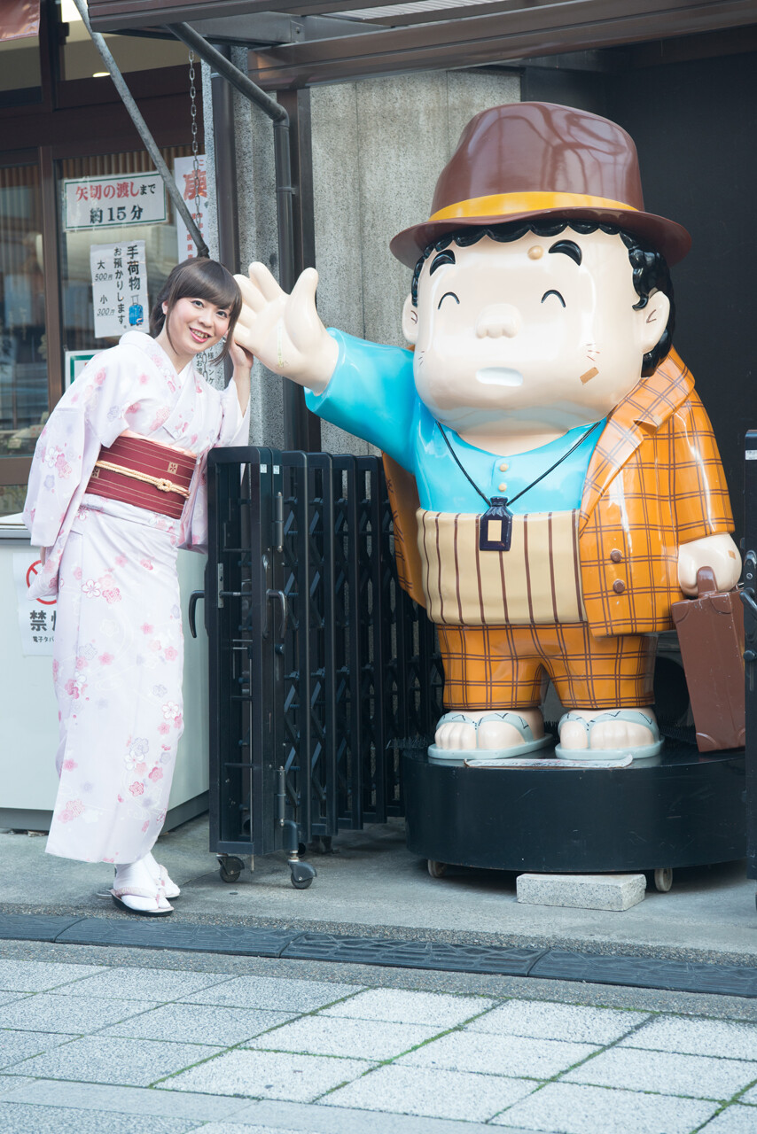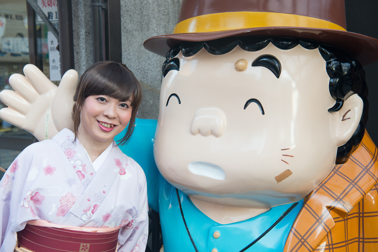 駅前に寅さんと、さくらの銅像がありましたが人気があり、みんな撮影しています