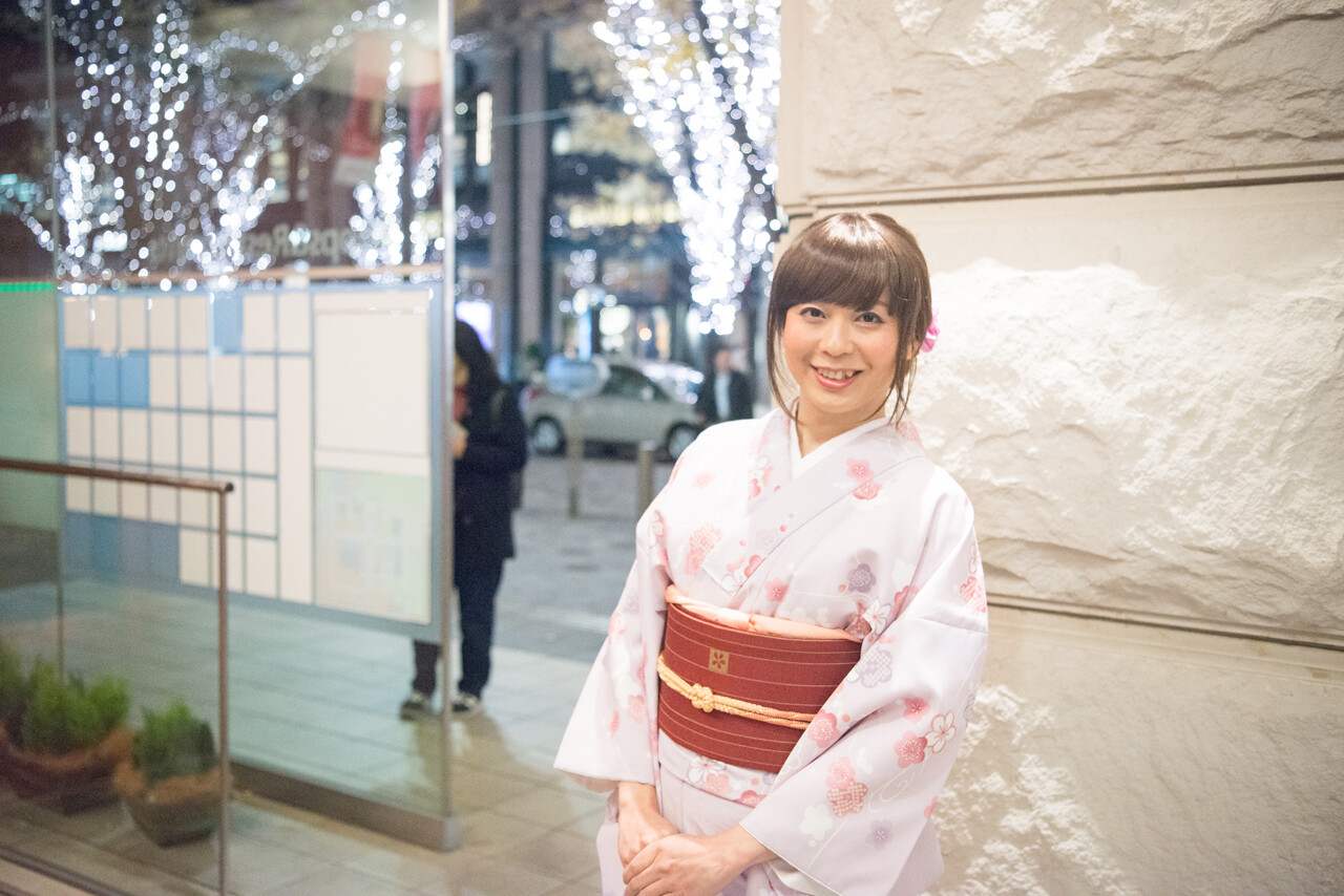 丸の内仲通りのイルミネーション見た後、ビルの壁を背景に撮ってみました