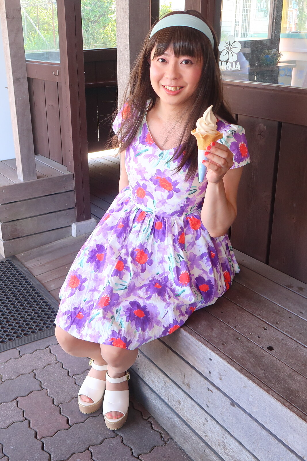 ソフトクリームを持った撮影は、時間が勝負ですね 北条海岸へやってきました~車だと内房なぎさライン沿い、電車だとJR内房線館山駅から徒歩3分位です電車でも便利な所ですね サーフィンを楽しむ人が結構いましたよ