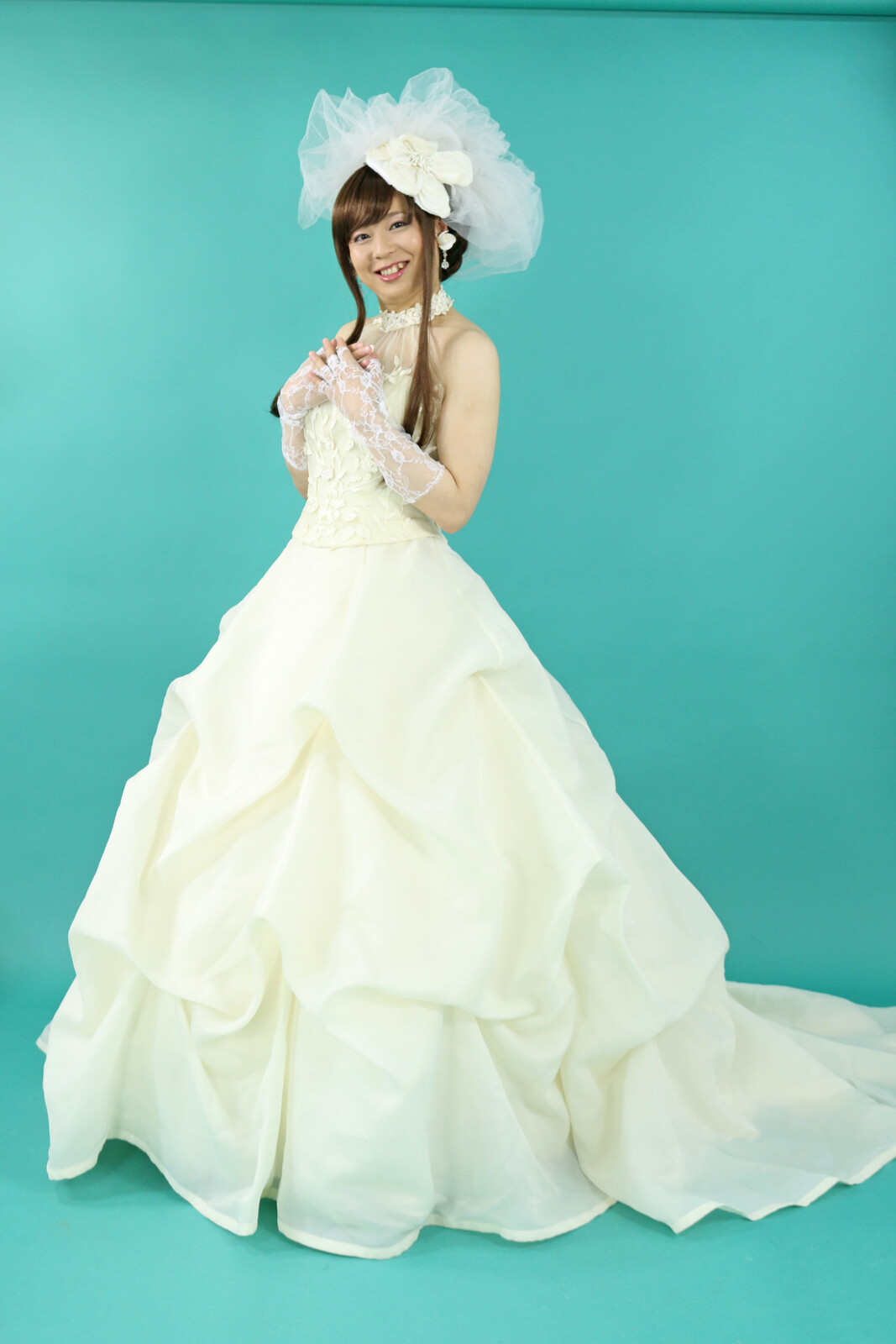 秋のウェディングシーズンになりましたね今年はコロナ禍、30人以下の結婚式や写真撮影だけのフォトウェディングが例年より増えているそうですフォトウェディングは一般的な結婚式を挙げません。式にかける金額が減った分、ドレスにかける人が増えているみたいですよ------------------------------------------------------2年振りにウェディングドレス姿を掲載します 帽子みたいな物は、ヴェールを束ねています