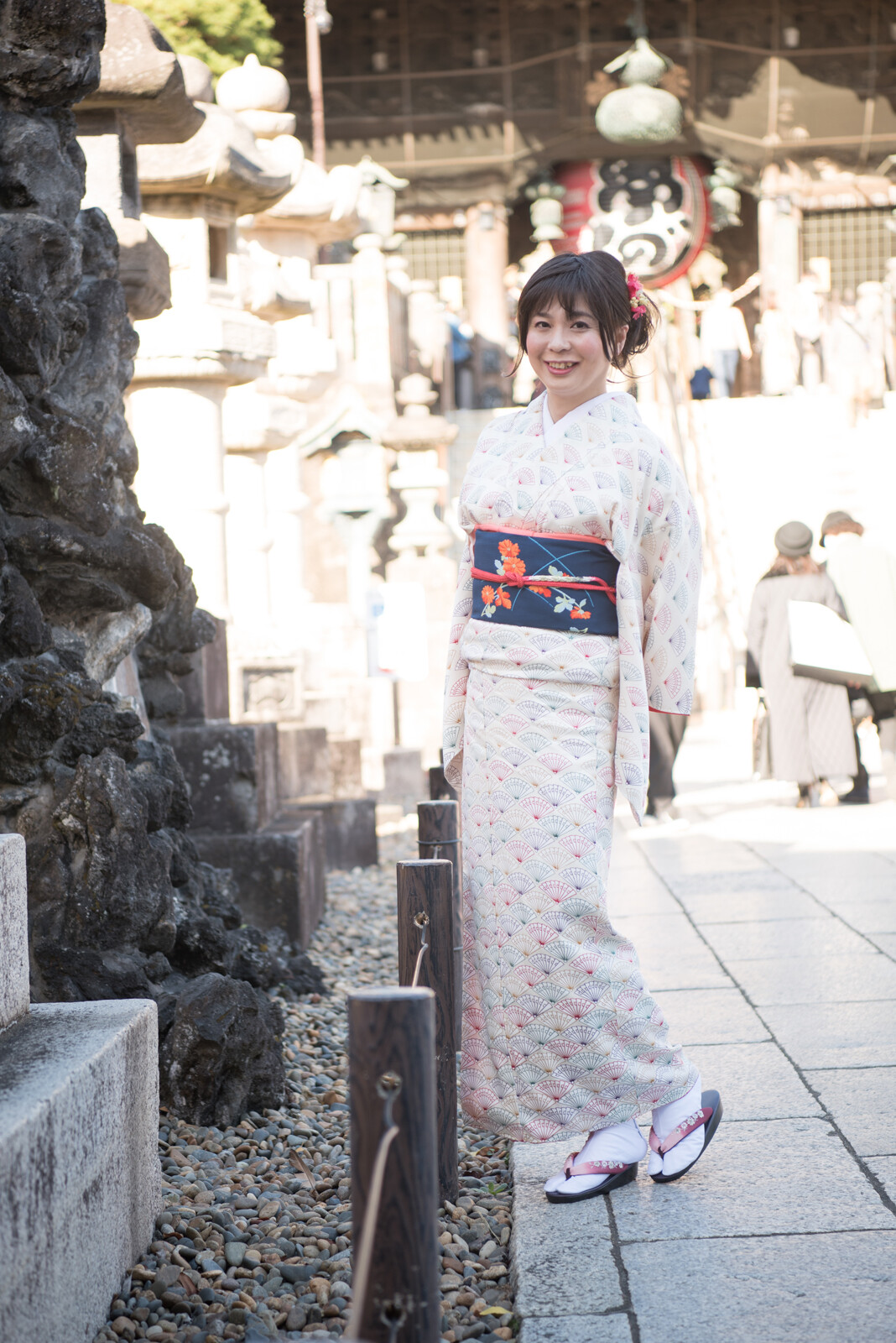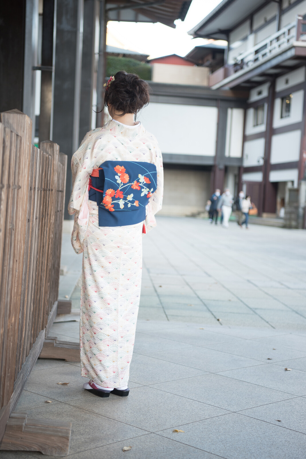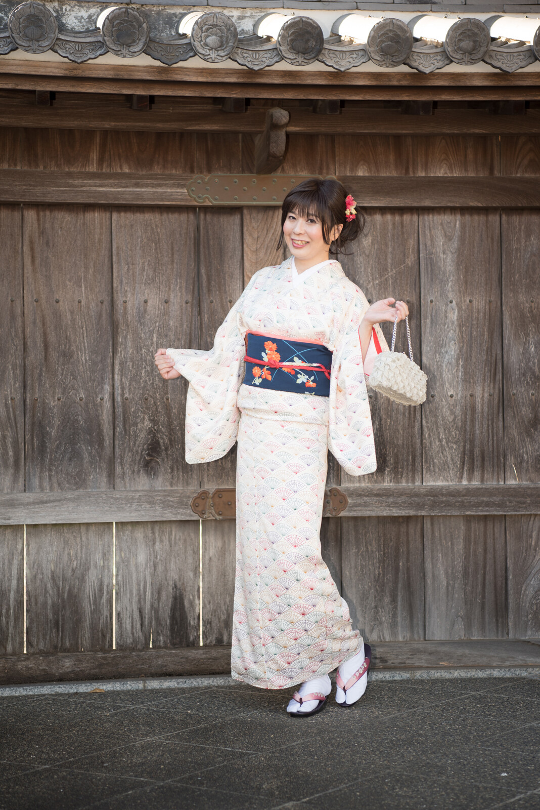 前回掲載したオレンジ色の着物(訪問着)の他、今回の扇柄の着物(小紋)をお母さんからもらいました