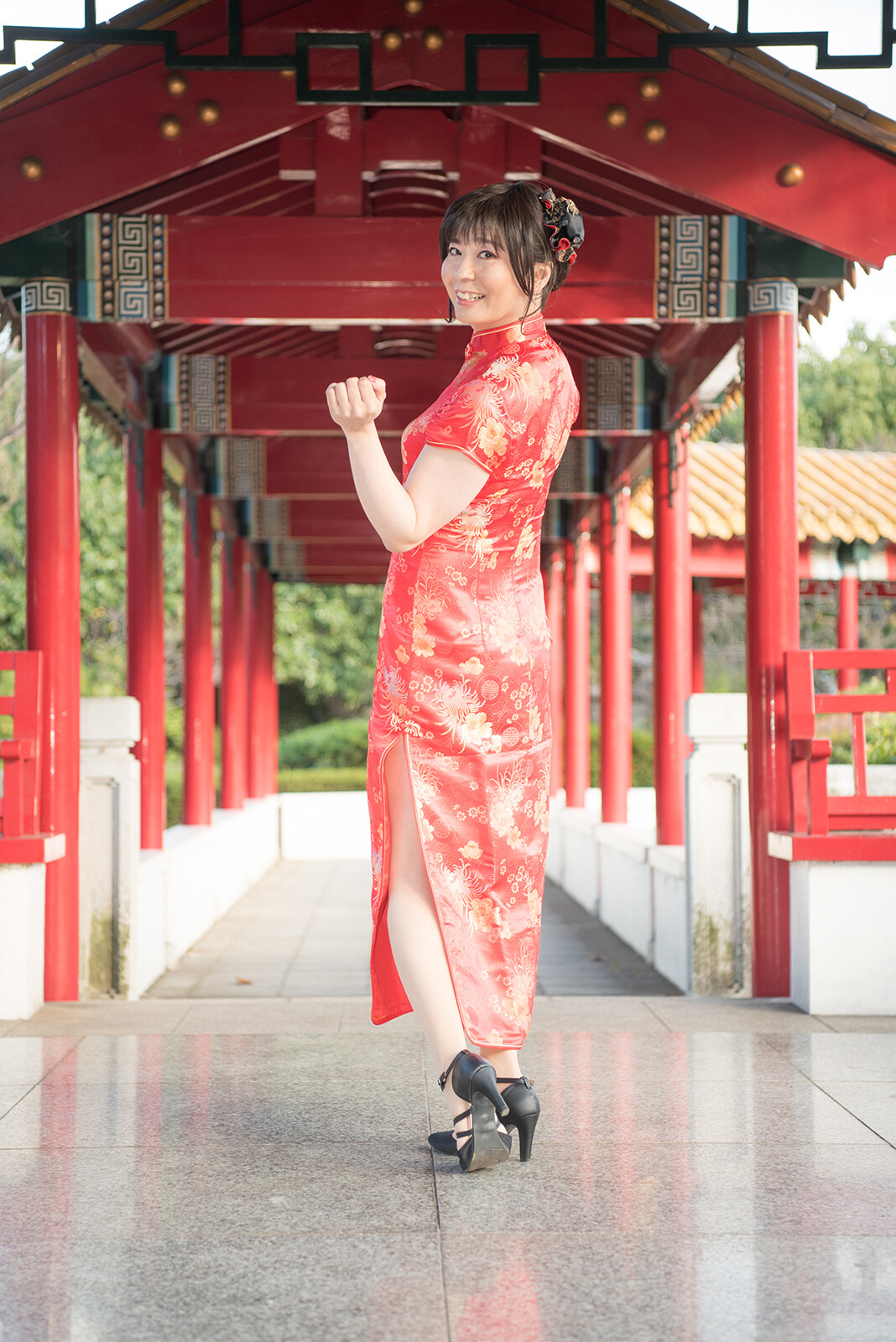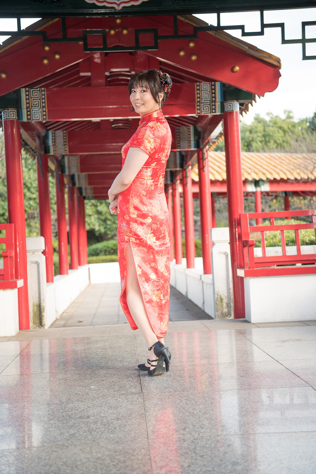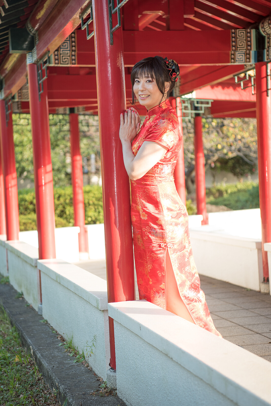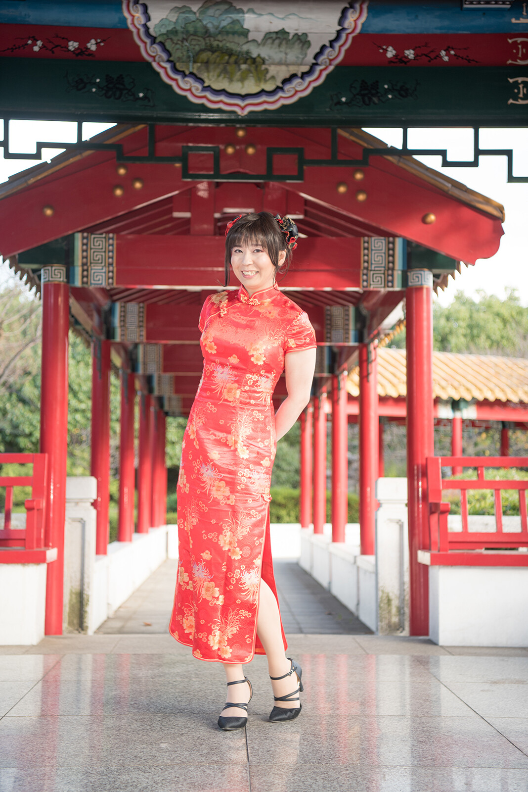 今回もチャイナドレス姿で瀋秀園を散策します