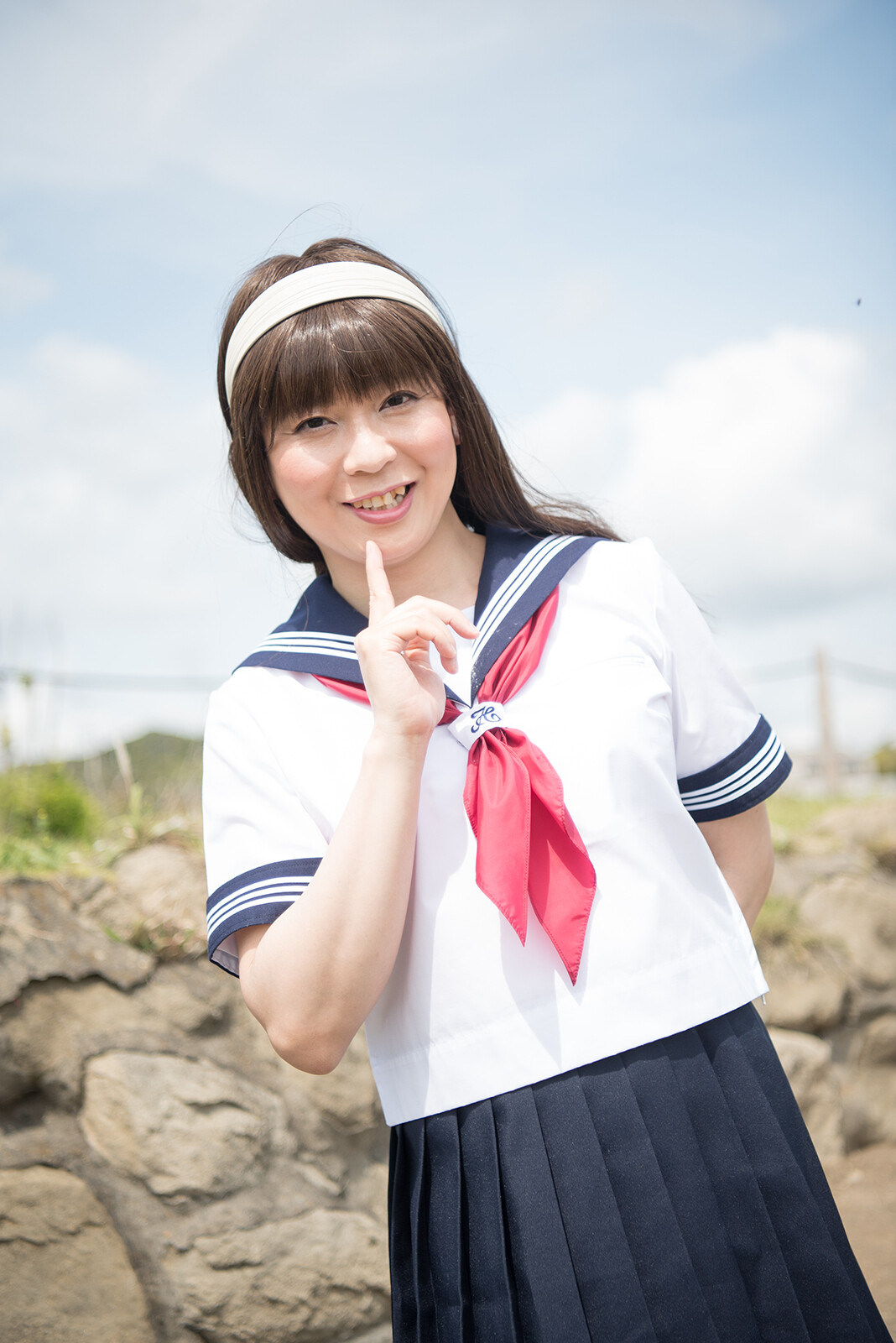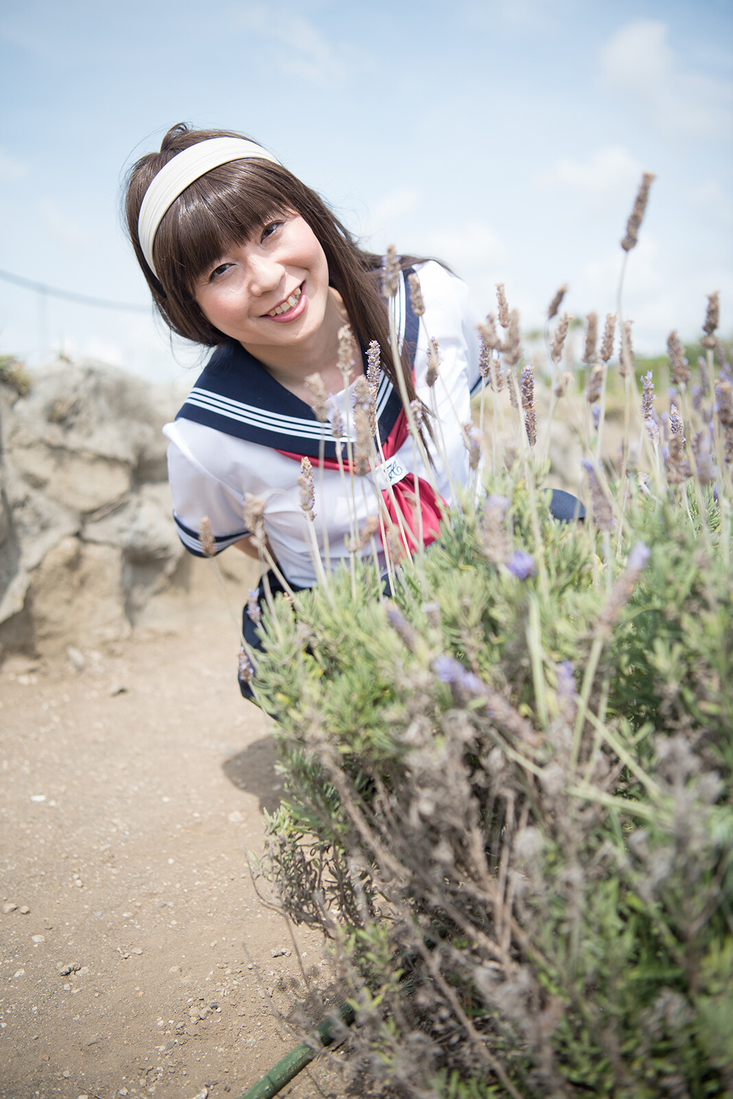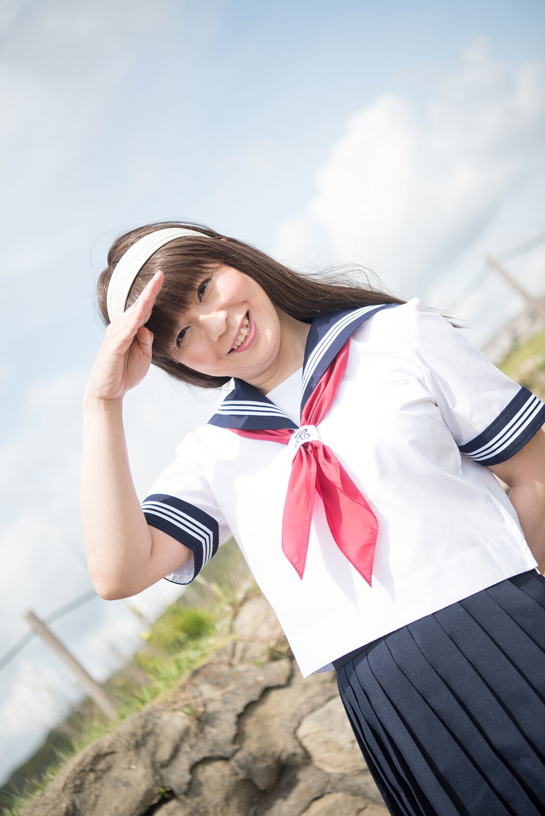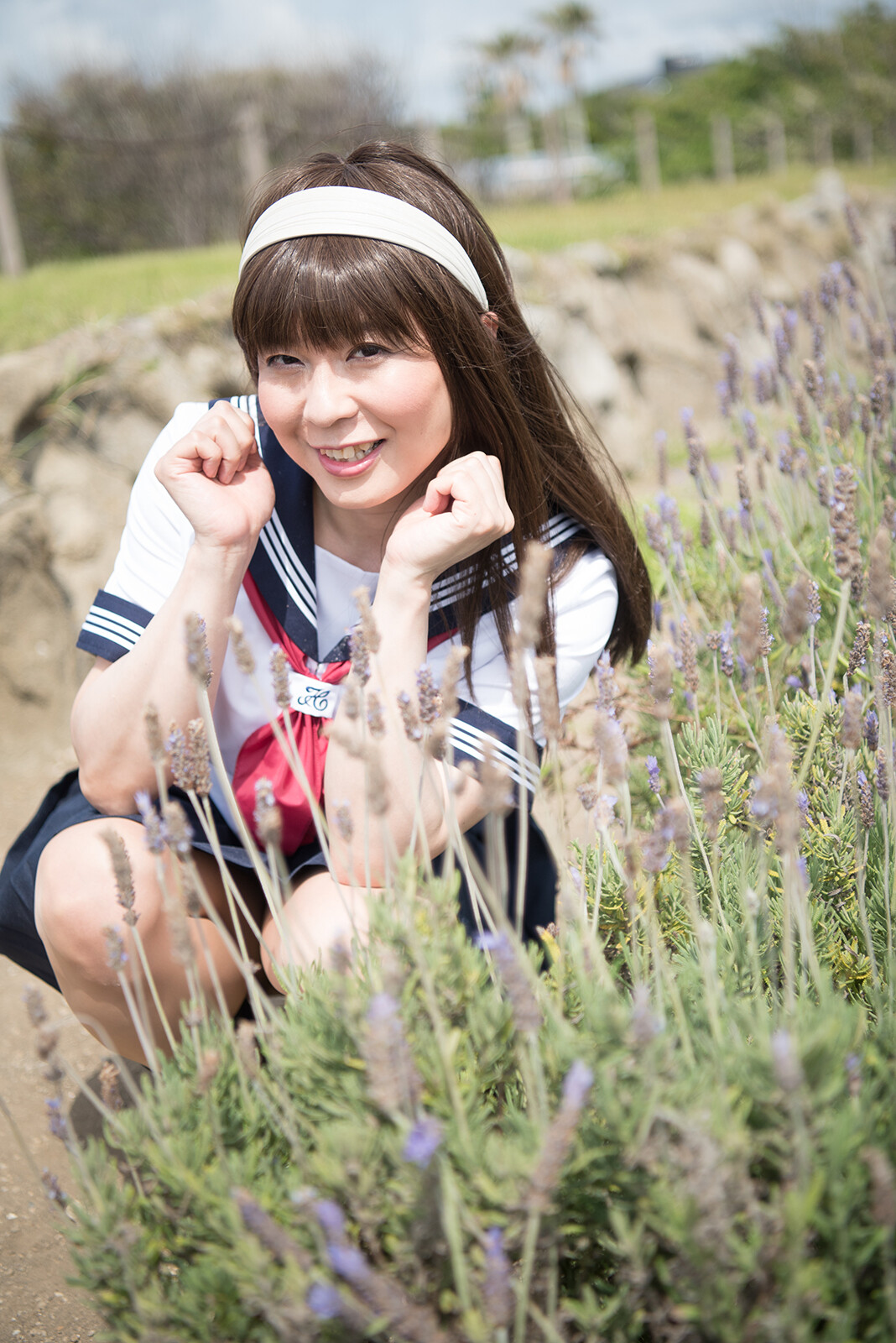 前屈みでポーズを取っている時に、後ろから強い風が吹いてきましたよ。