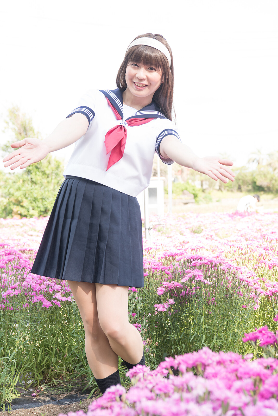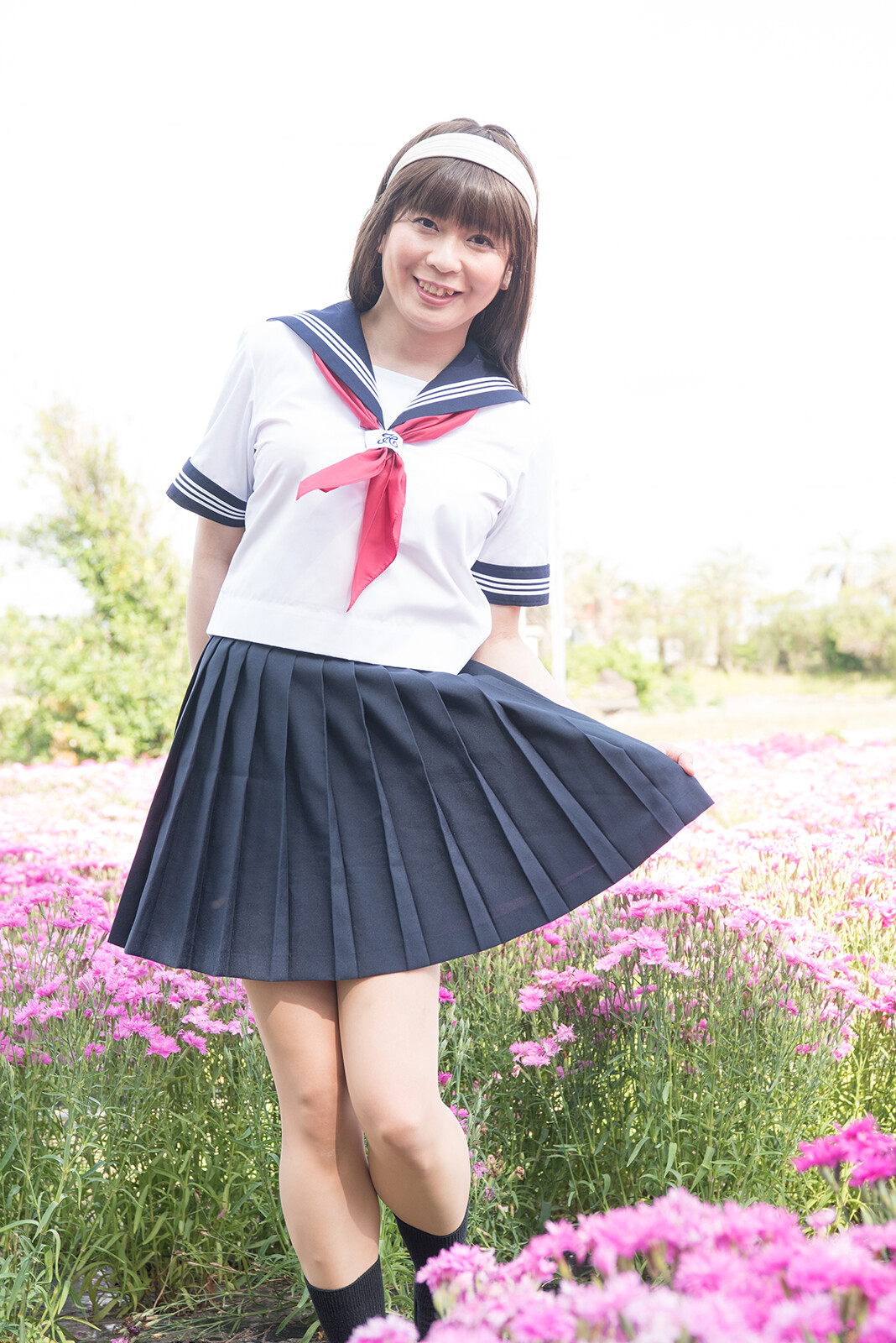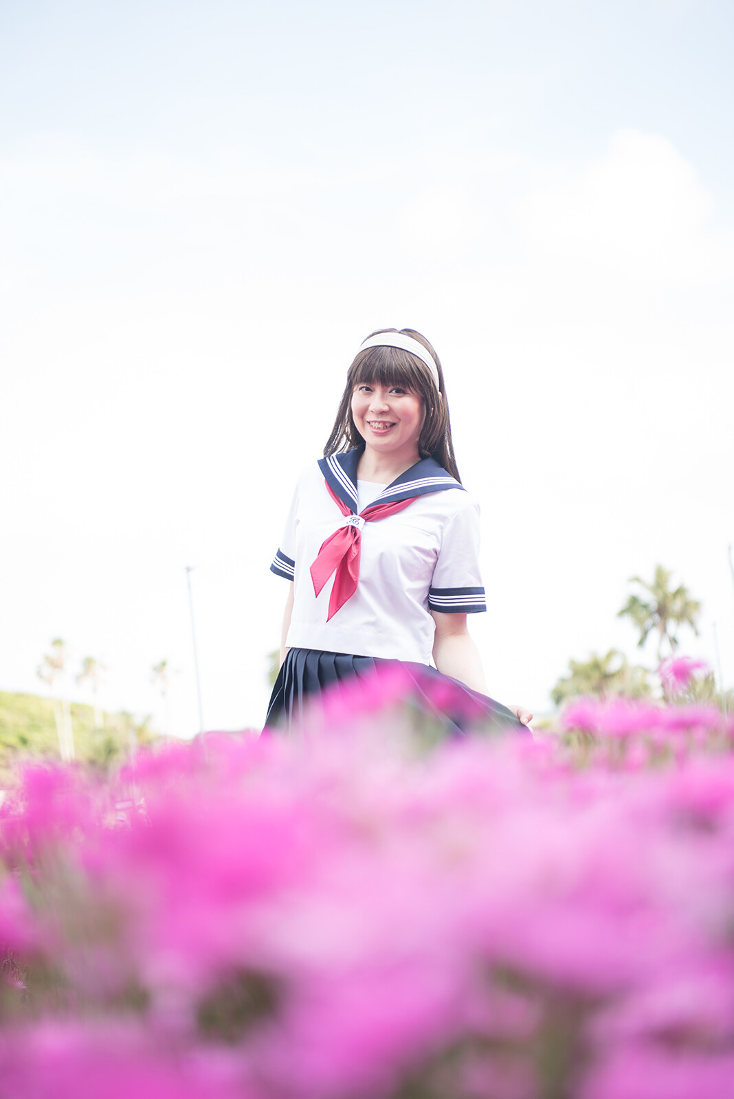 この写真も風が吹いて、スカートがフワッとなっていますね。