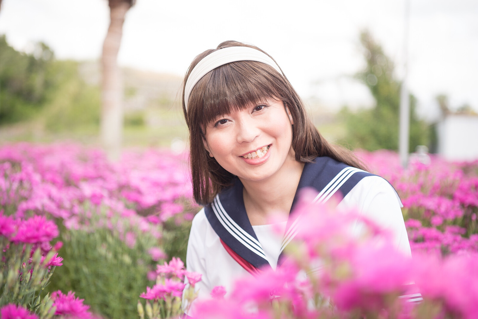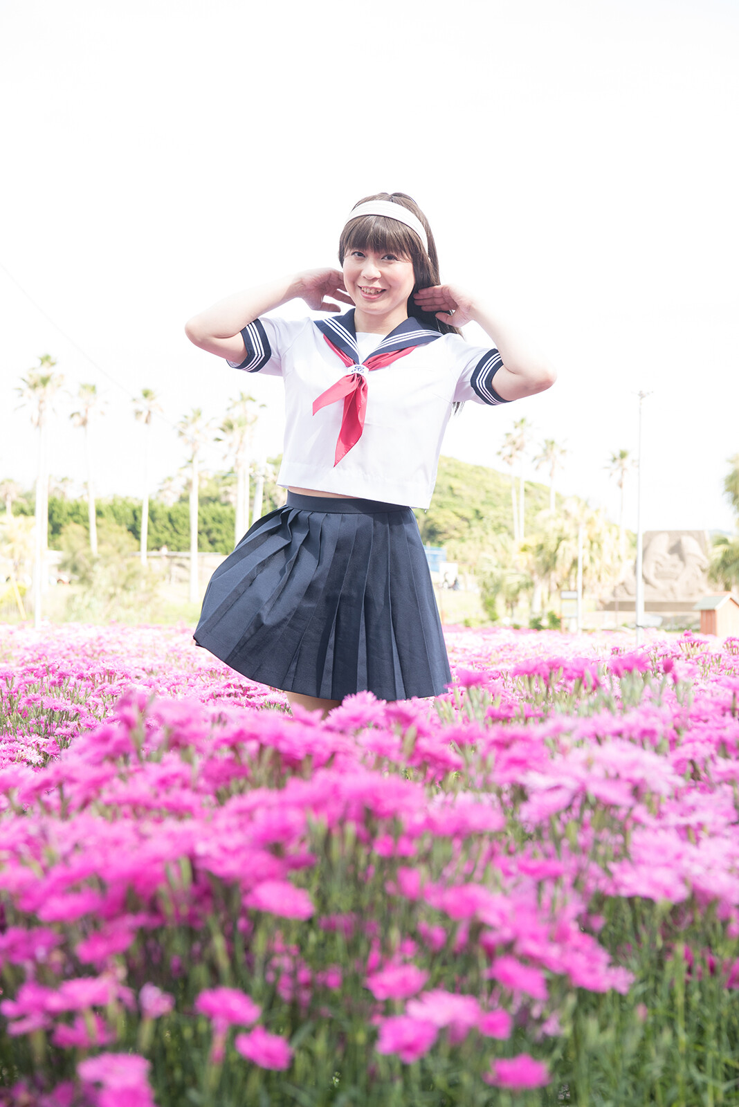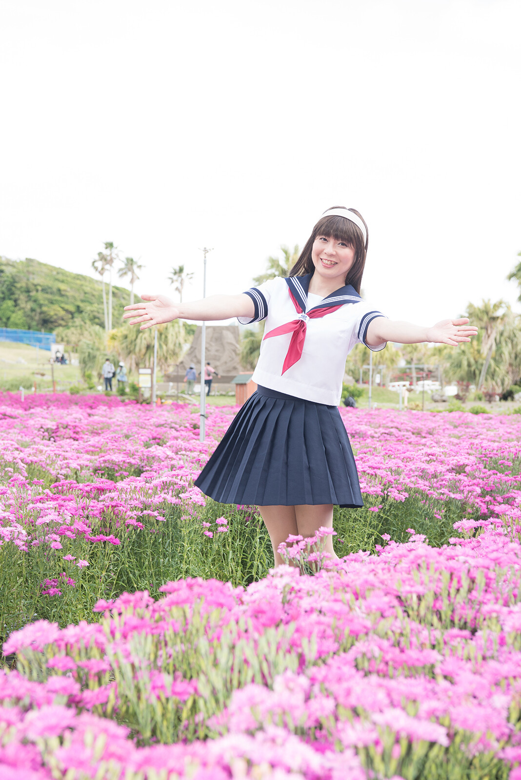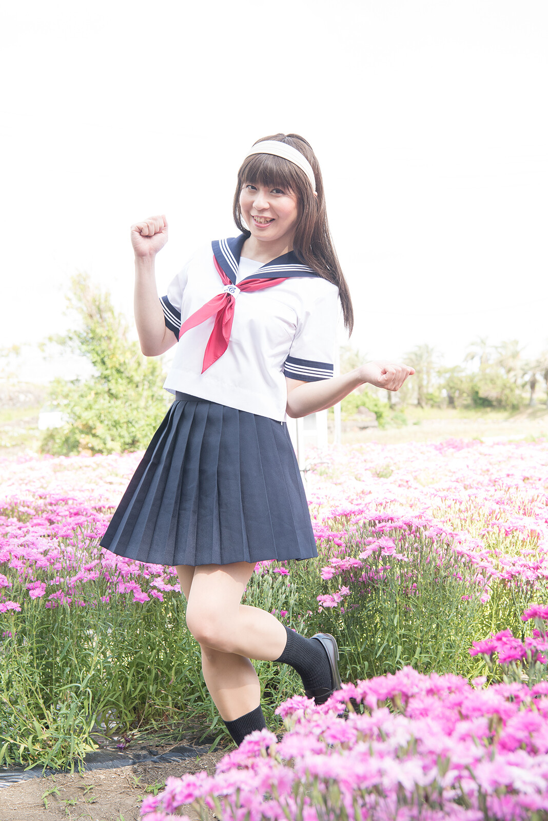 この写真も風が吹いて、スカートがフワッとなっていますね。