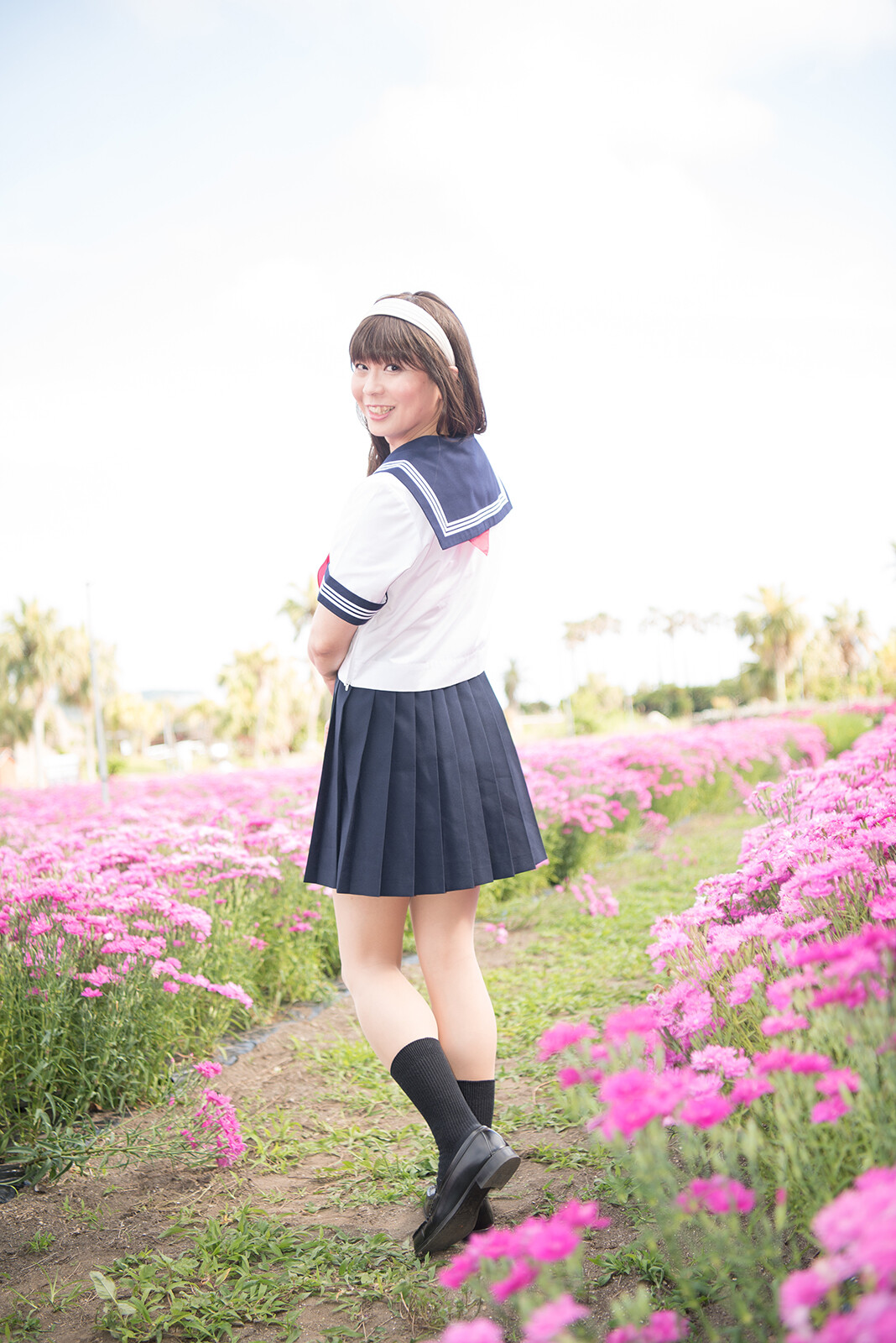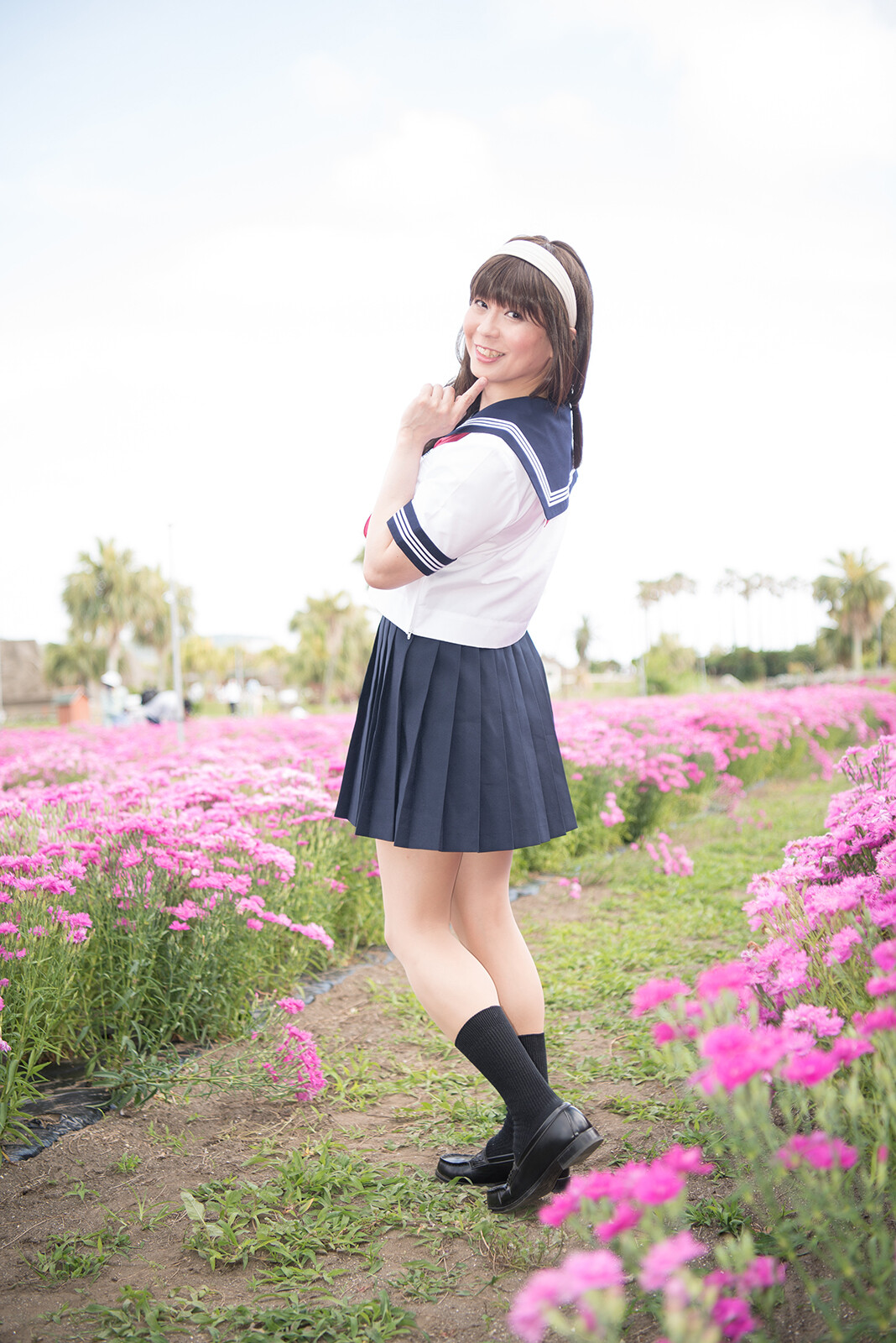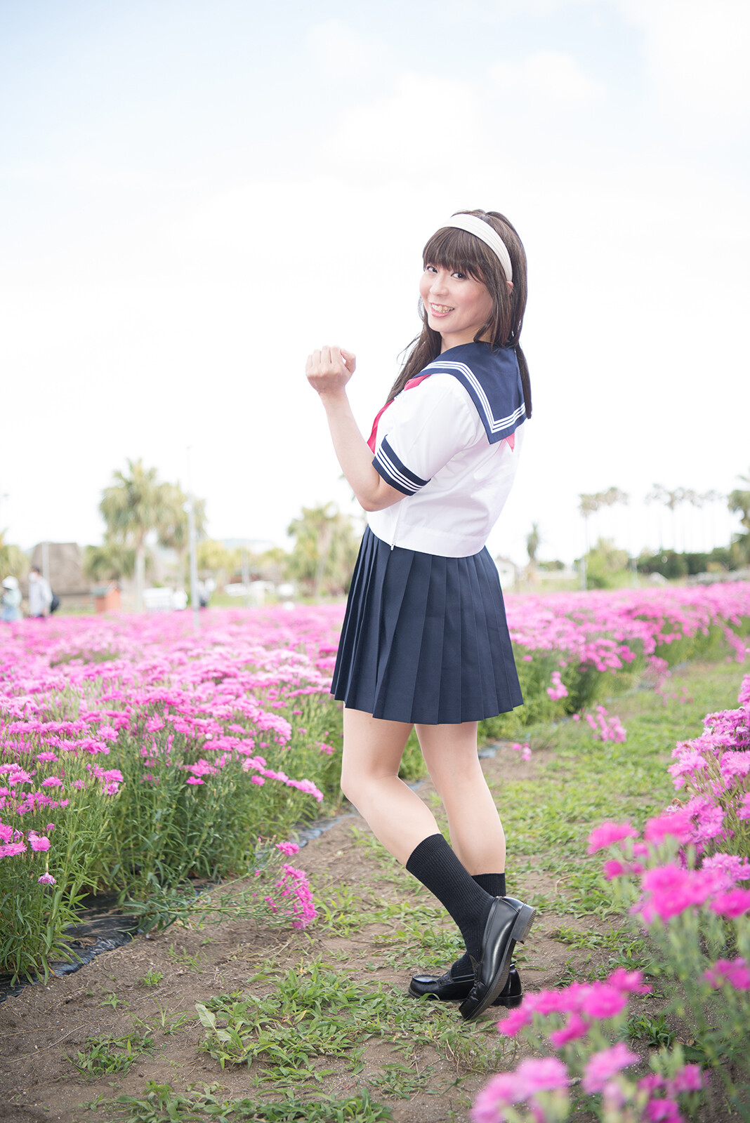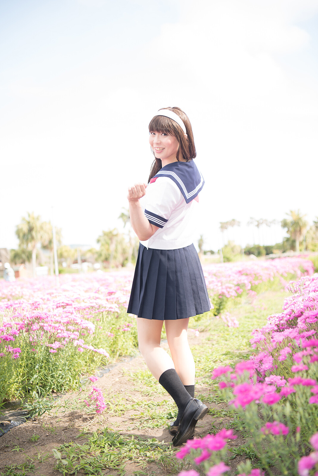 後ろ髪を前へ持っていき、セーラー服の後ろ全体が見えるようにしました