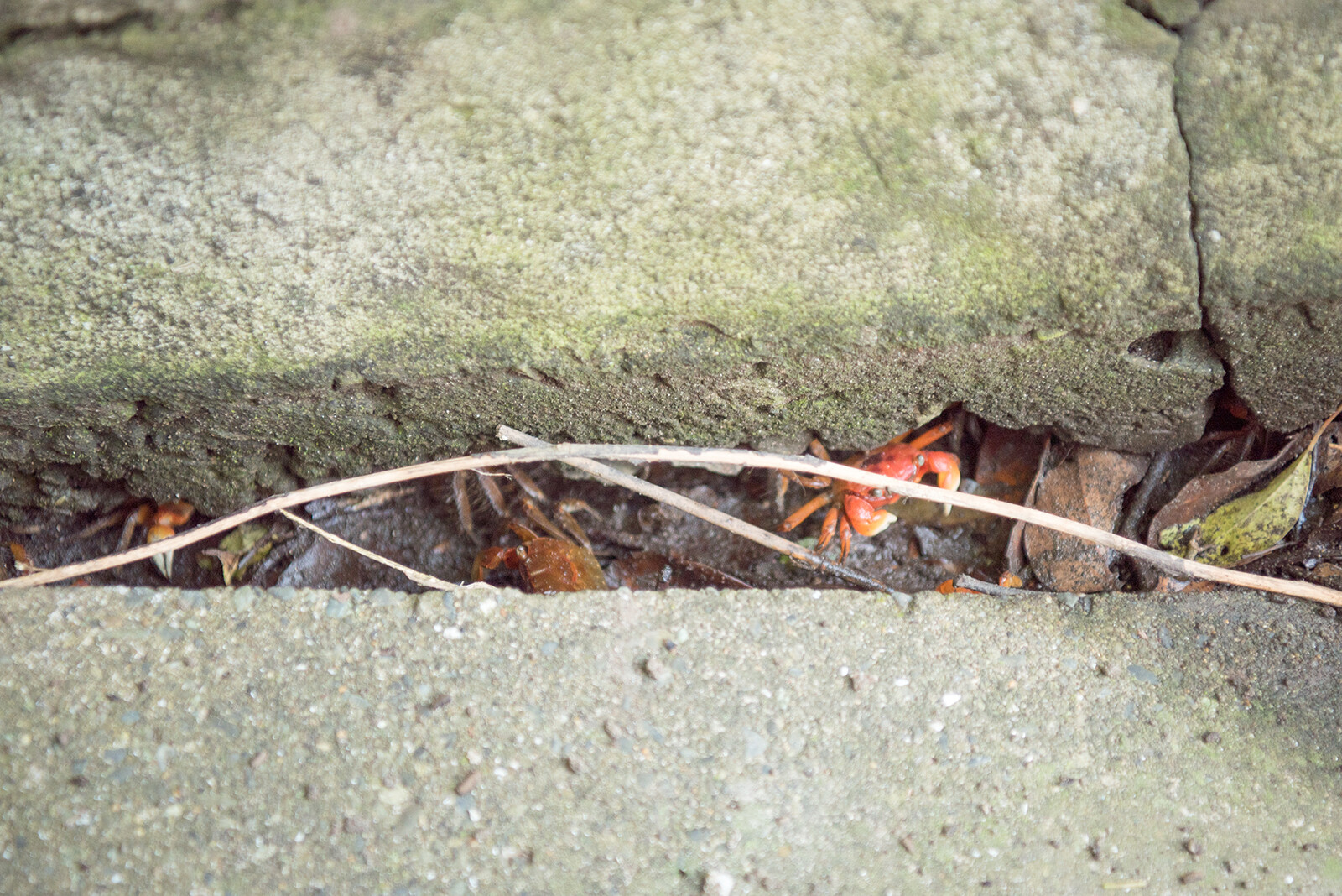 洞窟を抜けると岩場があって、洞窟内だけでなく岩場にもアカテガニがたくさんいますよ
