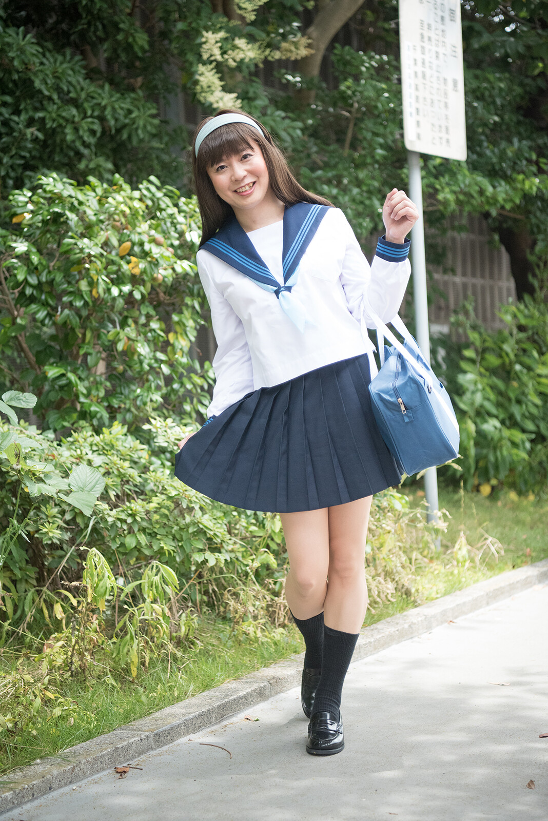 長袖のセーラー服でお出掛け