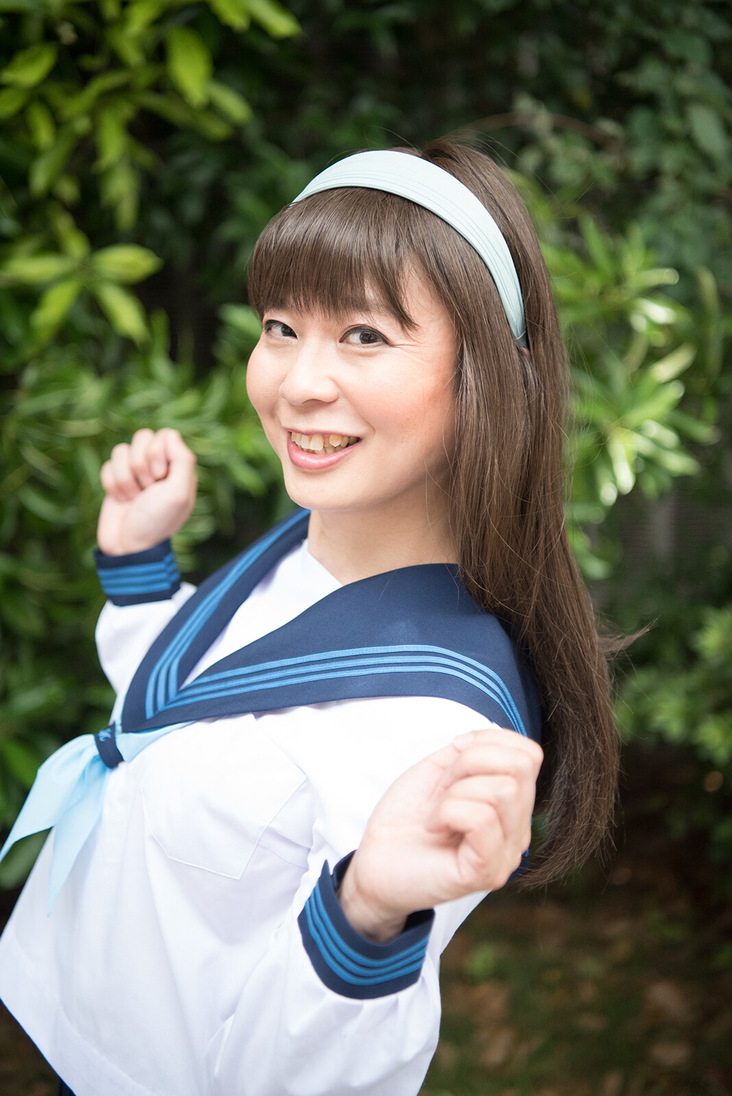 セーラー服の襟が良く見えるように、後ろに整えま~す。