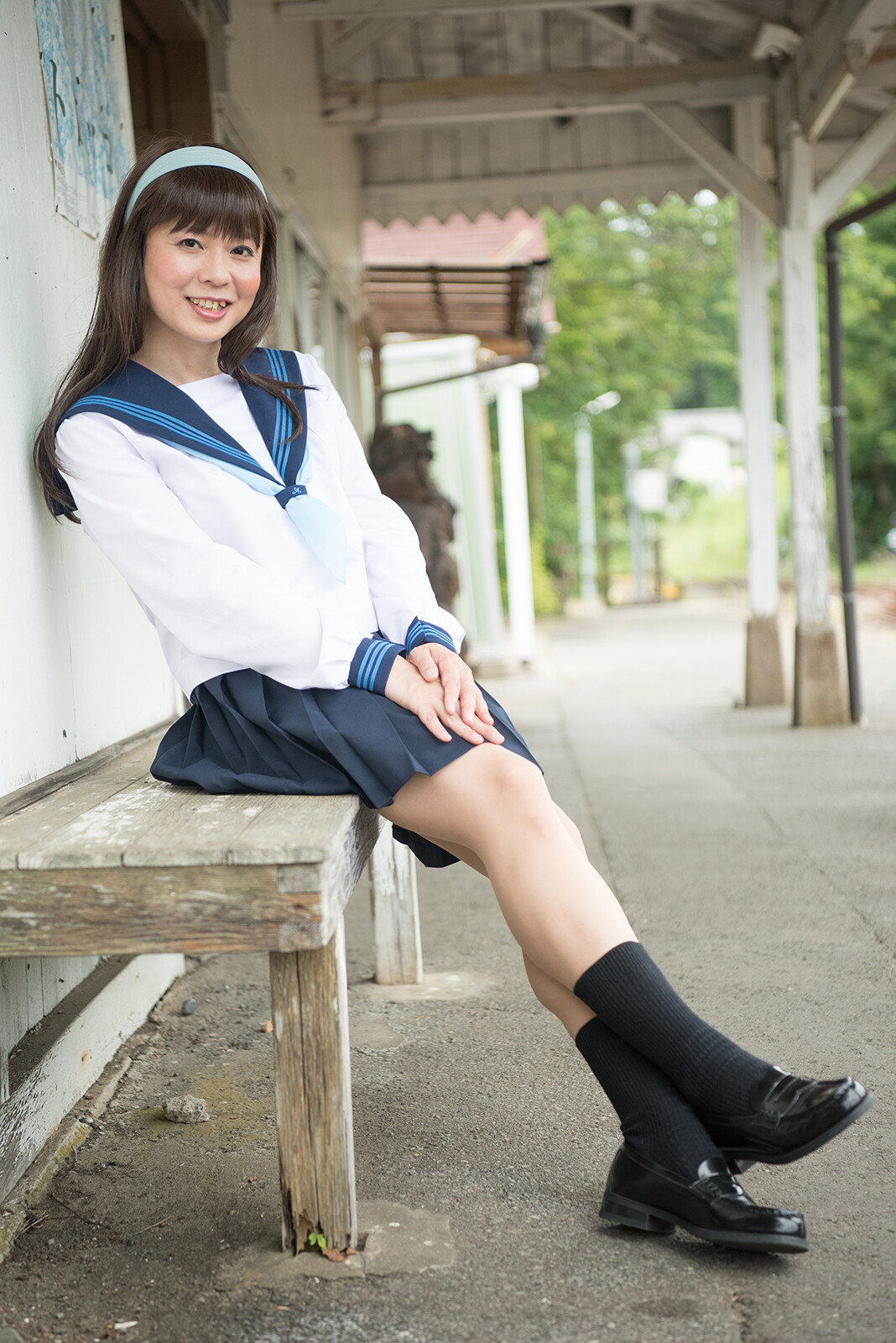 スカートが短いので、ちょっとセクシーな感じになっちゃいましたね。