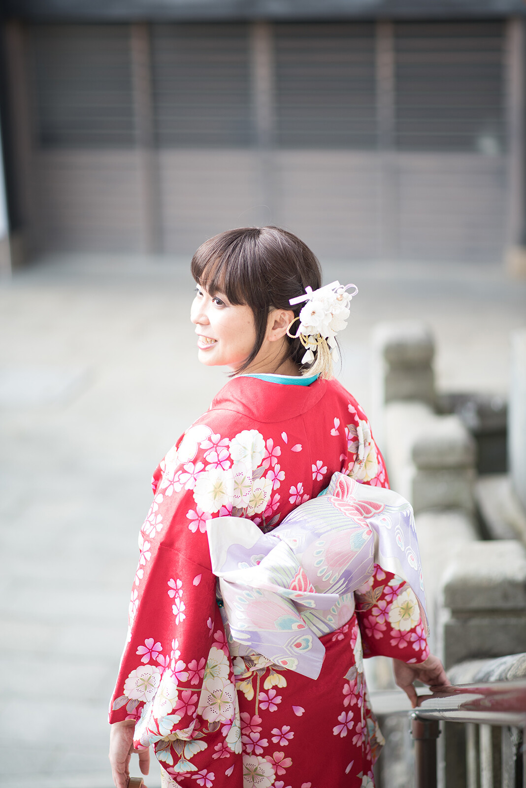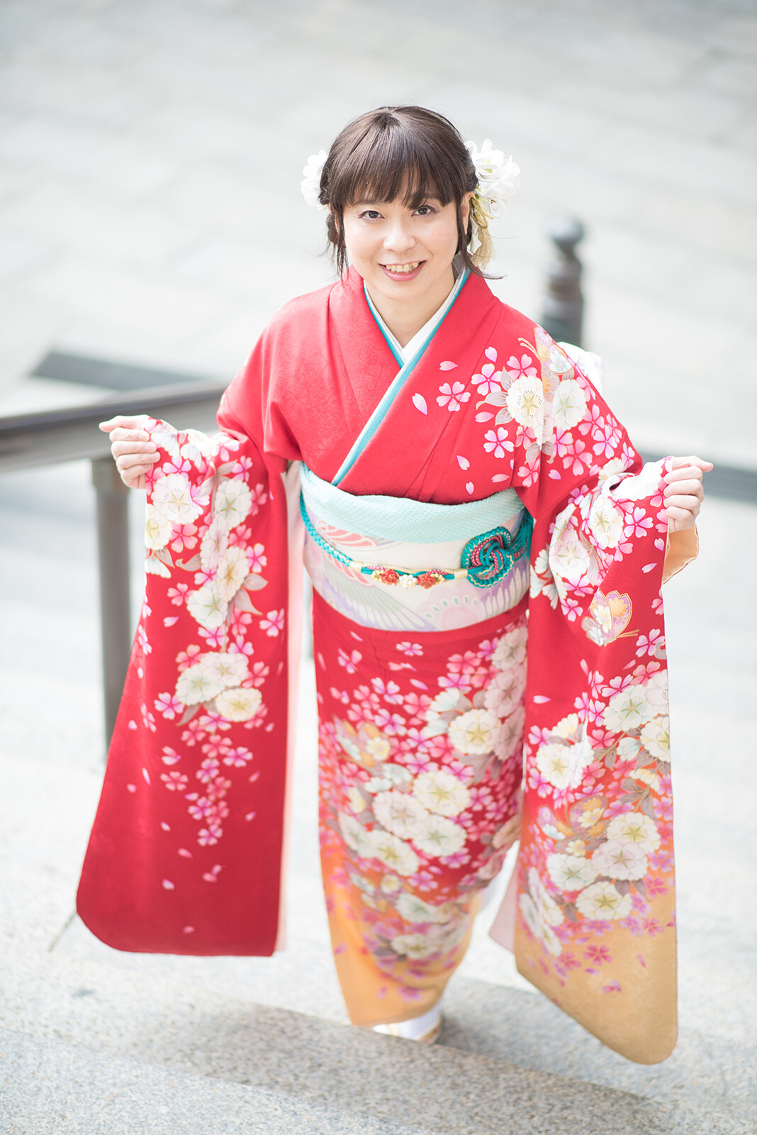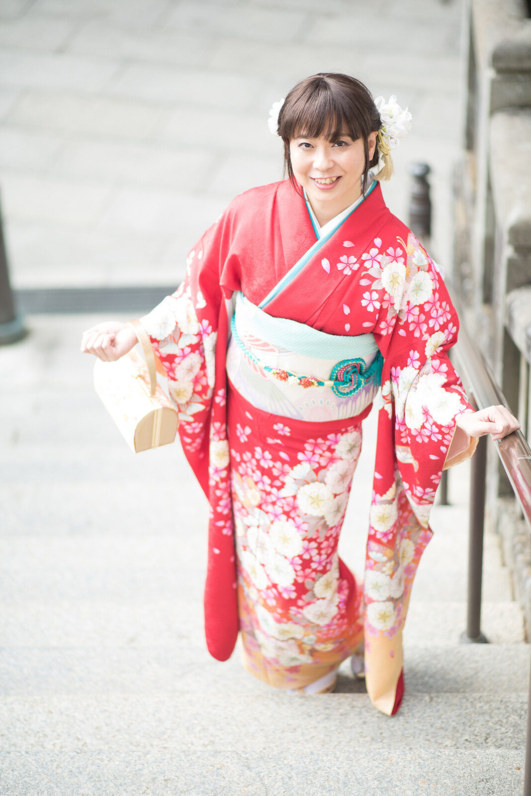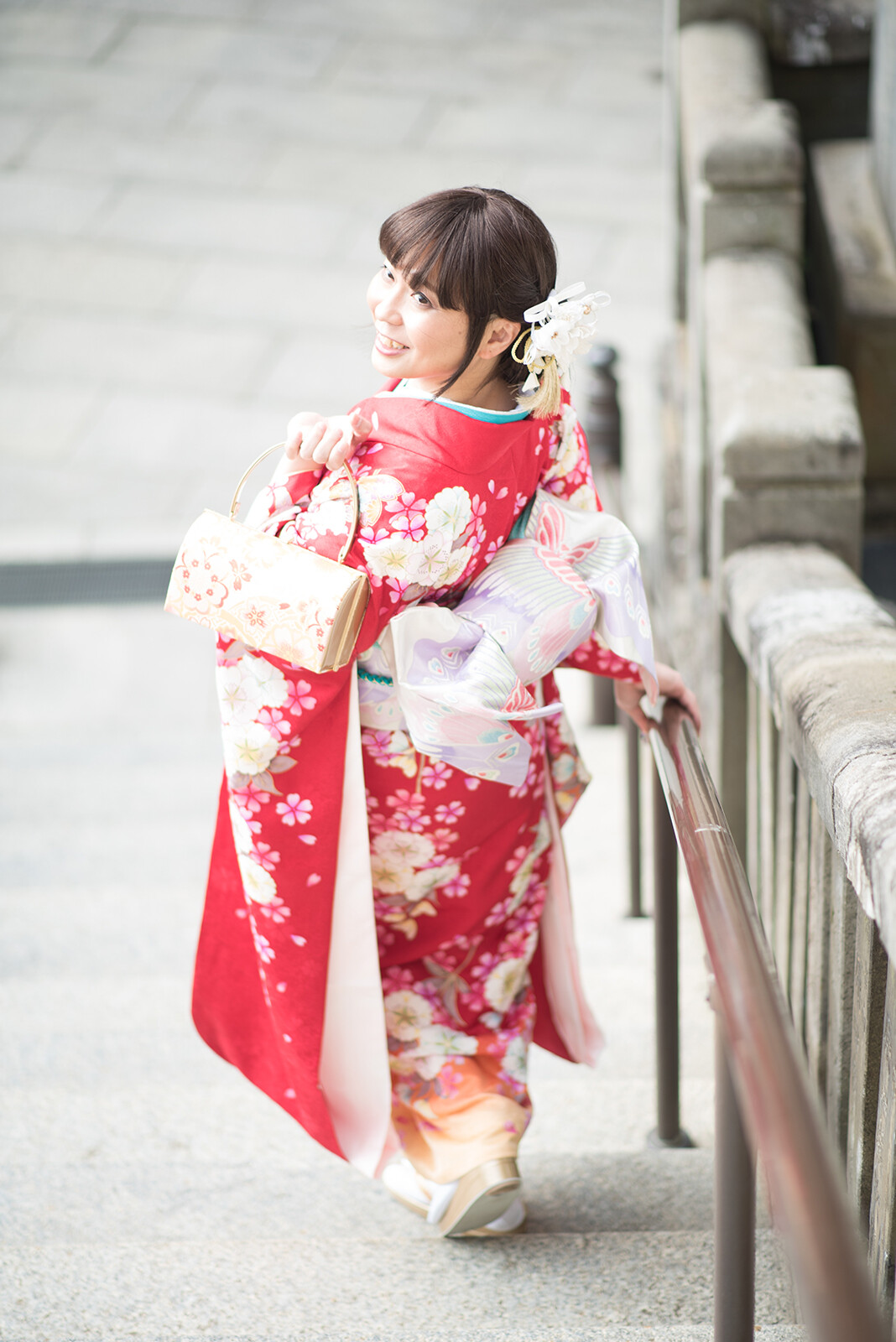 階段を上る時は、このように着物の裾を少し持ち上げます。