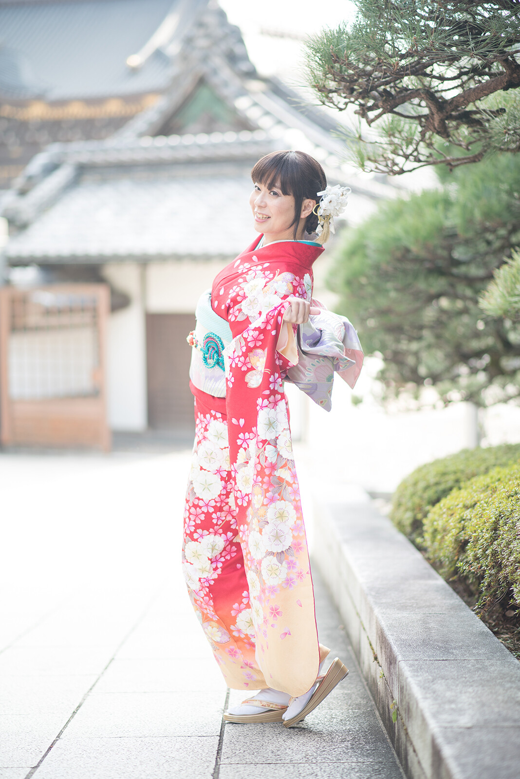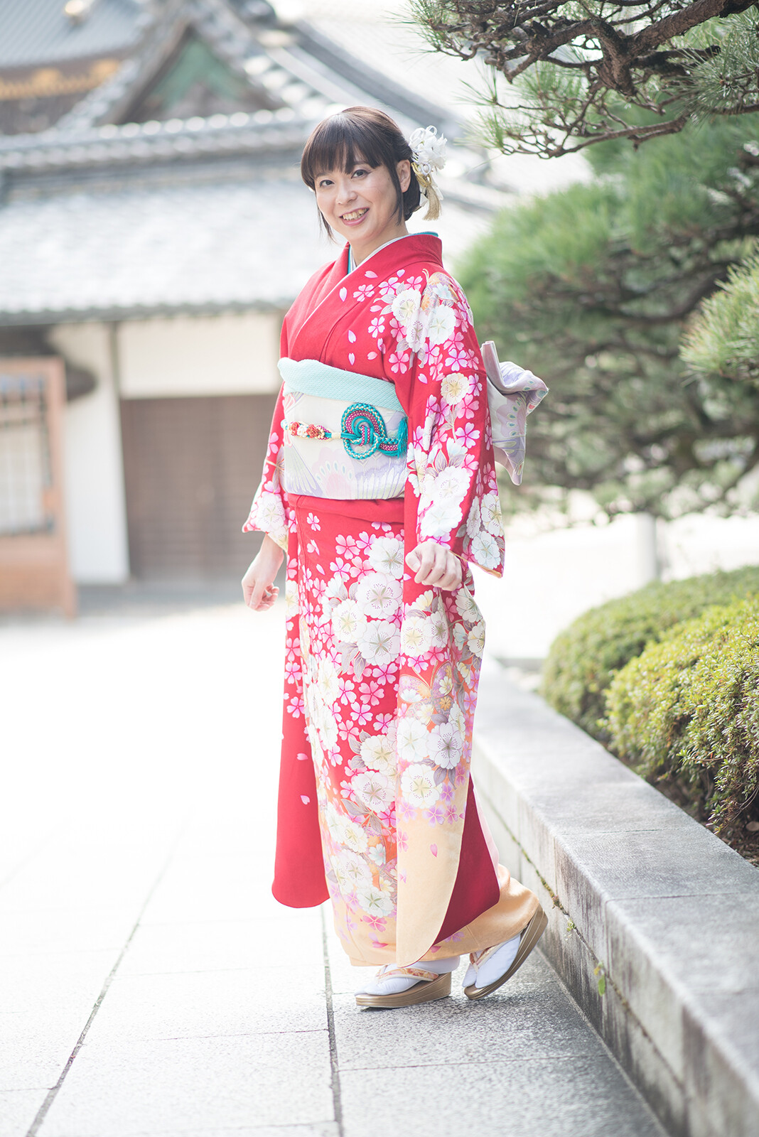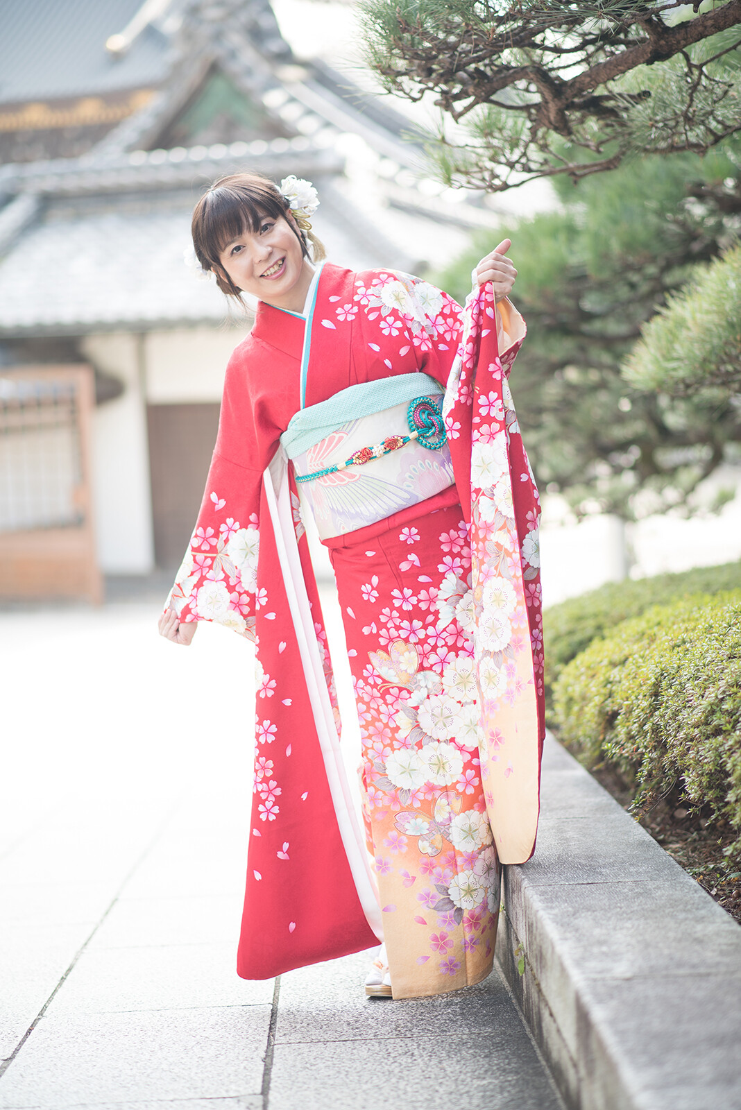 階段を上る時は、このように着物の裾を少し持ち上げます。