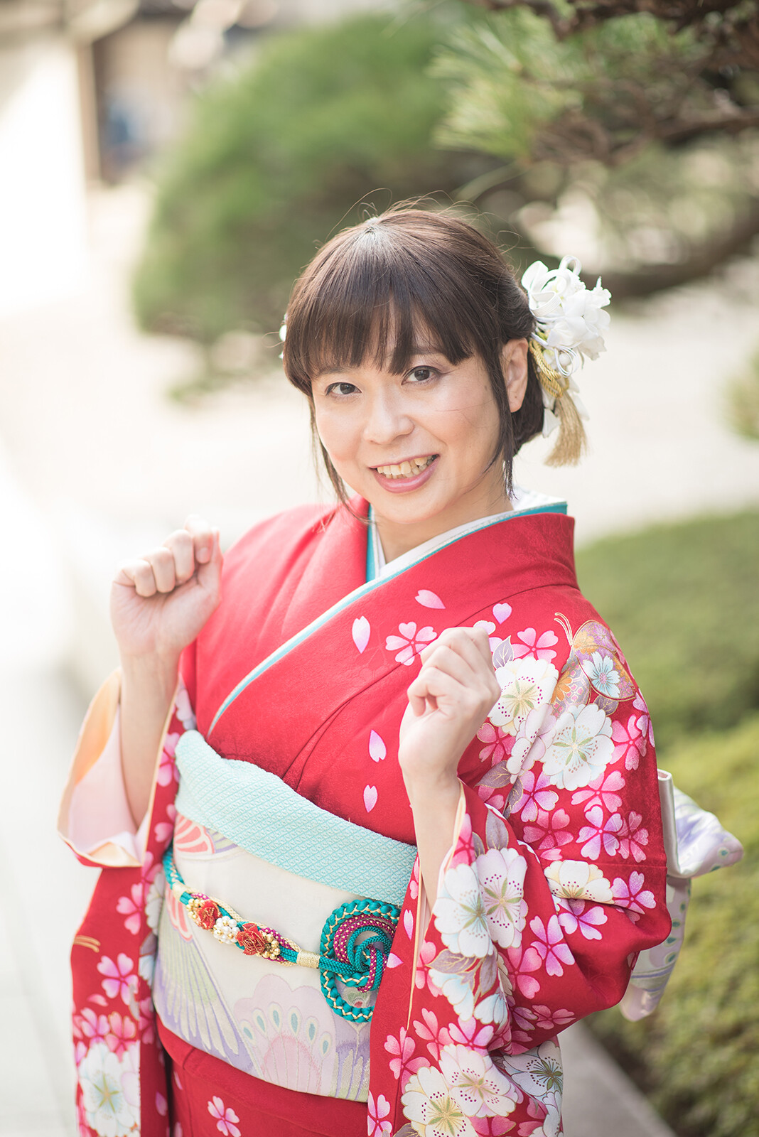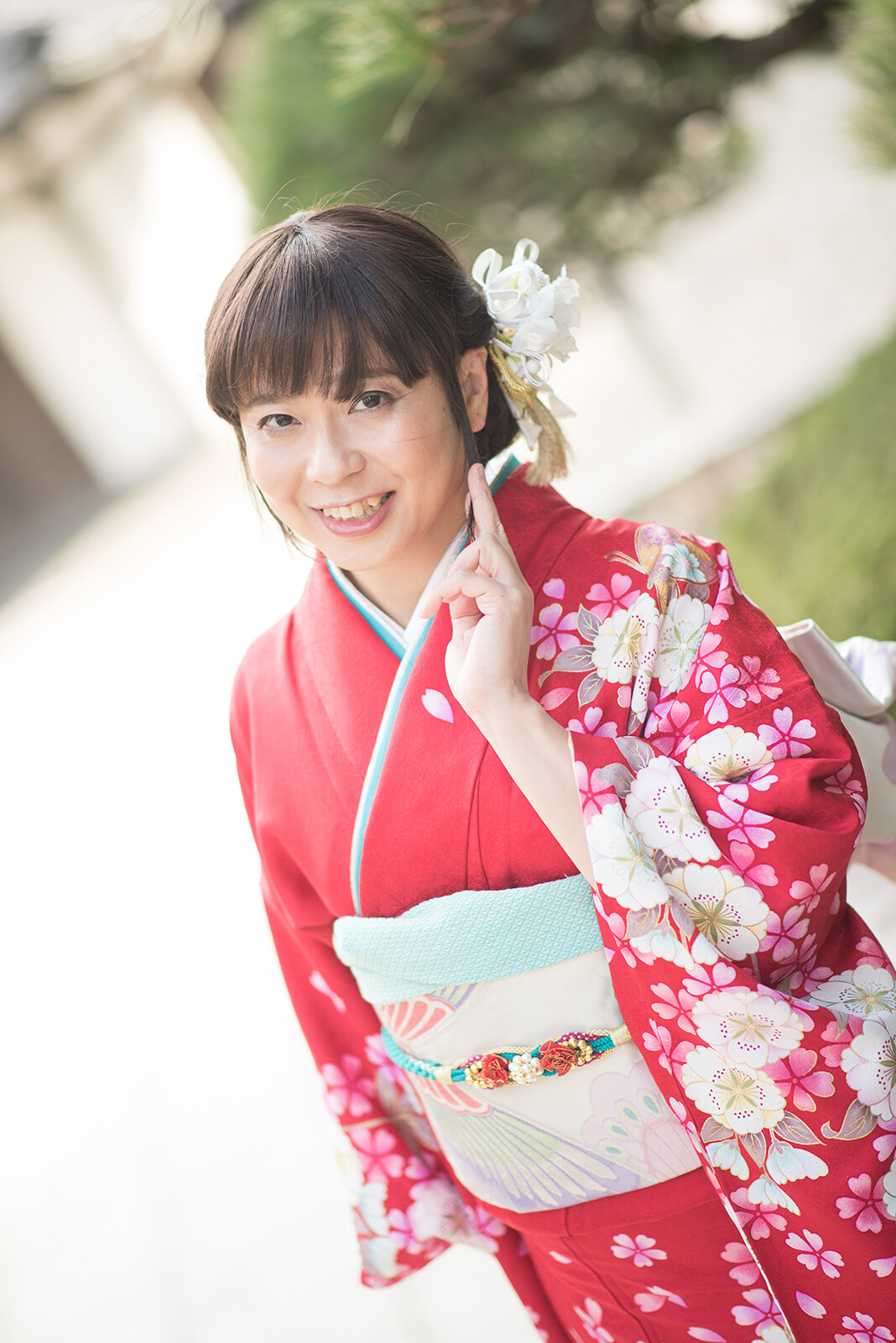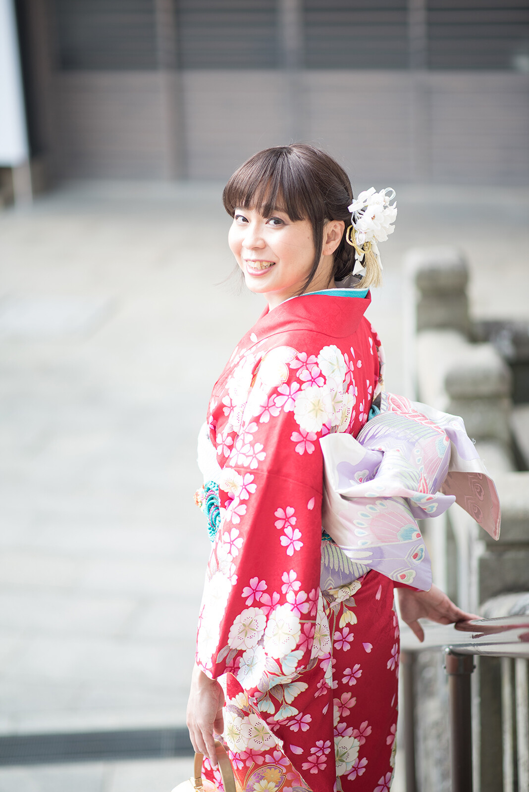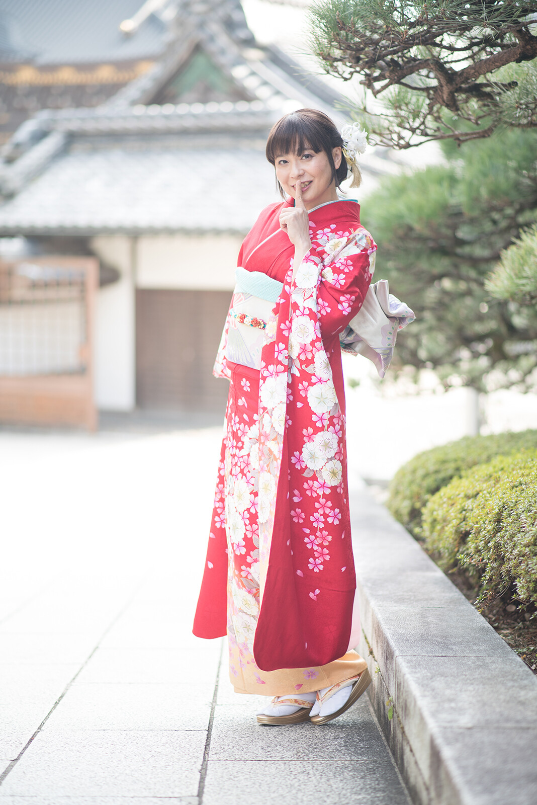 階段を上る時は、このように着物の裾を少し持ち上げます。