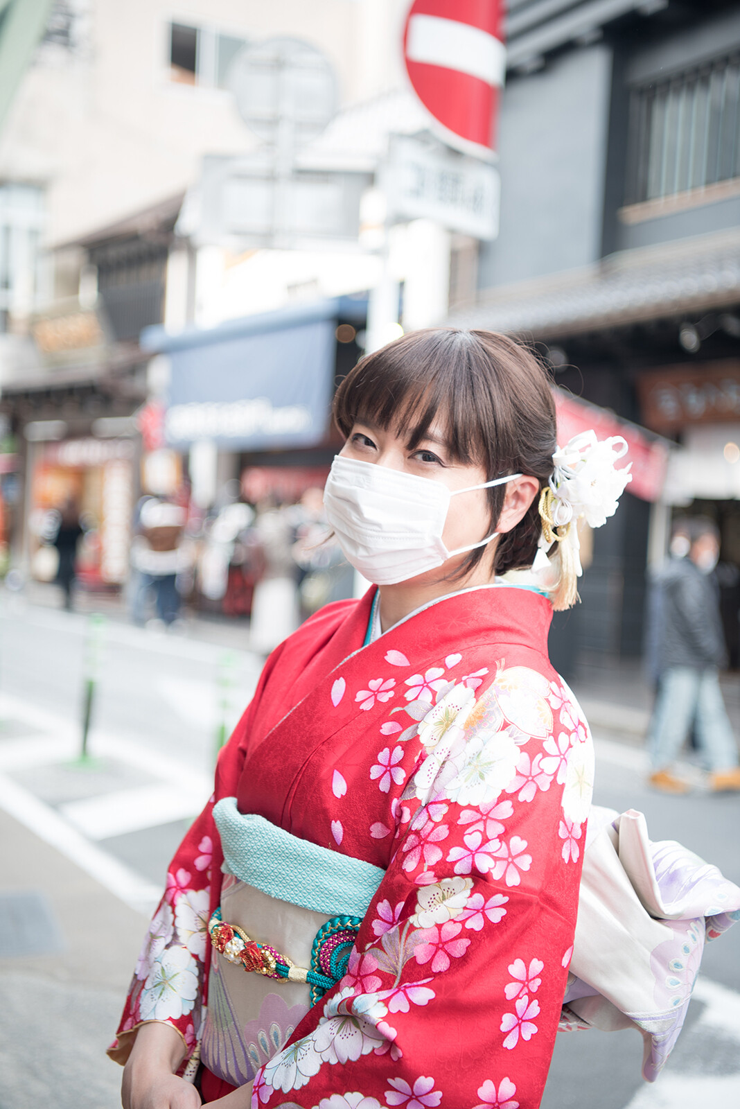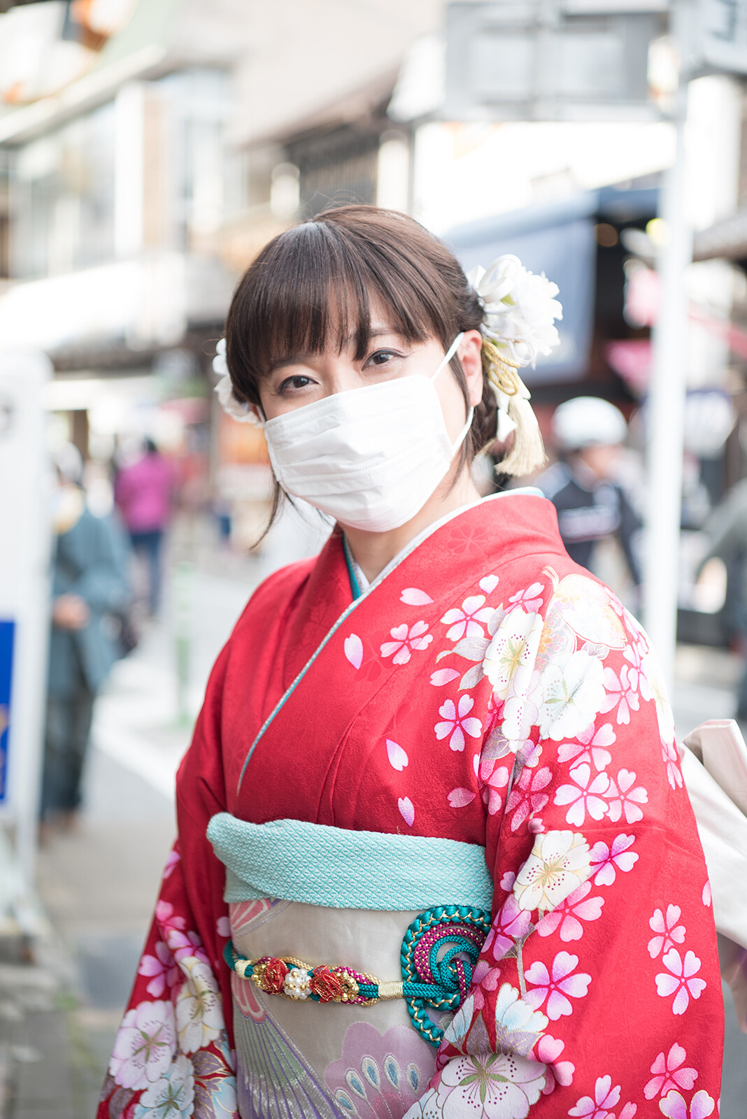 マスク姿の写真は、参道を歩き成田山新勝寺へ向かっている姿です
