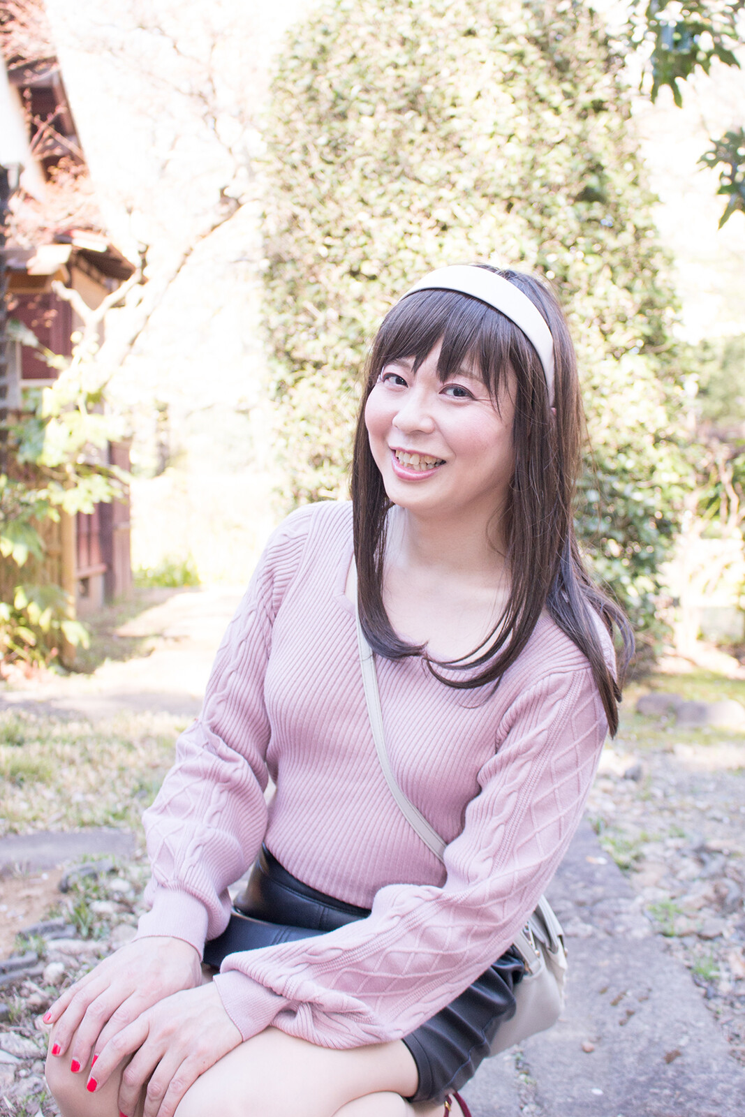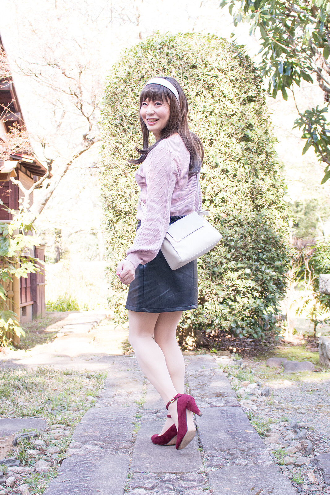 茶室前に移動してからは、まずバッグを肩に掛けて撮りました。