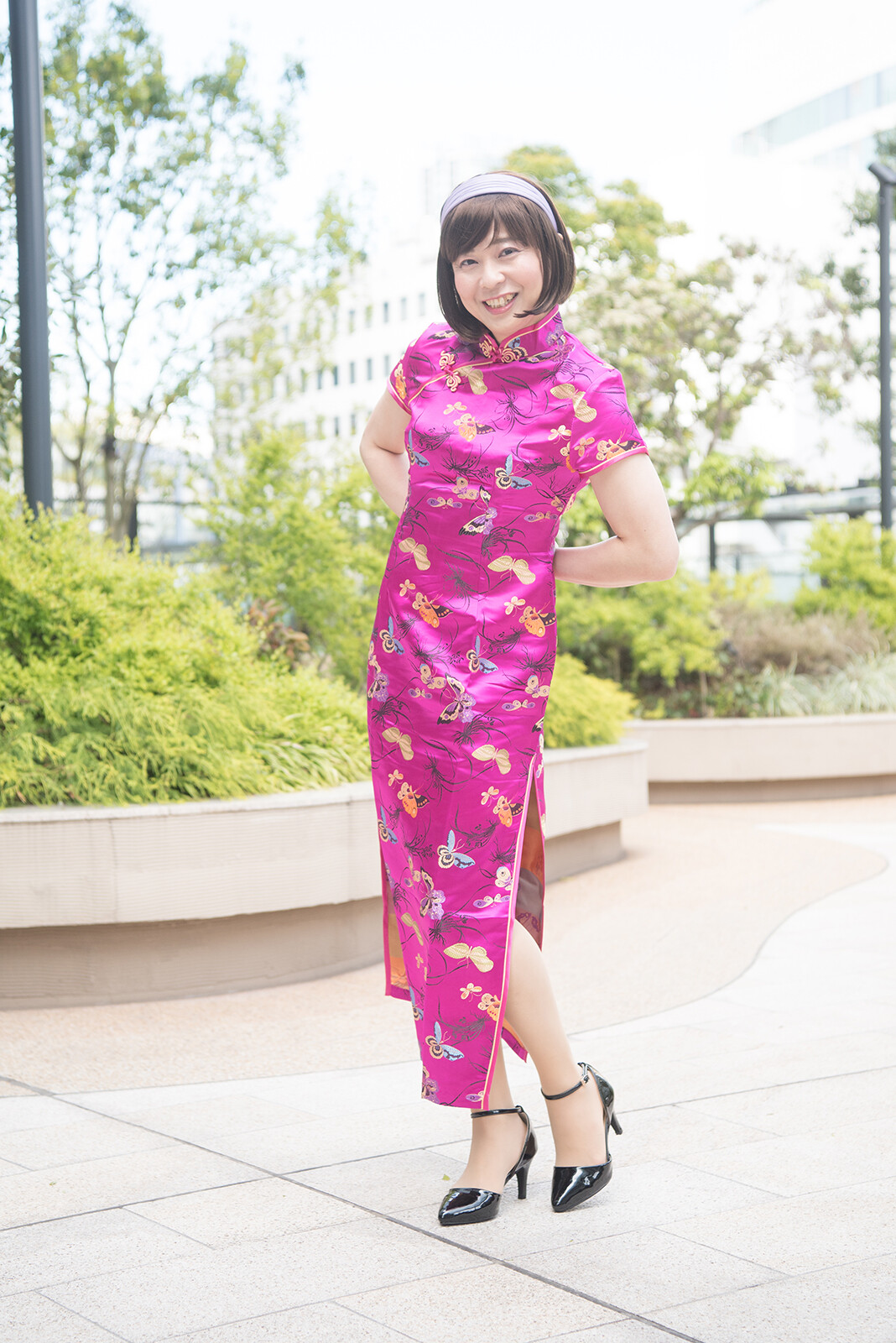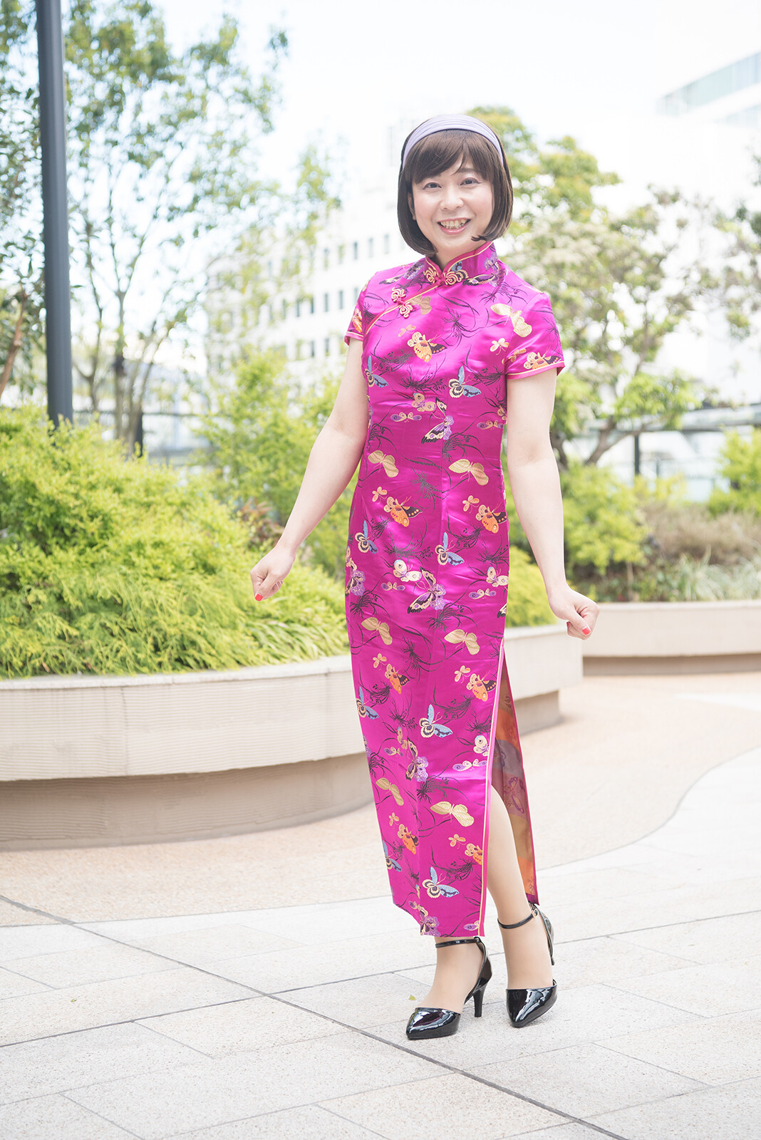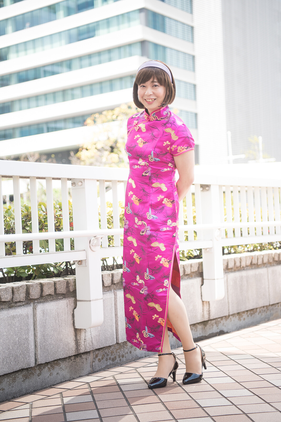 風が吹いて、ドレスの前面がフワッと煽られました。