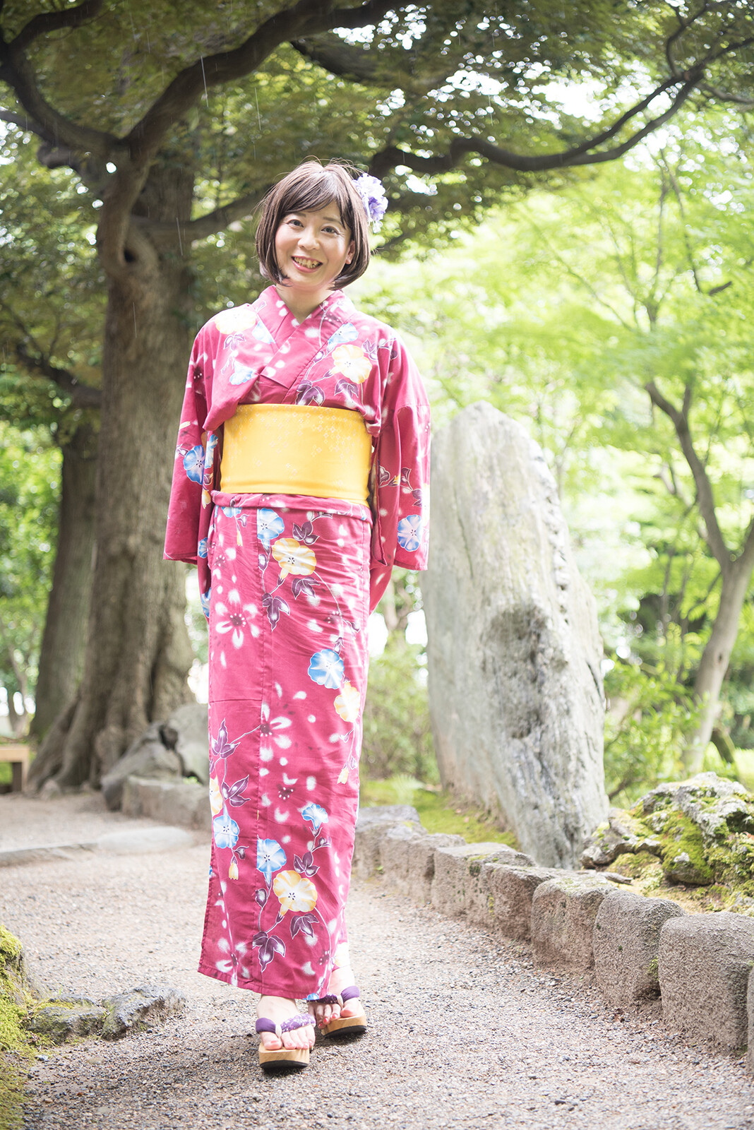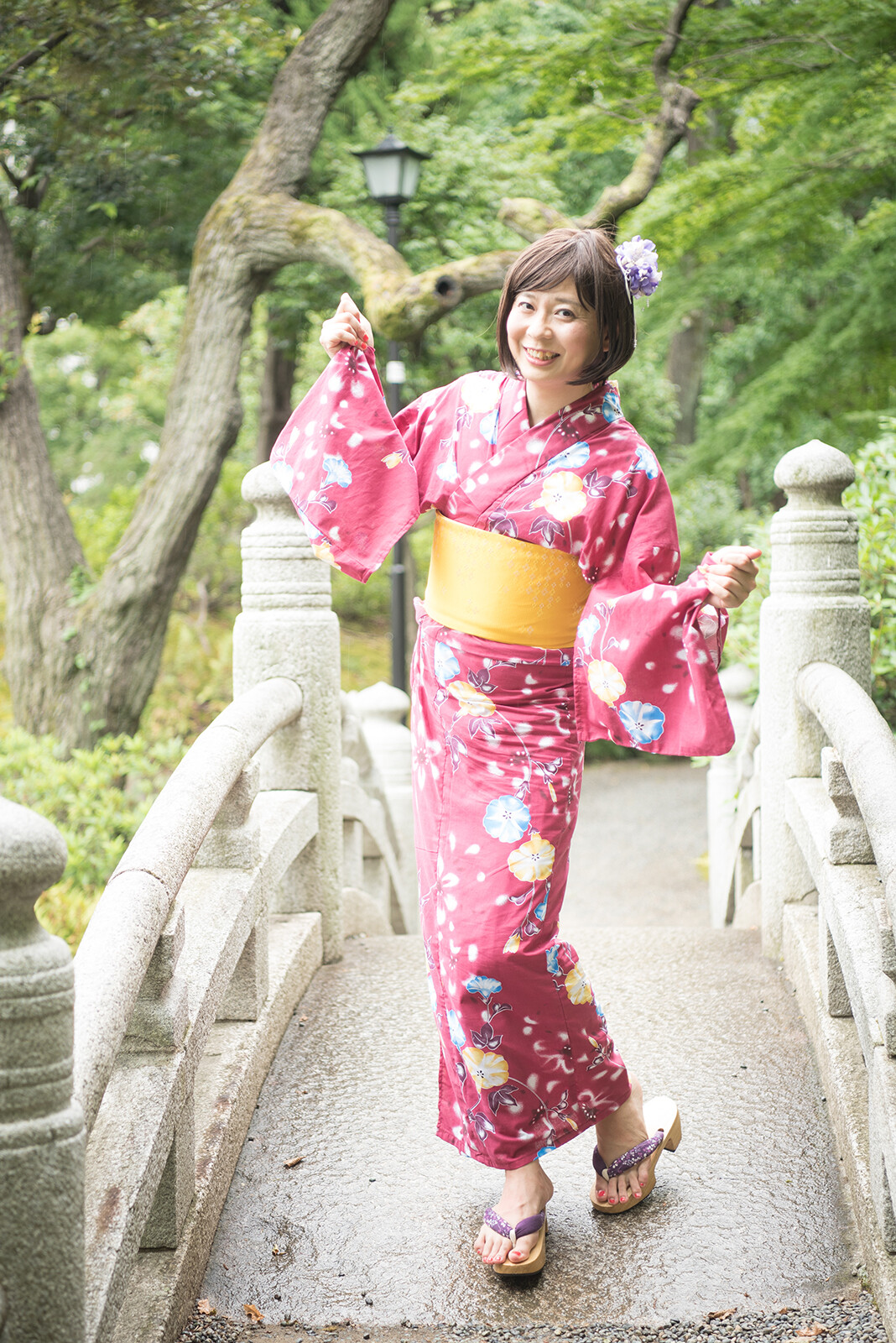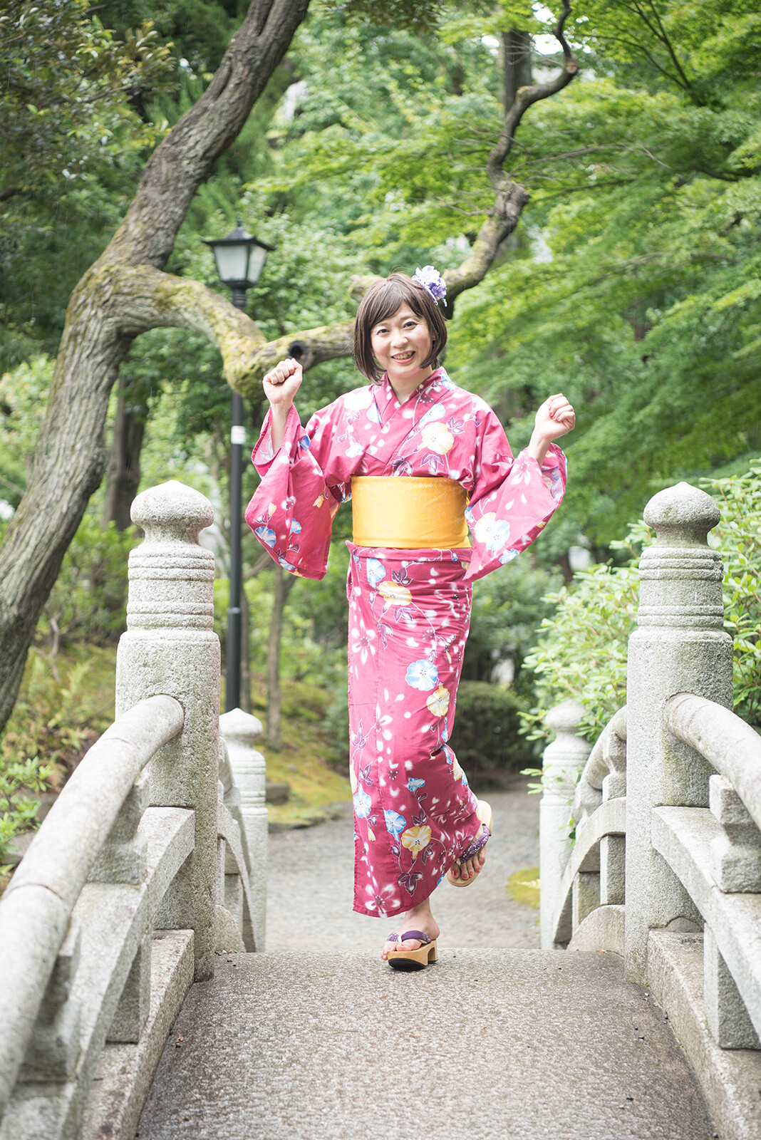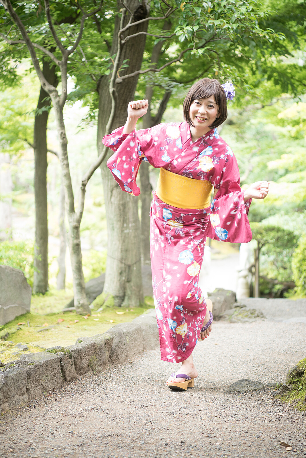 浴衣姿で走ったら危ないですよ(写真ではポーズだけです)