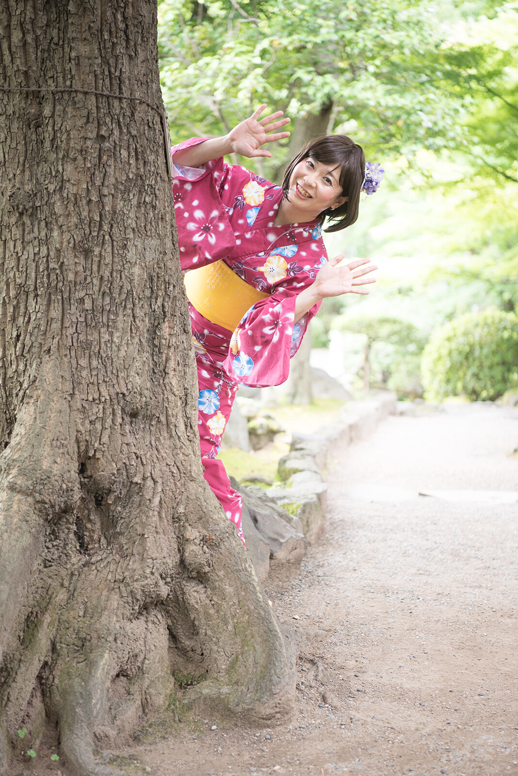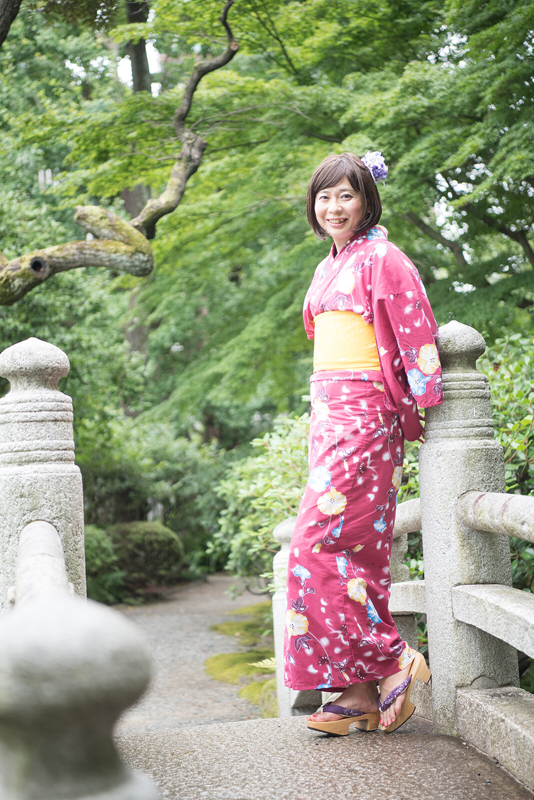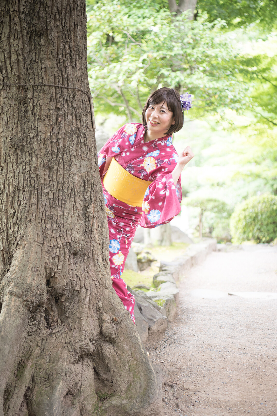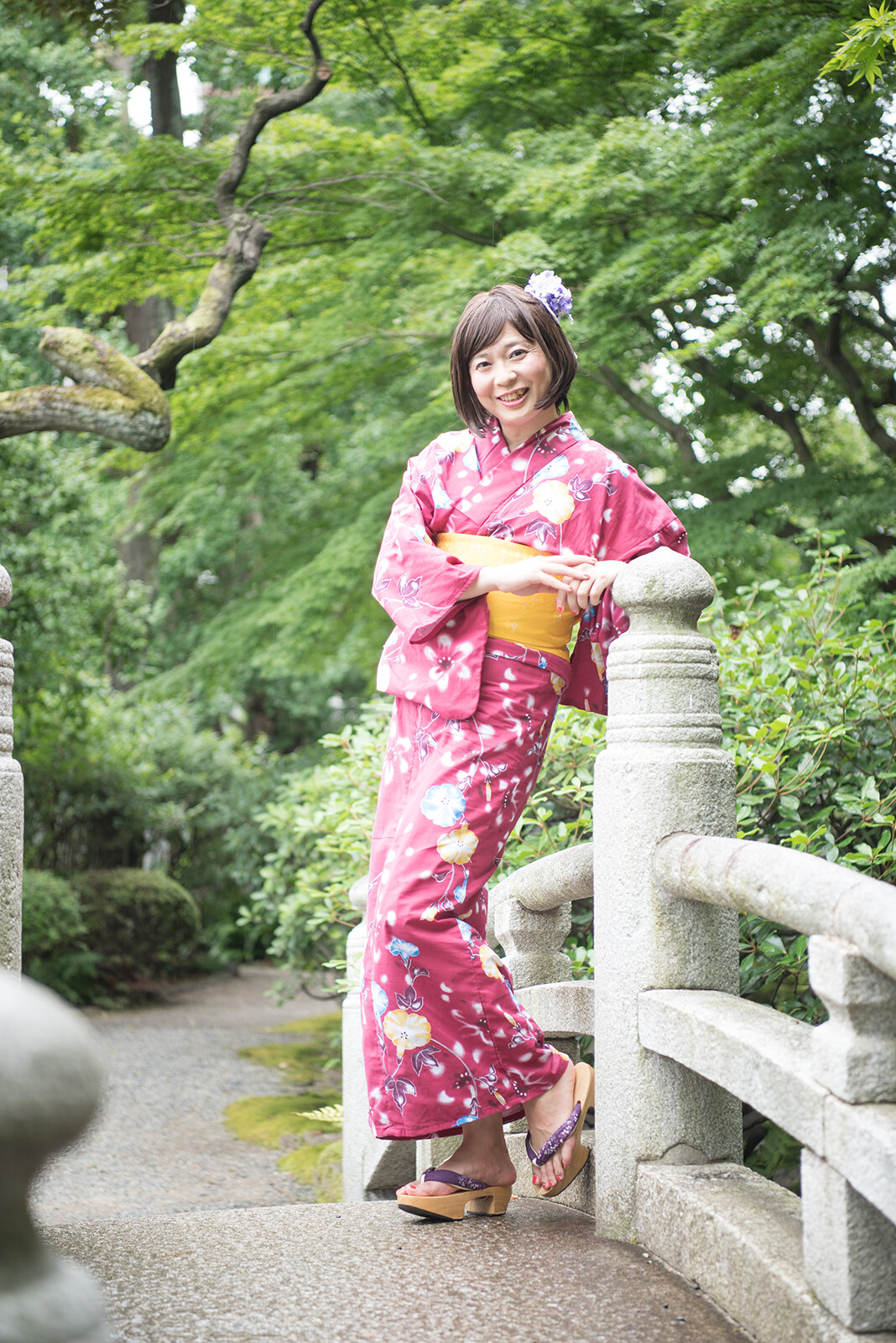 浴衣姿で走ったら危ないですよ(写真ではポーズだけです)