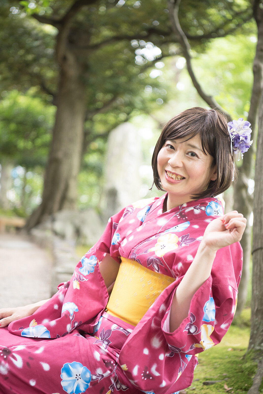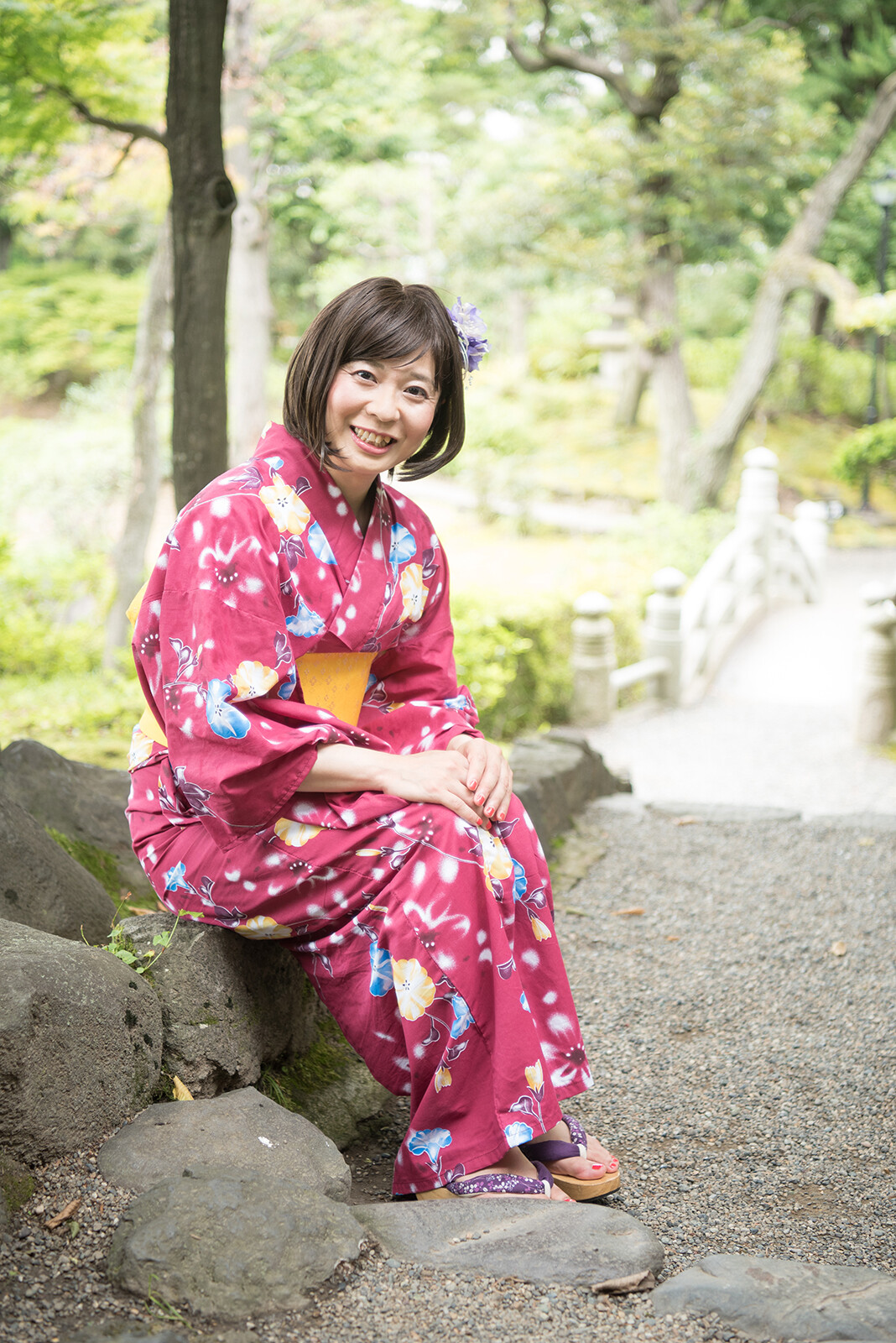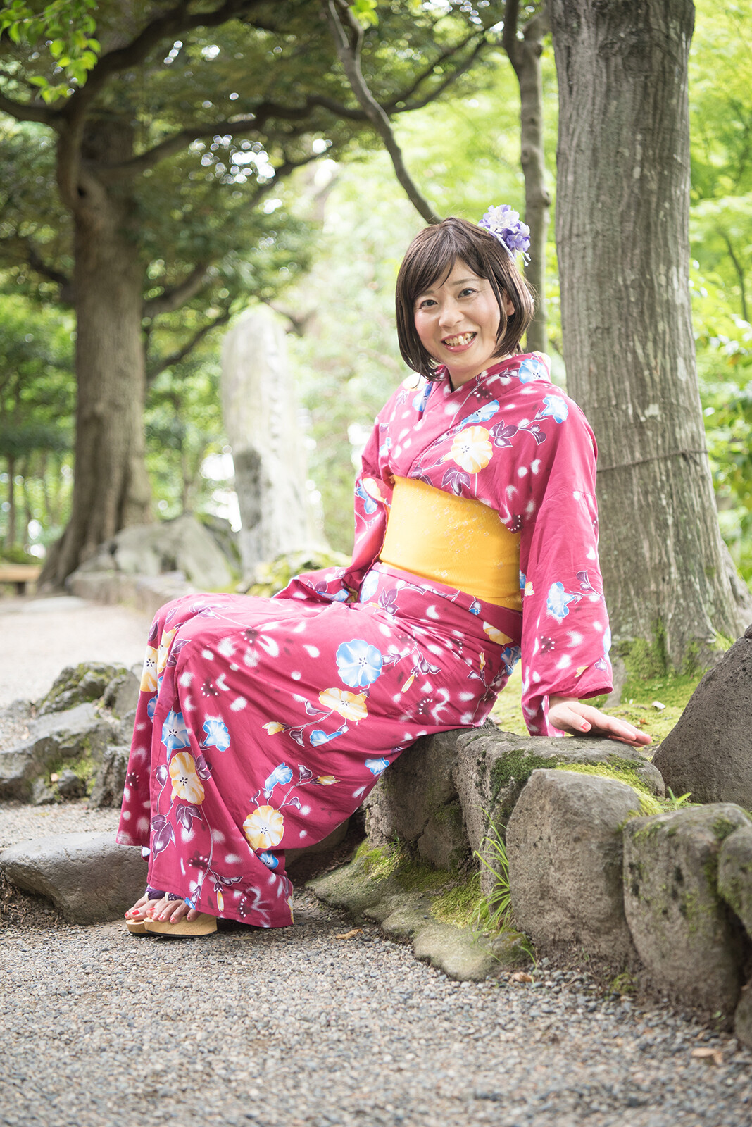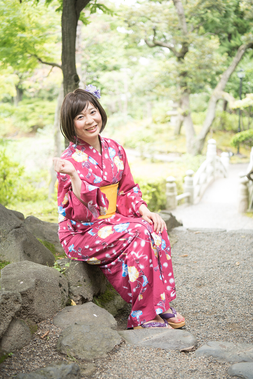 浴衣姿で走ったら危ないですよ(写真ではポーズだけです)