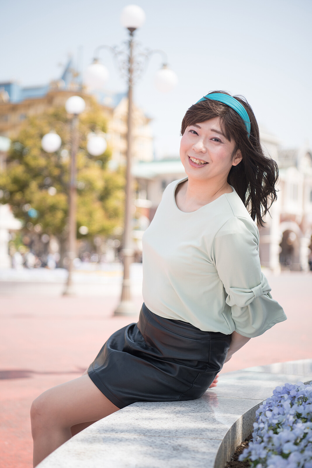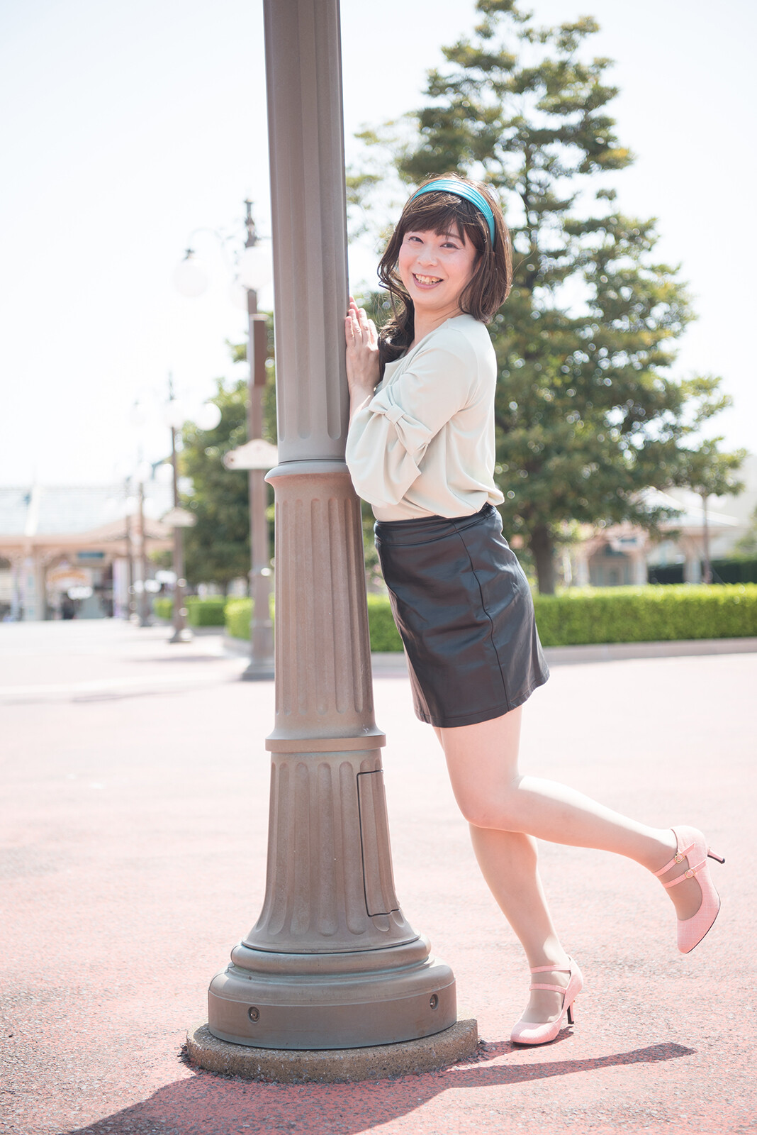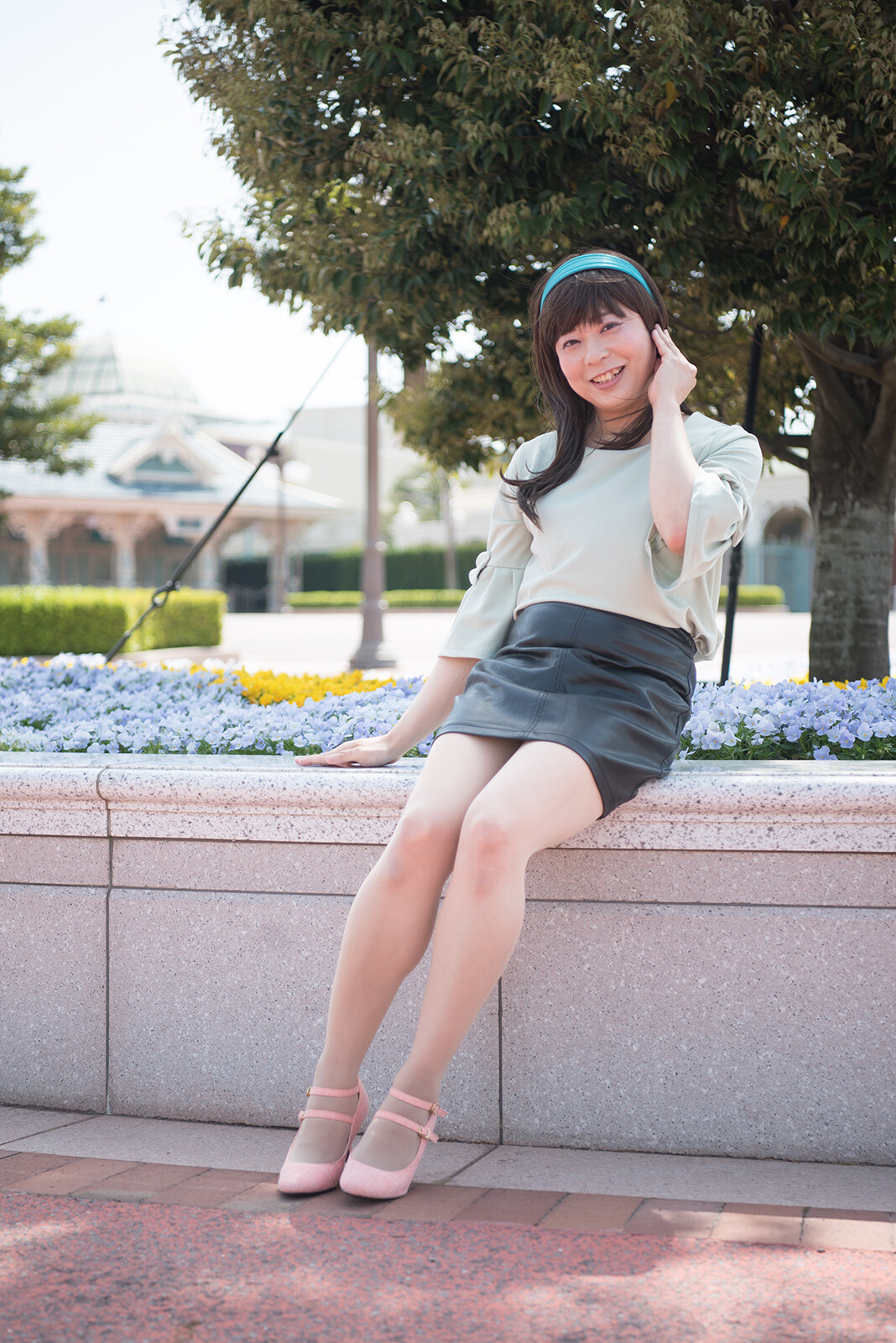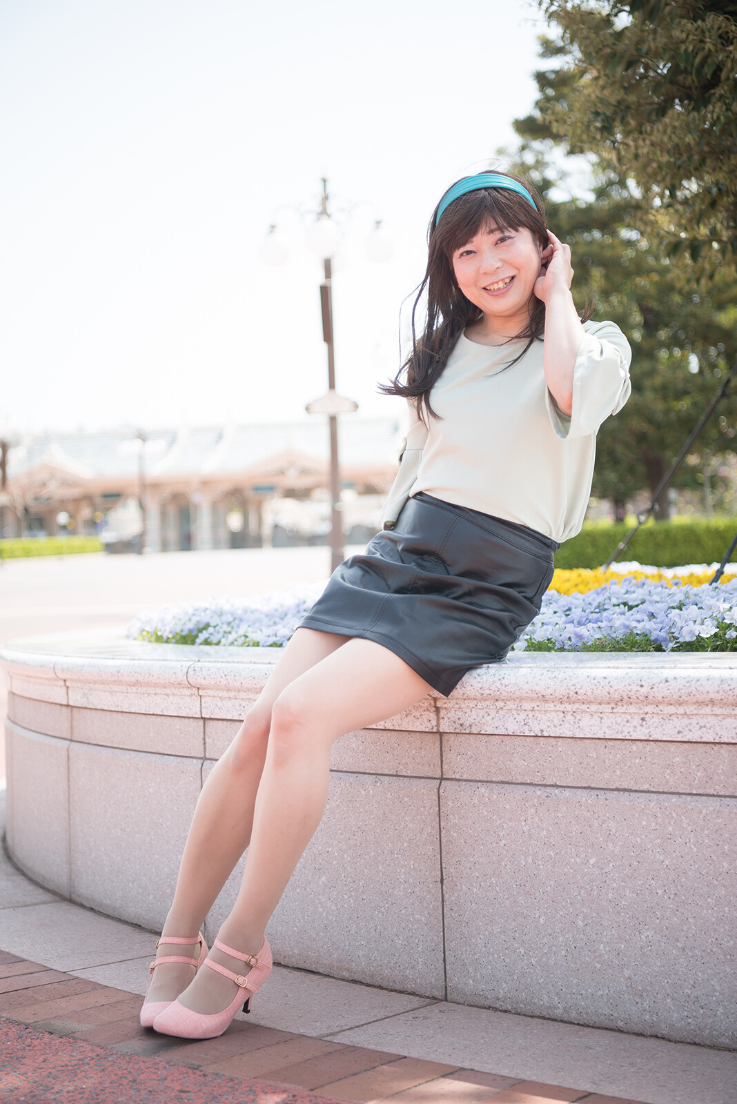 風が強いですが、タイトスカートなので捲れる心配は無いですね。