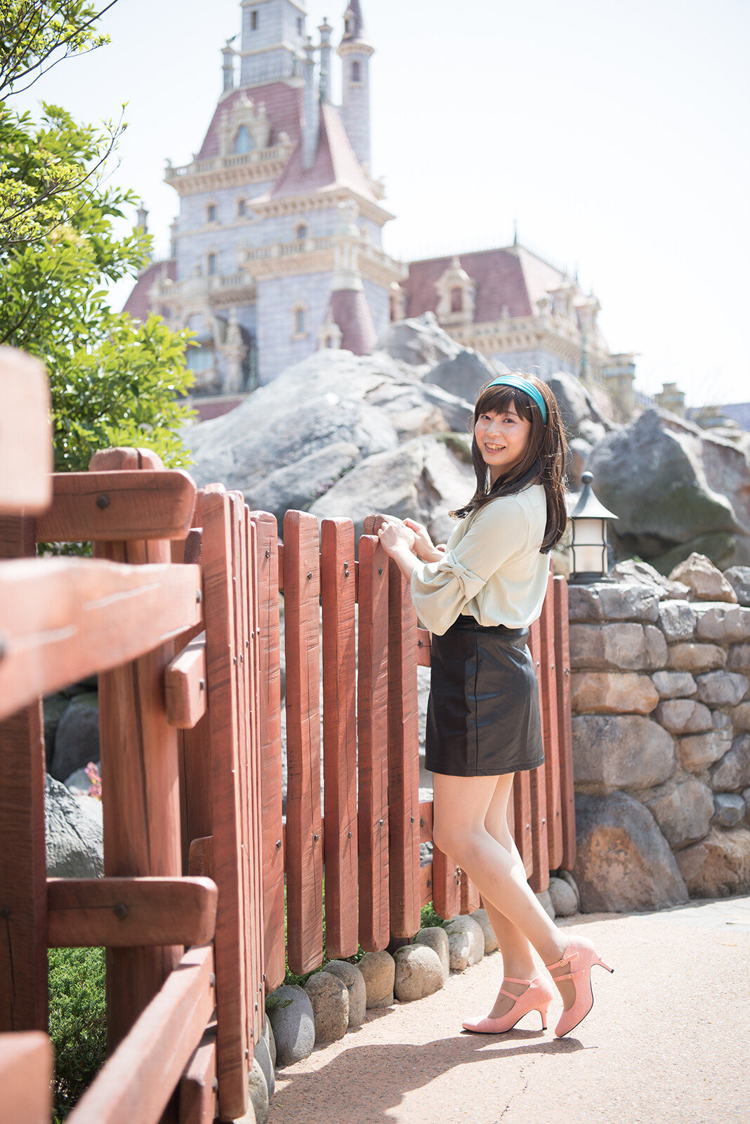 後ろに見えるお城は、ファンタジーランドにある"美女と野獣 魔法のものがたり"ですよ