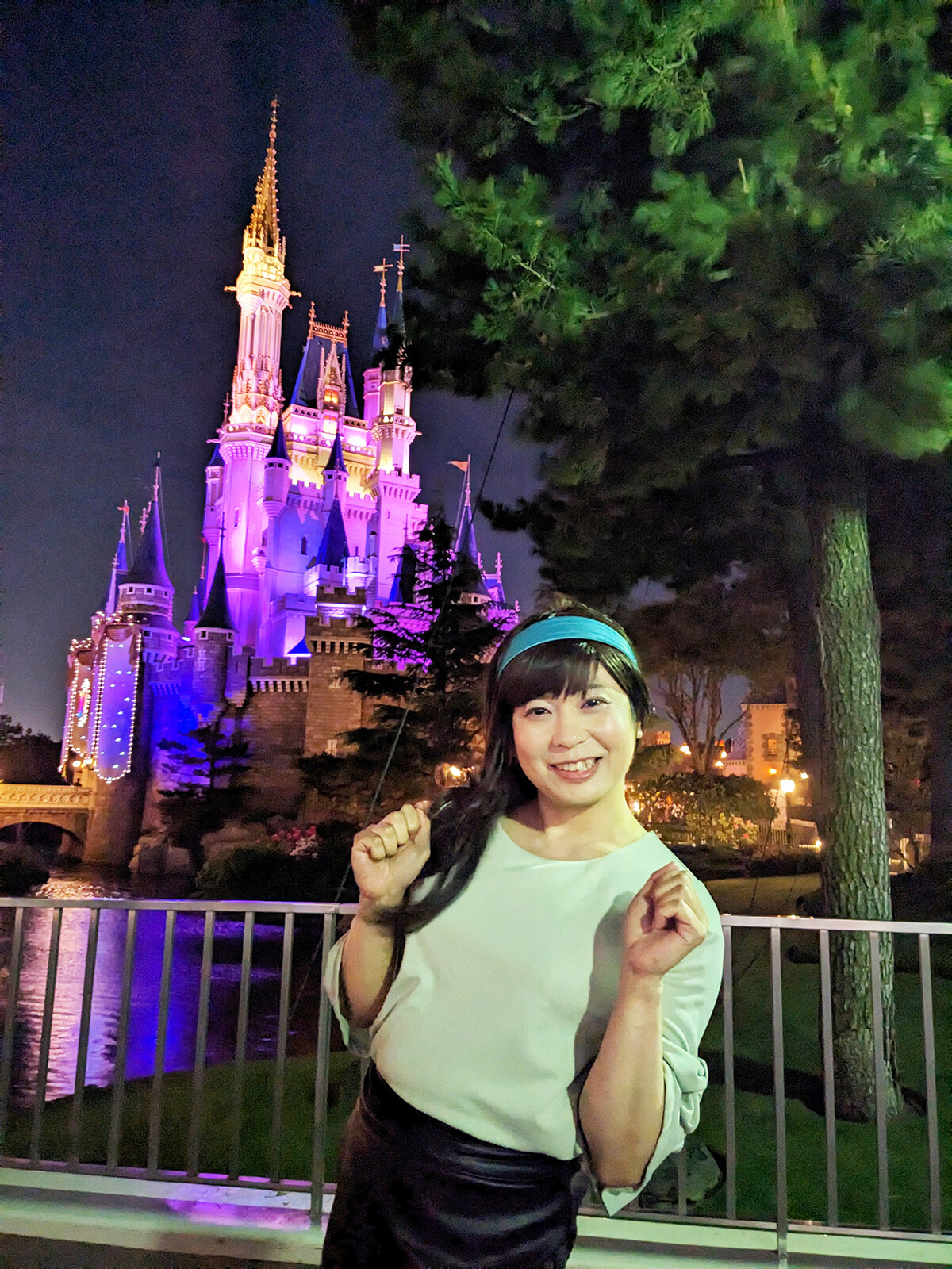 夜のシンデレラ城もライトアップがとても綺麗ですね。