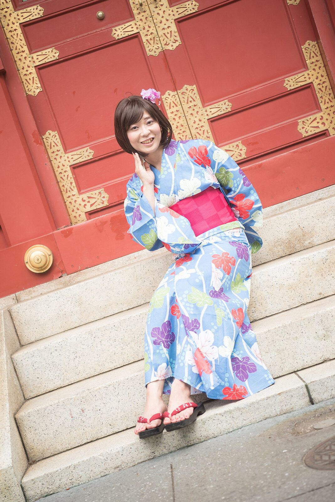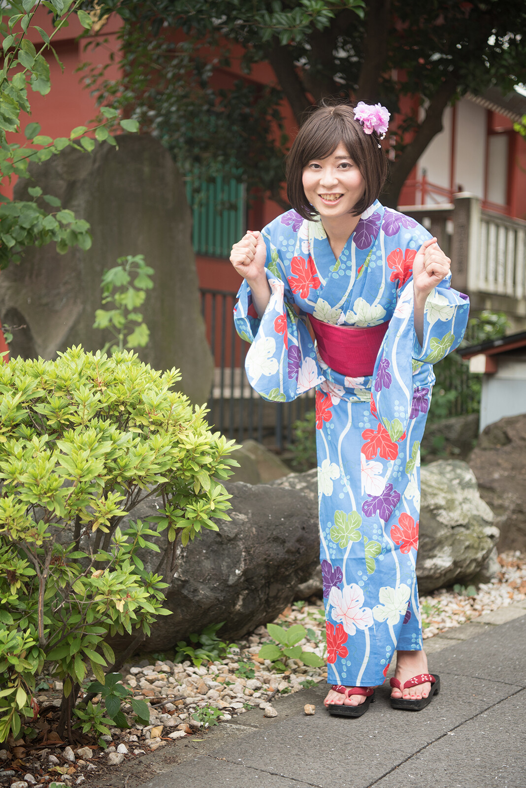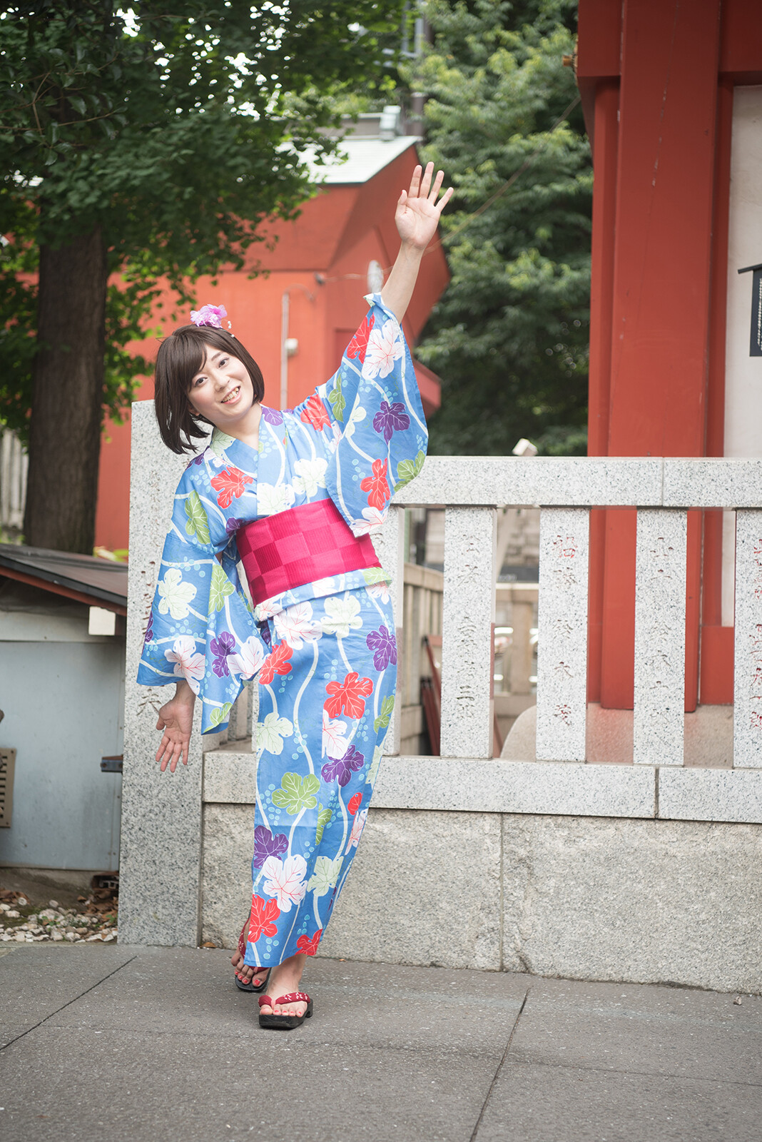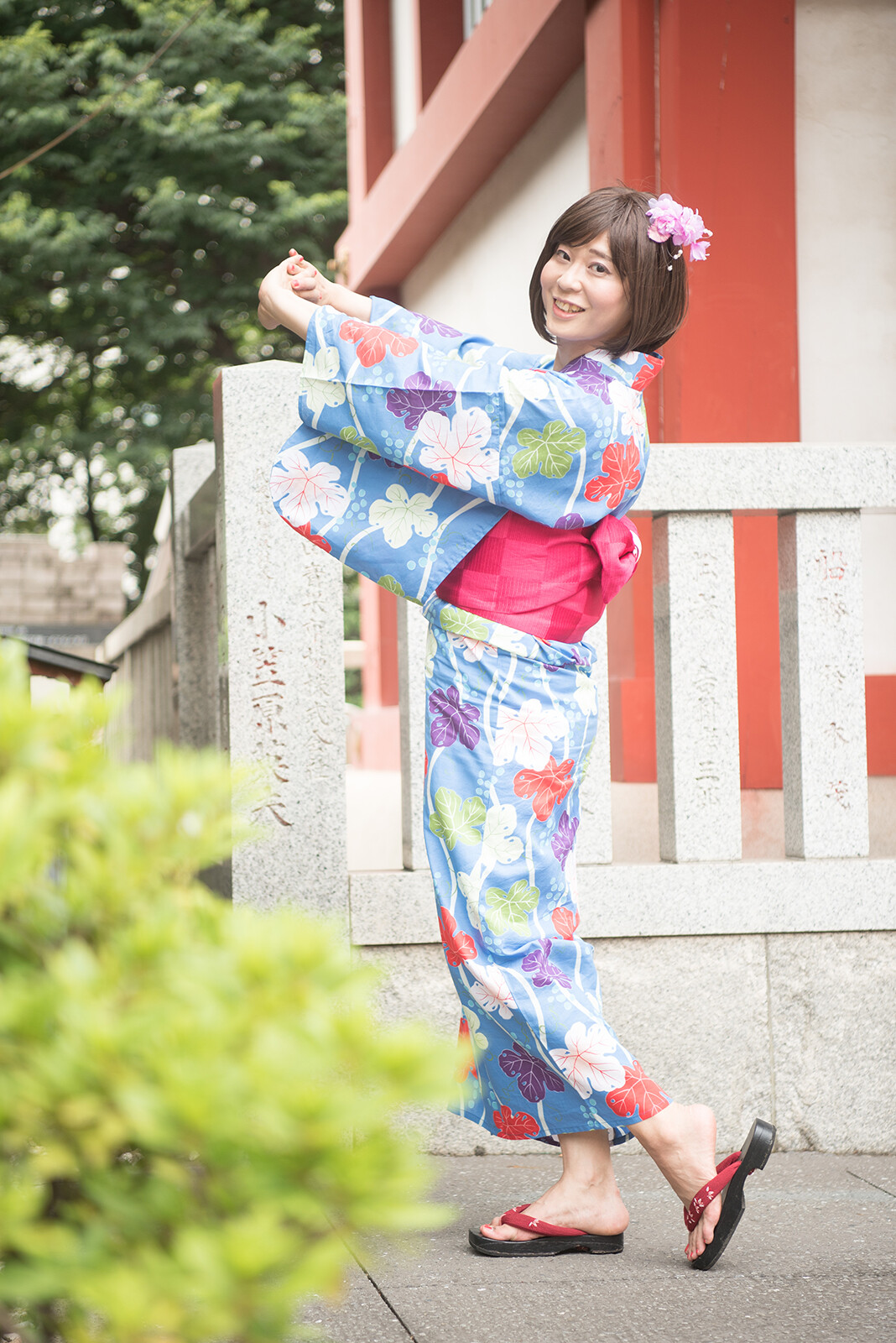 手を広げているのと浴衣の裾が乱れているのが、小走りしているかのような動きを感じますね。