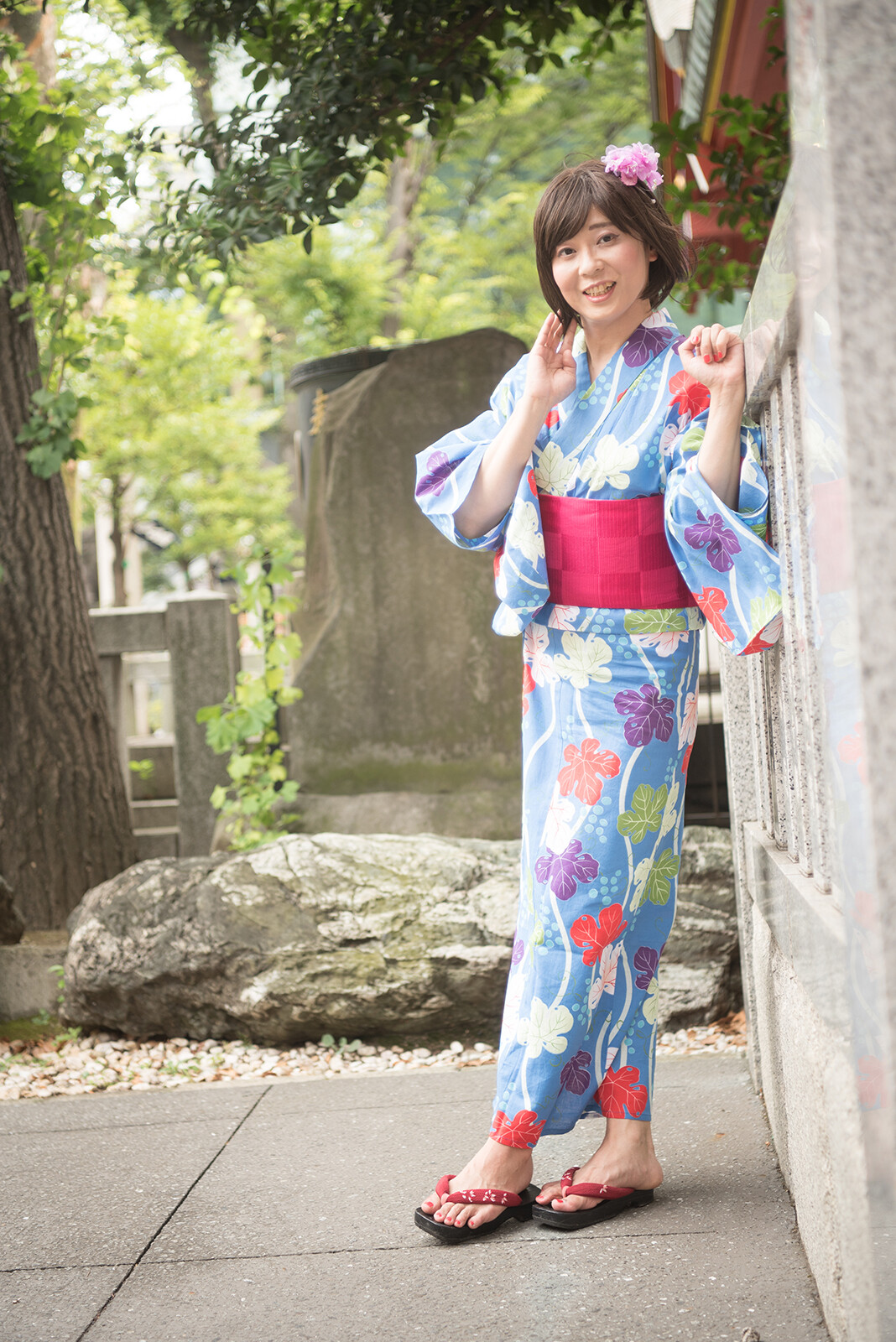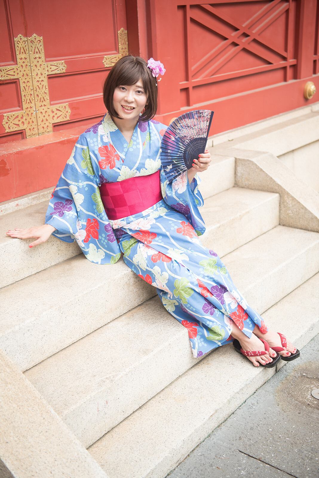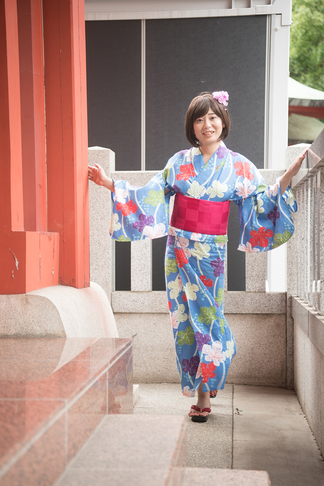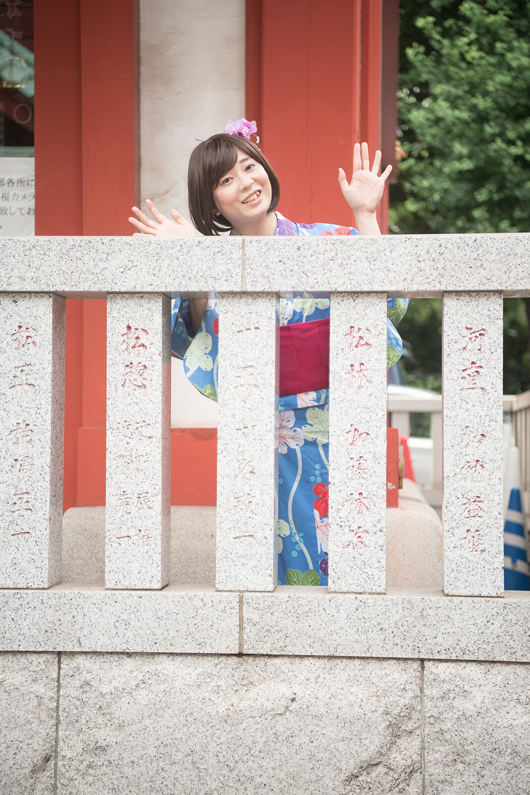 手を広げているのと浴衣の裾が乱れているのが、小走りしているかのような動きを感じますね。