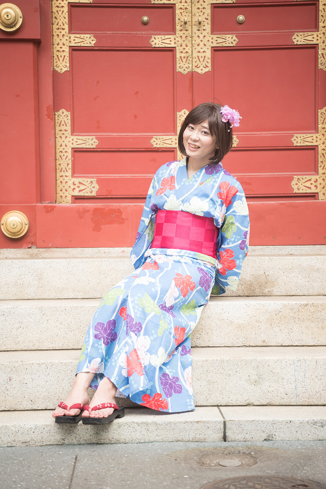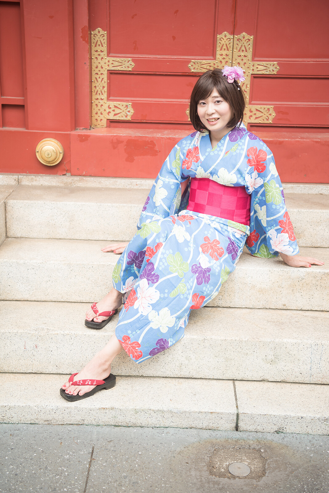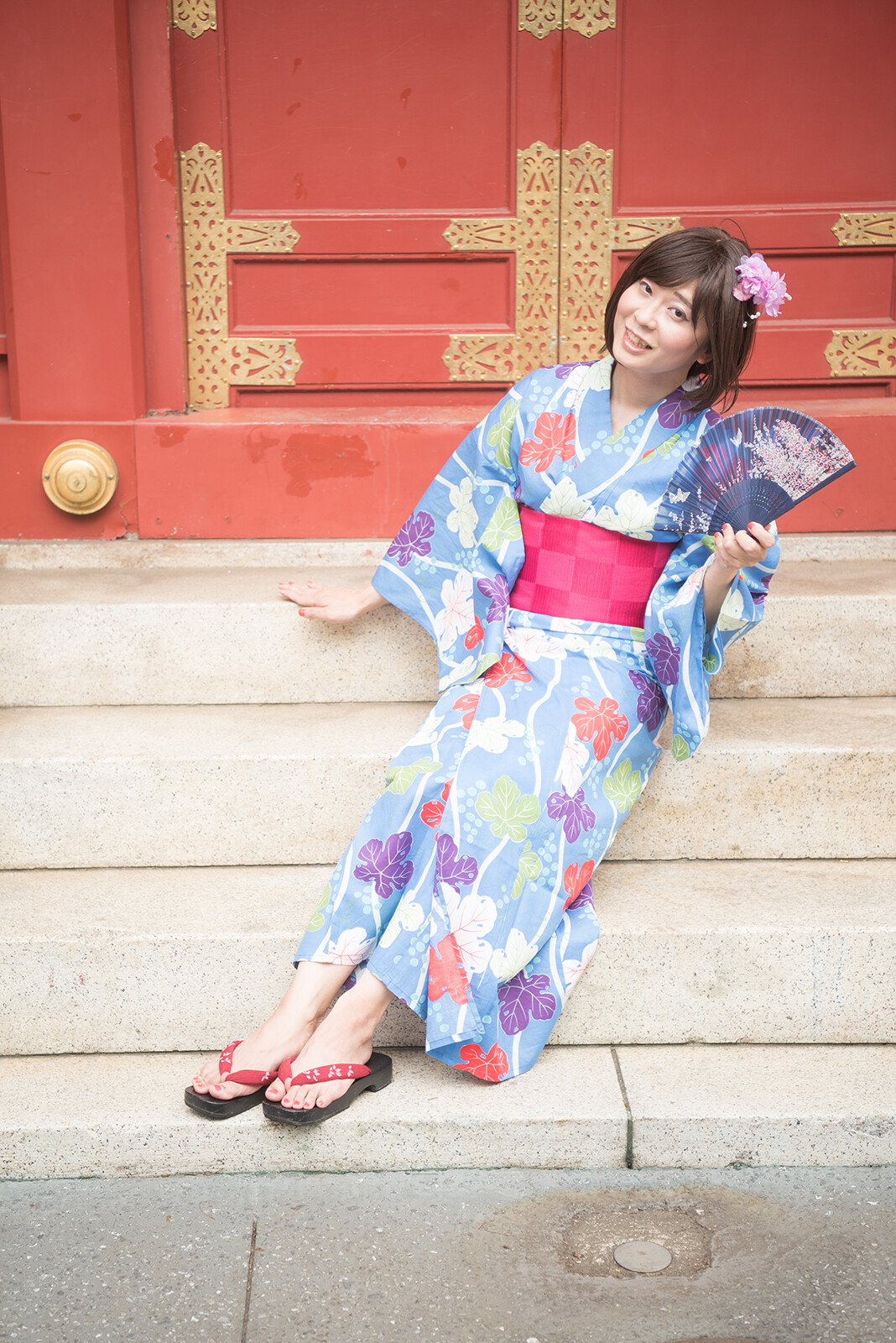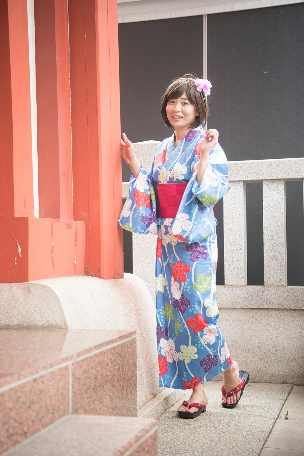 手を広げているのと浴衣の裾が乱れているのが、小走りしているかのような動きを感じますね。