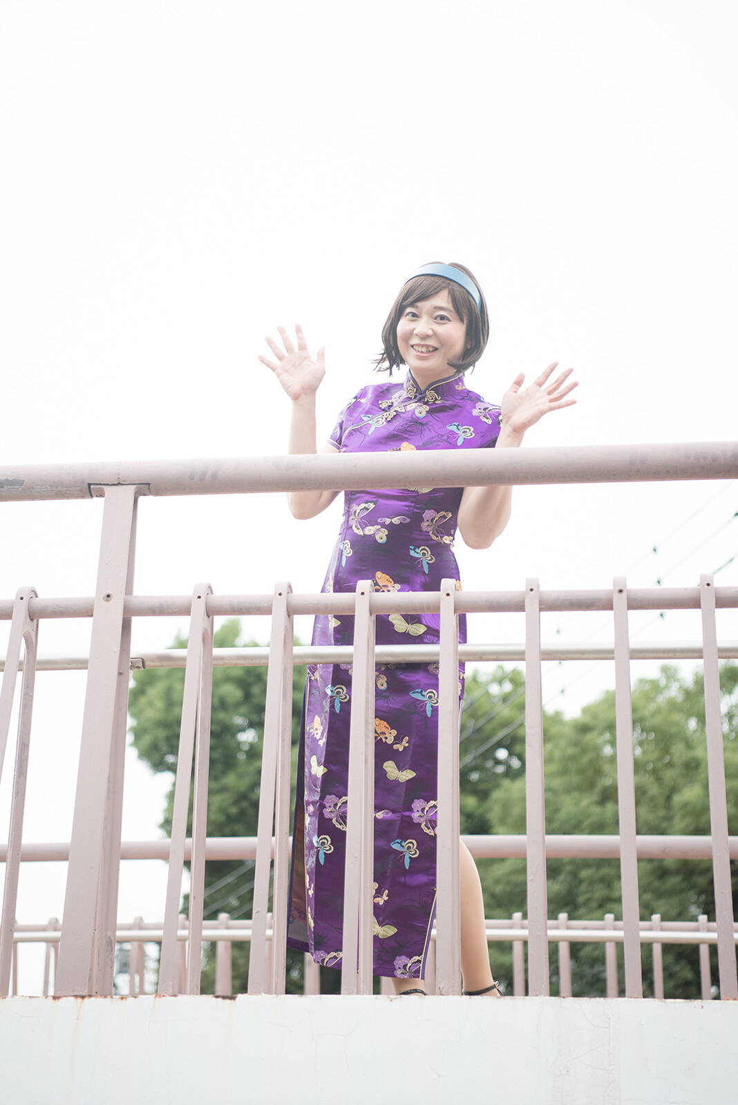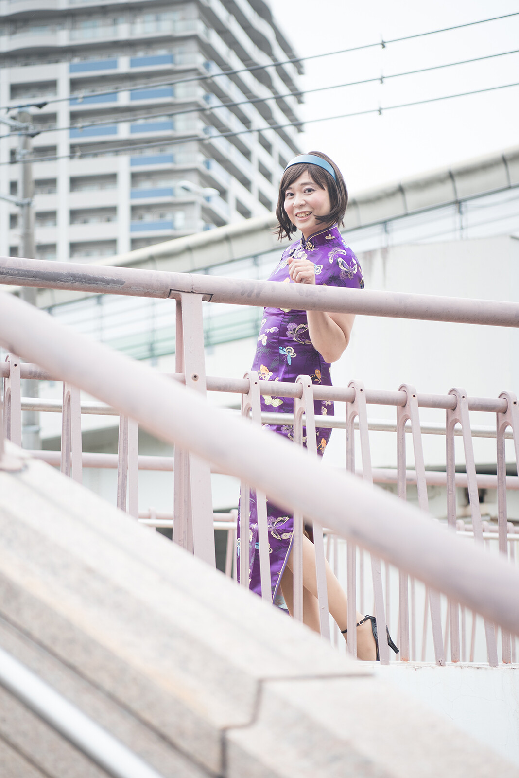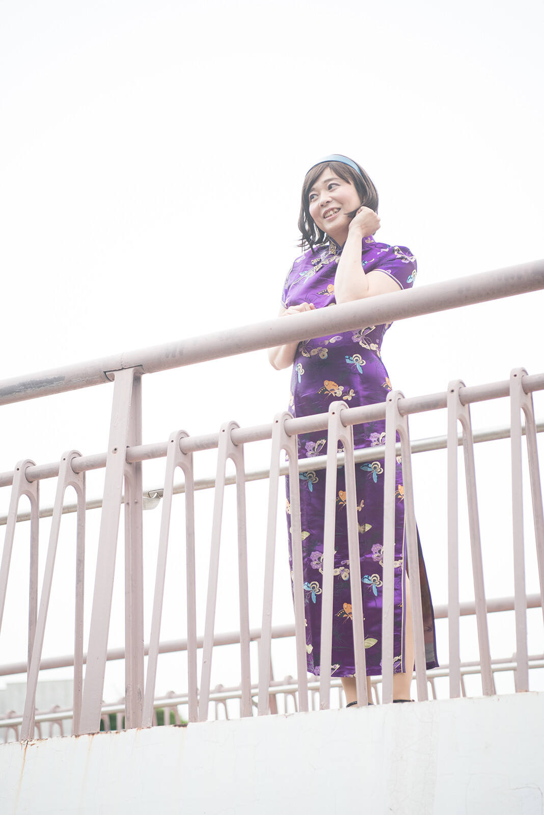 歩道橋の上に行って、見下ろすようなポーズで撮りました