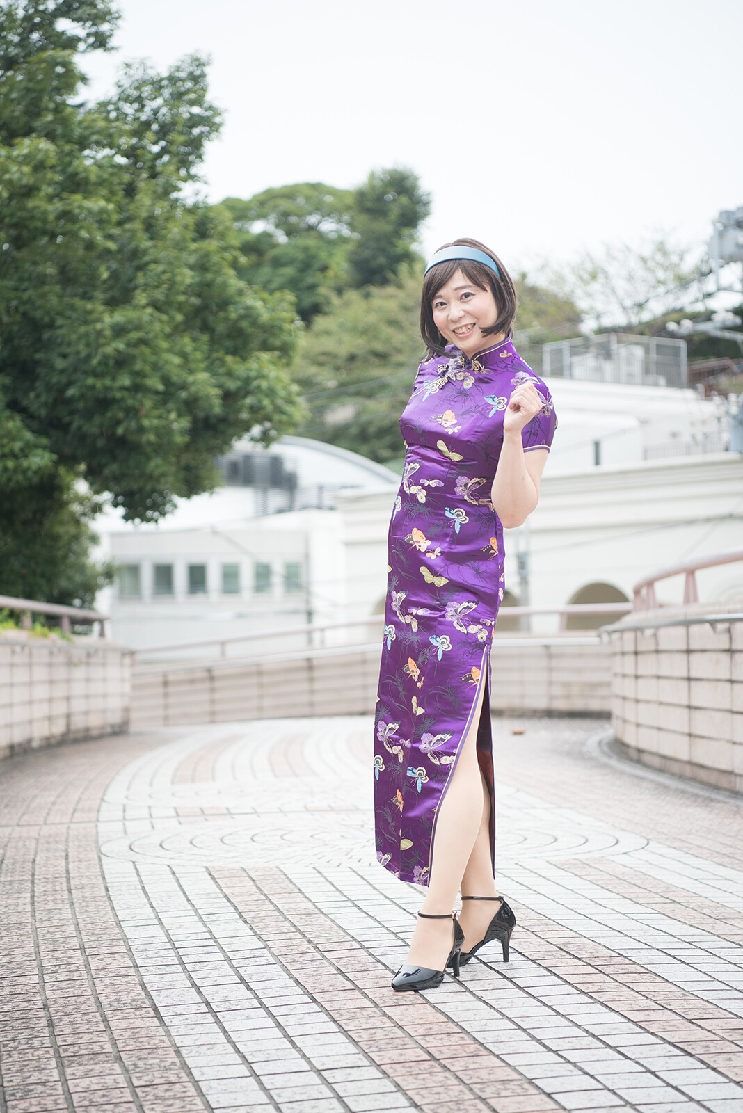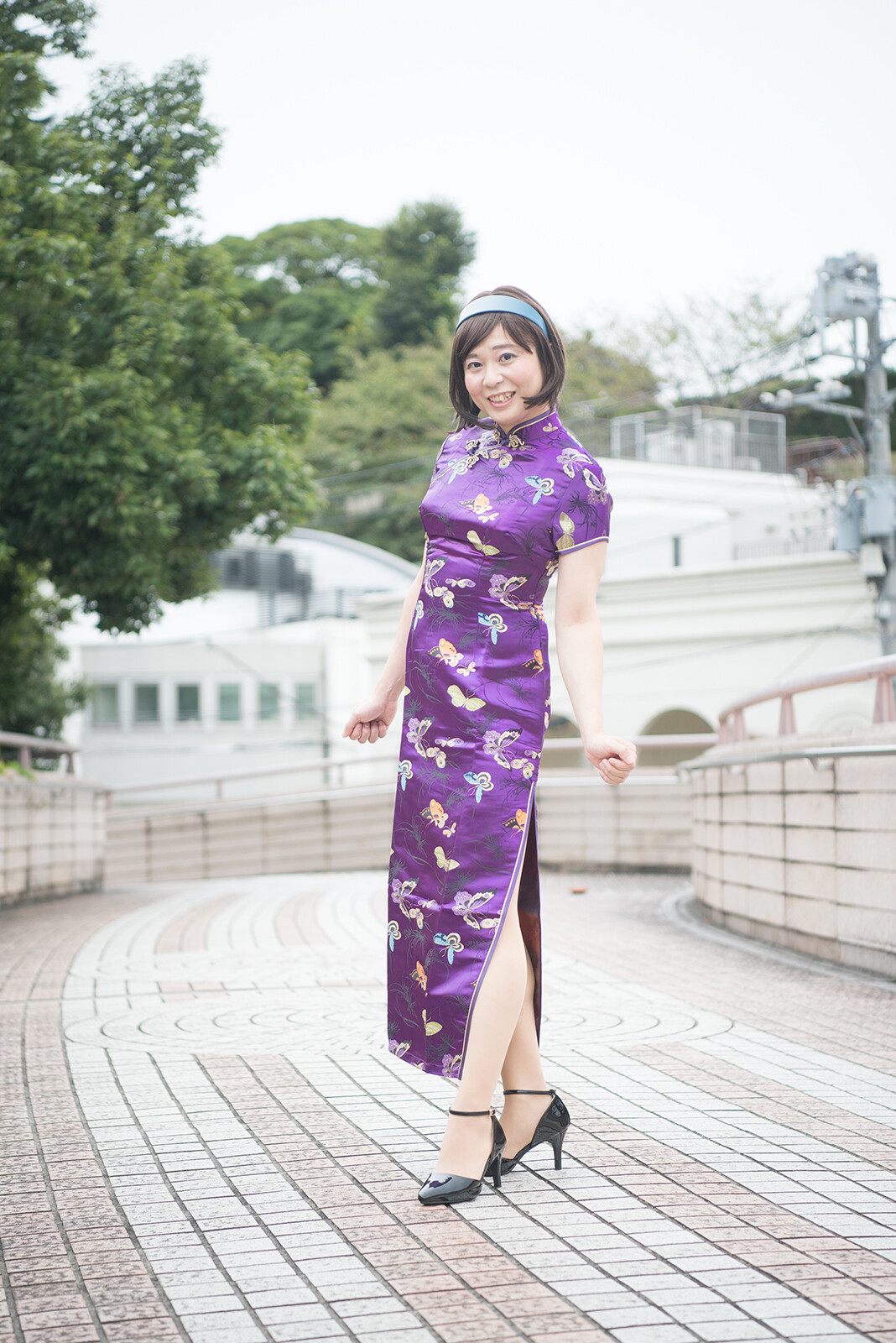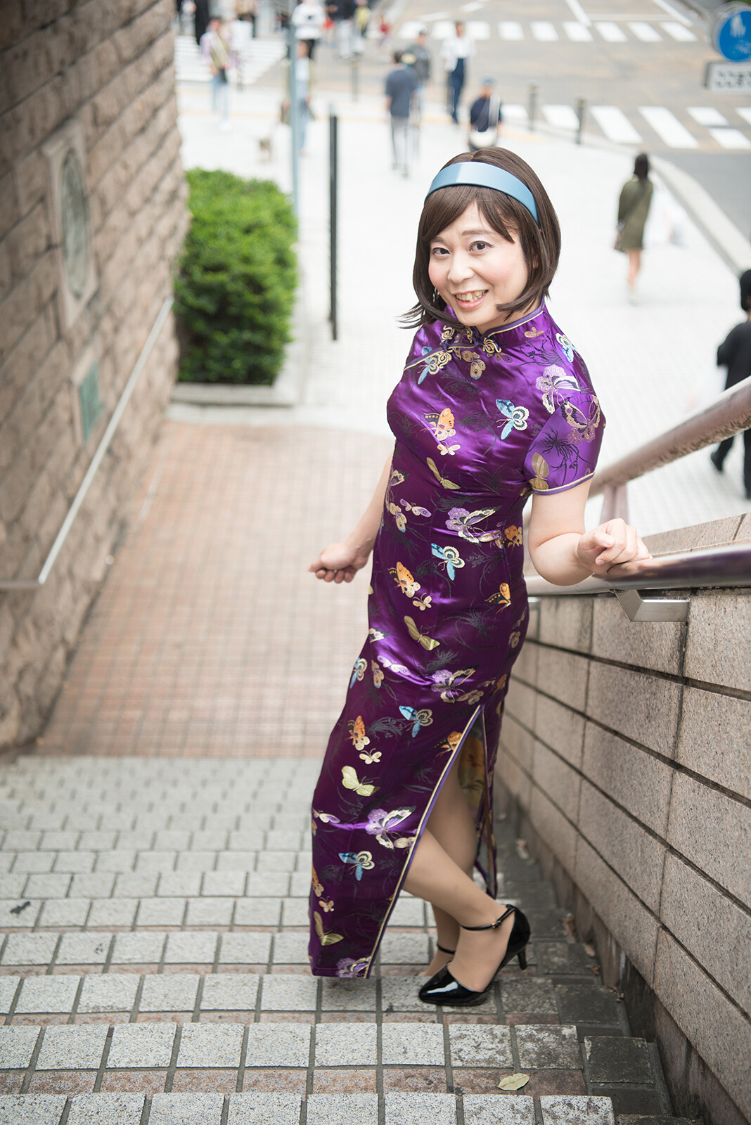 歩道橋の上に行って、見下ろすようなポーズで撮りました